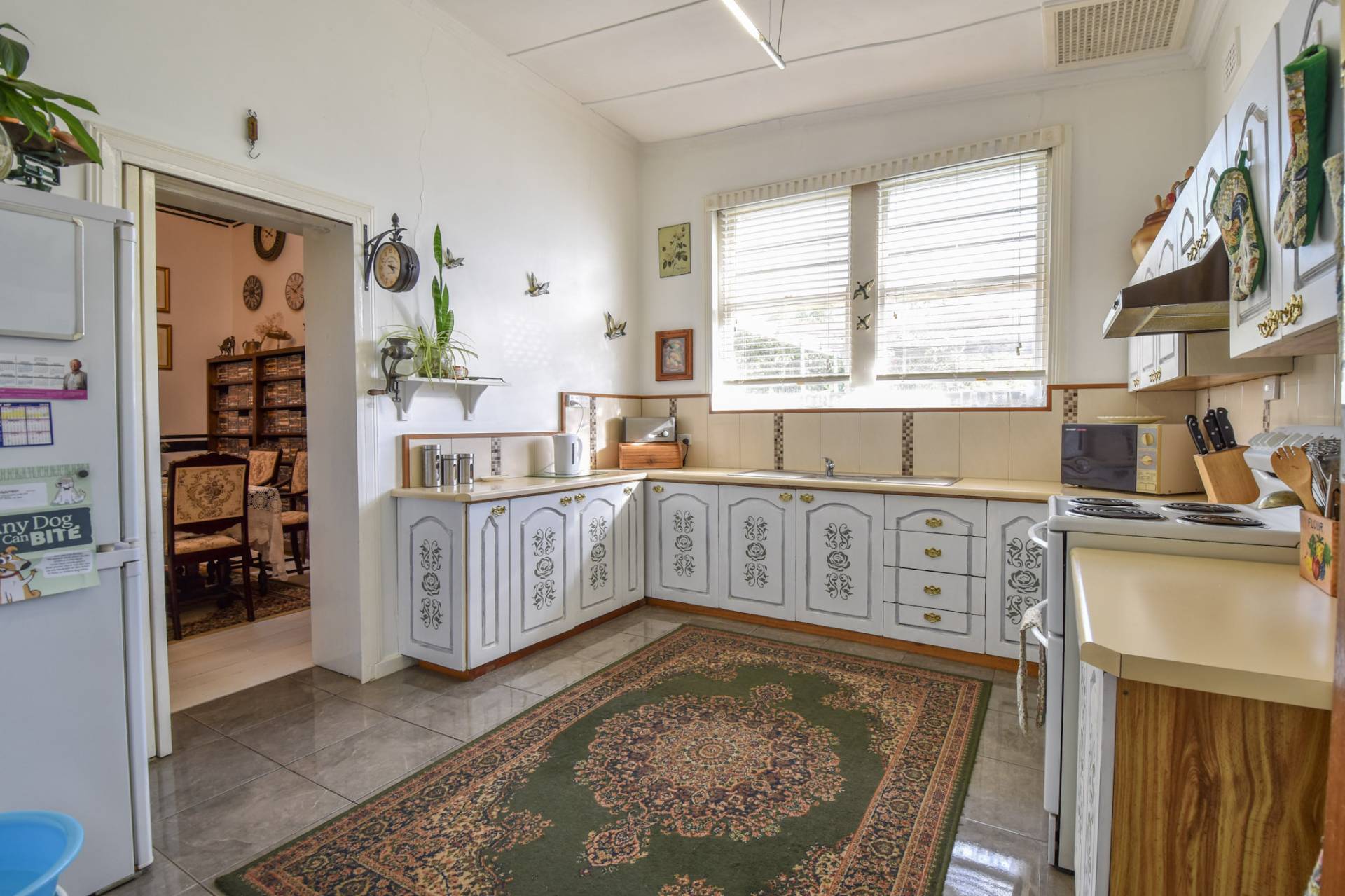 The tidy kitchen is full of natural light and includes an electric stove and a convenient walk-in pantry. Enjoy separate dining and a spacious lounge, complete with exposed brick and a slow combustion wood fire.