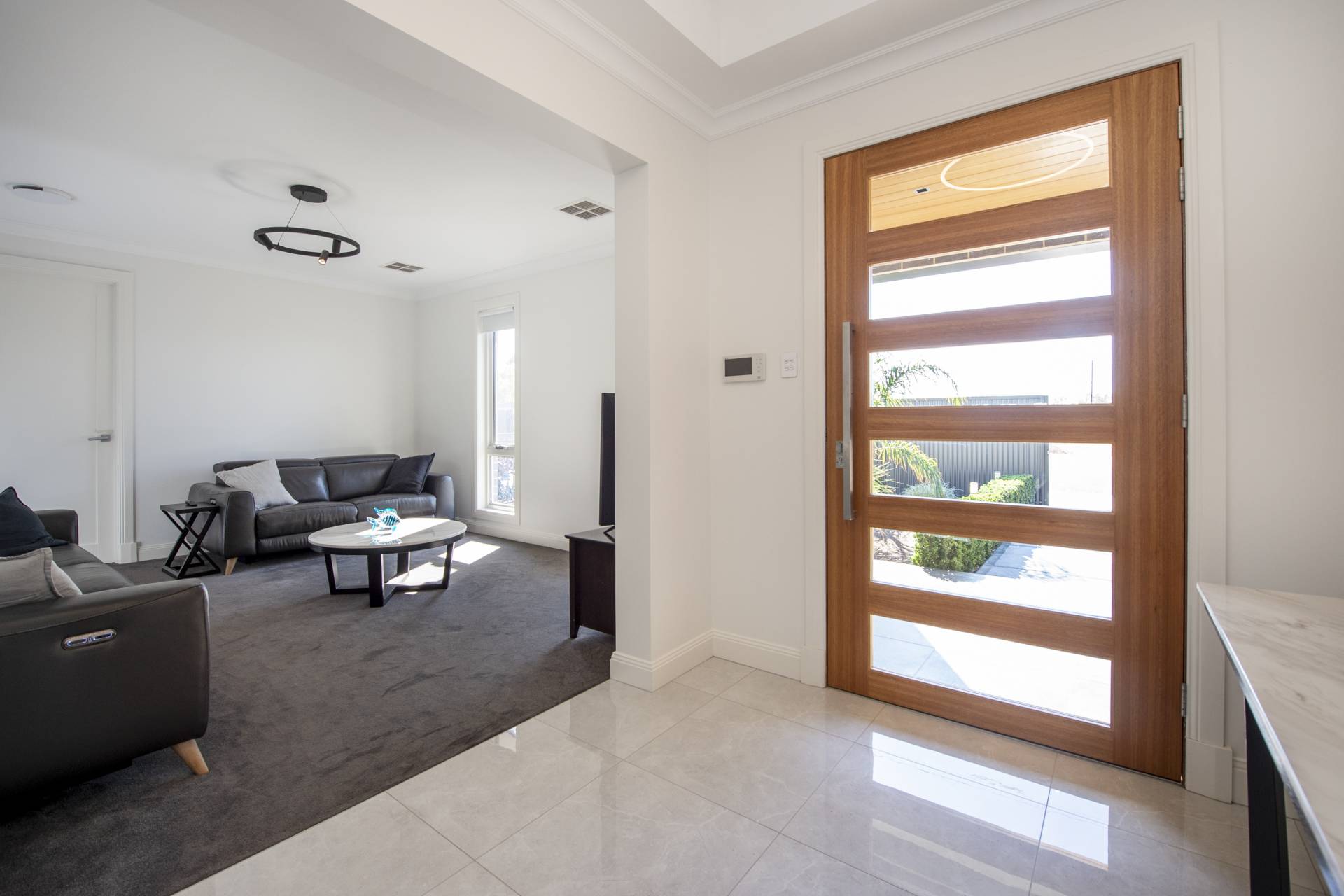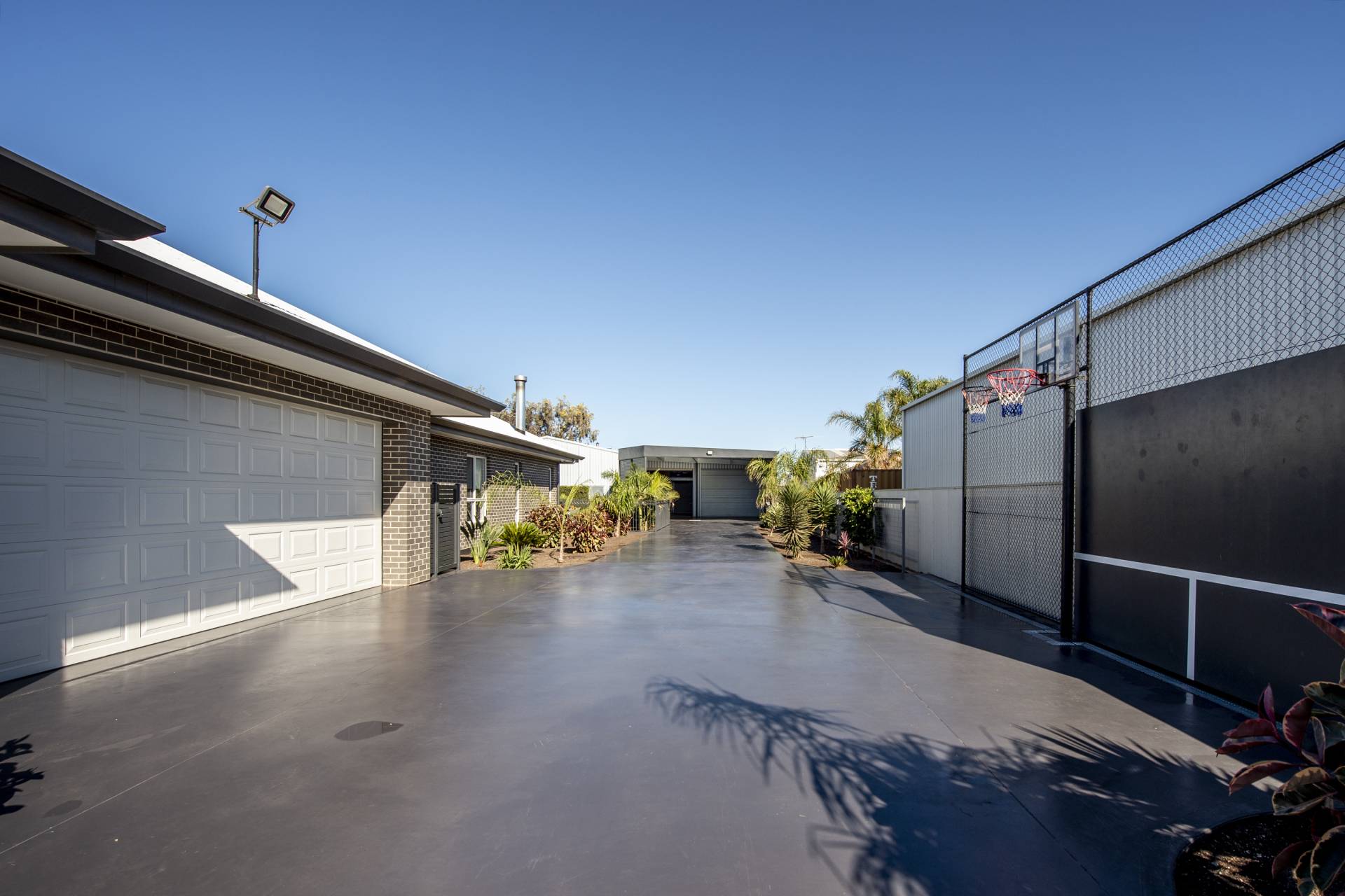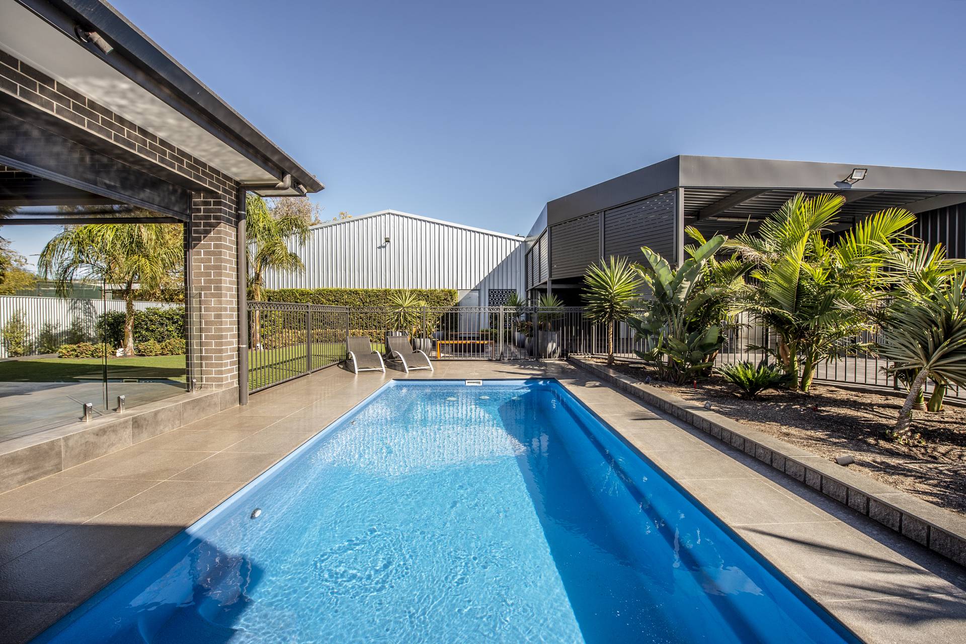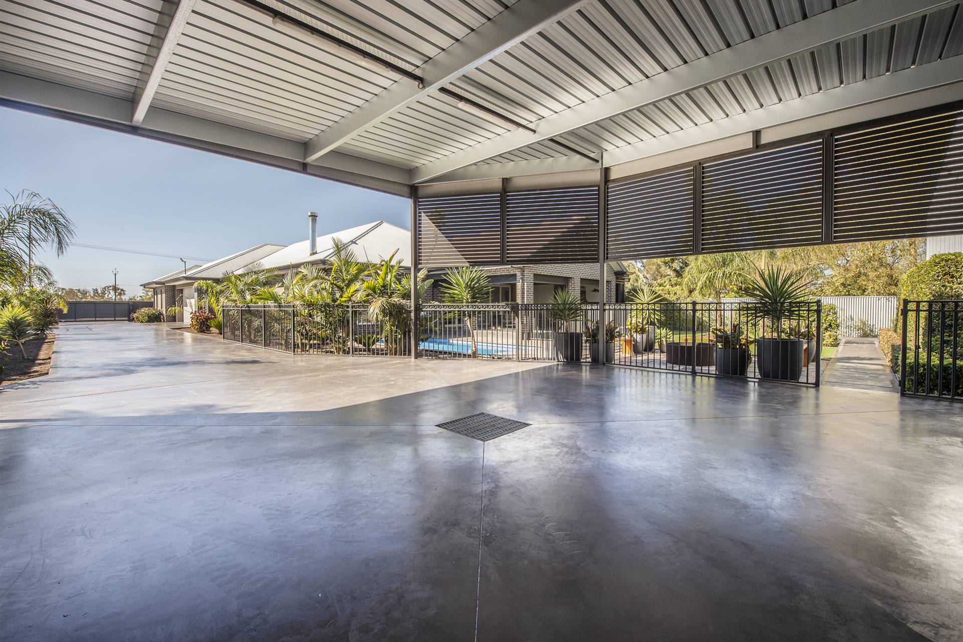 This luxurious family home spans over 400 sqm of living space and sits on a 2000 sqm block. The property is designed for both comfort and style, featuring high ceilings and wide, tiled hallway. The grand timber front door sets the tone for the home’s elegance. The Master bedroom is a true retreat with floor to ceiling wardrobes in the walk-in robe and underfloor heating in the spacious ensuite, which includes a double shower and a double vanity. There is also a private lounge perfect for relaxation and a separate study. Bluetooth speakers are installed throughout the home alongside ducted air conditioning and excellent insulation to ensure year-round comfort. Three additional double size bedrooms come with walk-in robes and there's a large 3-way bathroom with spa bath, floor to ceiling tiles and underfloor heating. The oversized garage under the main roof offers ample storage space including an electric roller door. The heart of the home is a spacious family room equipped with combustion heater, large windows to let the natural light and provide a view of the impressive 6.5m by 3.5m salt water chlorinated inground pool. The gourmet kitchen boasts stone bench with waterfall ends, high end electrical appliances and a stylish, tiled splashback. This premium white kitchen has been custom built by Macks Cabinets and offers a butler’s pantry with lots of storage. Cathedral ceilings tower above the dining area, which opens up to the 6mx7m outdoor entertaining area. This space is perfect for hosting guests with electric blinds and an amazing outdoor kitchen. The backyard features lush green lawns, established garden with automatic irrigation and secure fence yard with electric entrance gates. For those with hobbies or needing extra storage there is an abundance of shedding, including a 9mx9m carport located under the roof.  The 18mx12m workshop has pallet racking and mezzanine floor, concrete floors and power plus a further 9mx9m vehicle area.  One of the other main features is the “Man Cave” with separate shower and toilet.  Functional kitchen with electric stove and oven.  Large 10mx6m games area for a game of pool, table tennis or watch the footy on the “big screen”.  Comforted by evaporative A/c, combustion heater and R/V cycle split system.  The property also includes 20Kw solar system and 2 x Tesla backup batteries. Additional features include an irrigated veggie patch, chook yard and space for playing basketball, netball & hit up backboard for tennis – even a cubby! This home truly offers everything one could desire with every detail carefully considered for comfort and enjoyment with the best of everything.