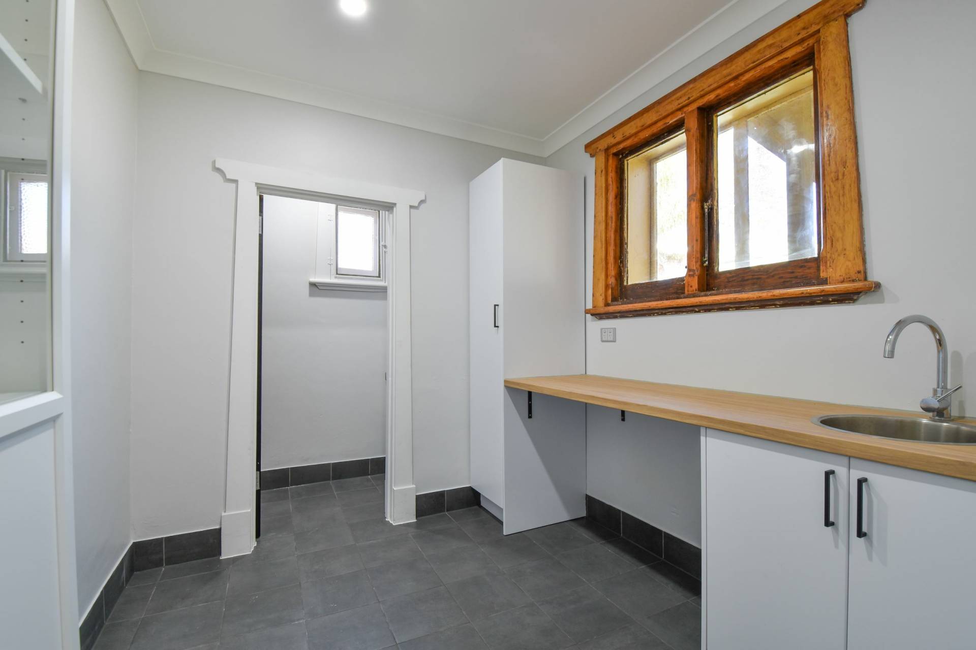 A very tidy laundry with built-in storage and stainless steel wash trough, plus a convenient secondary toilet with handbasin, add to the practicality of this home.
