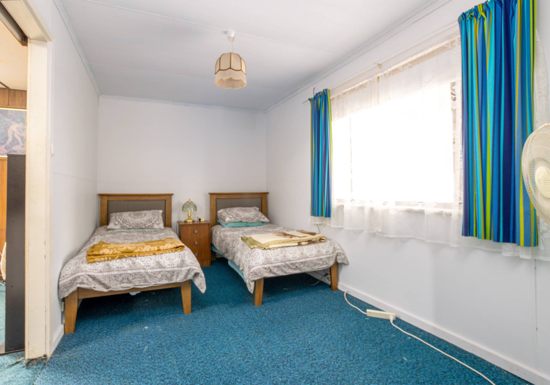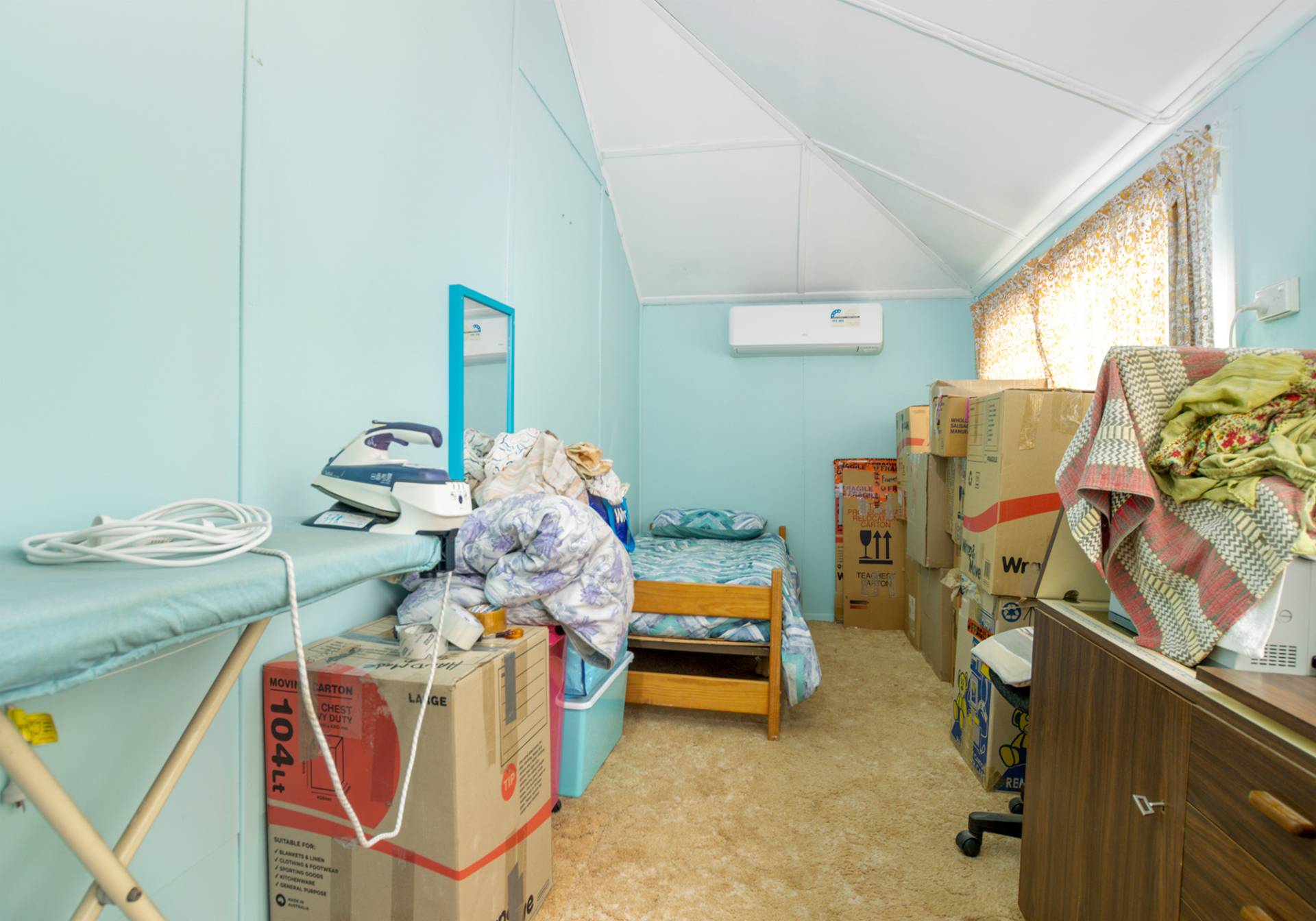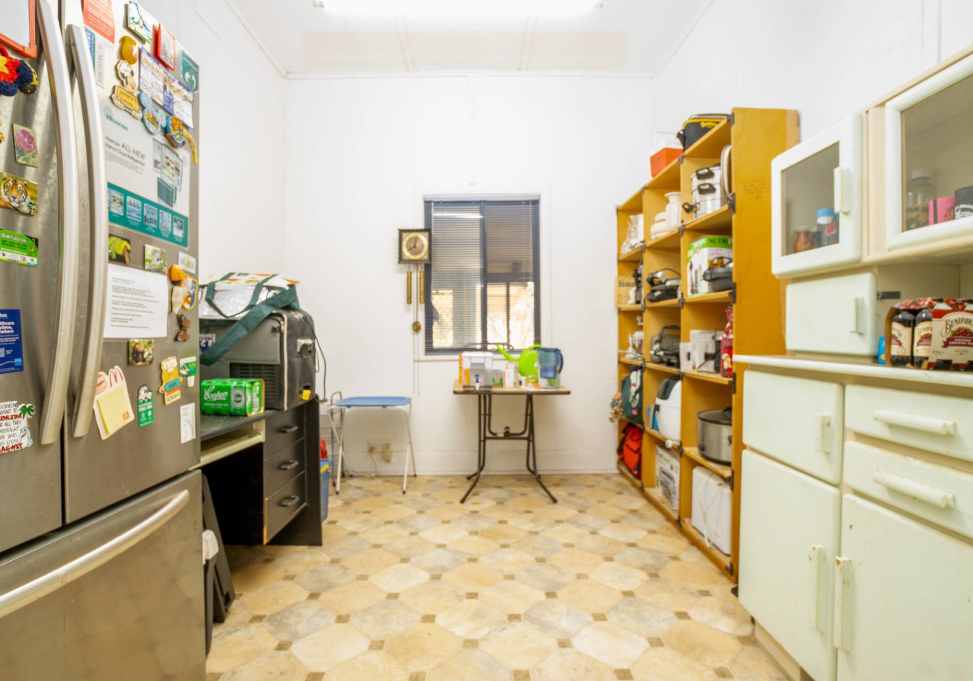 Functional kitchen with electric cooktop and plentiful storage, with one of the bedrooms being currently utilised as a walk-in pantry.