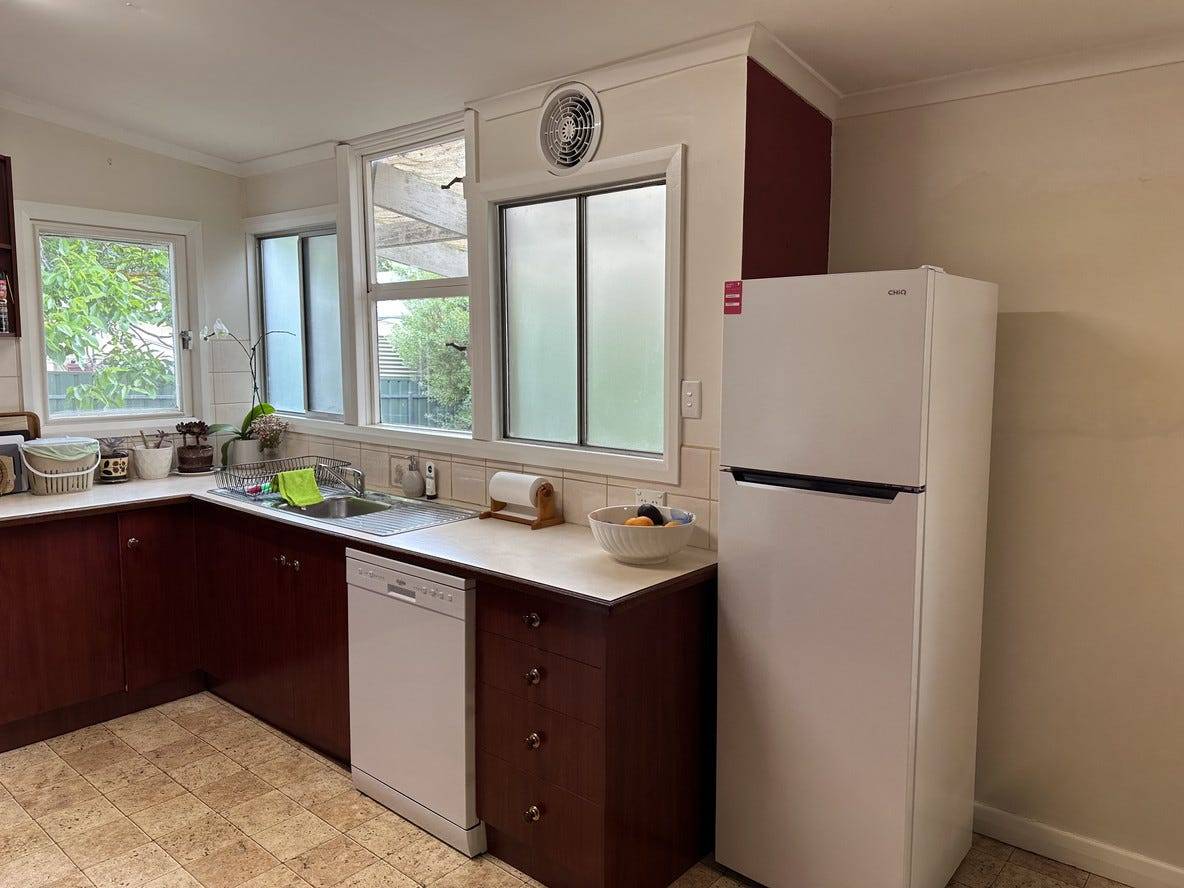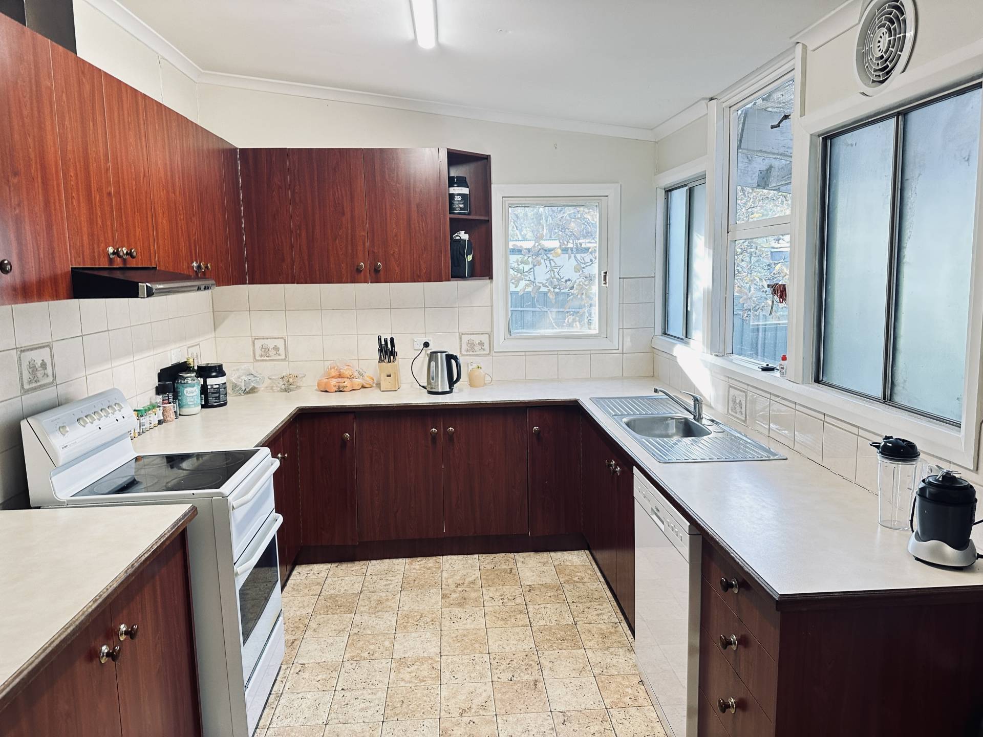 Well appointed, functional galley style kitchen/dine with overhead cupboards, dishwasher and tiled splash back.  Additional dining room with open fireplace.  Formal lounge room with combustion heater and split system air conditioning.