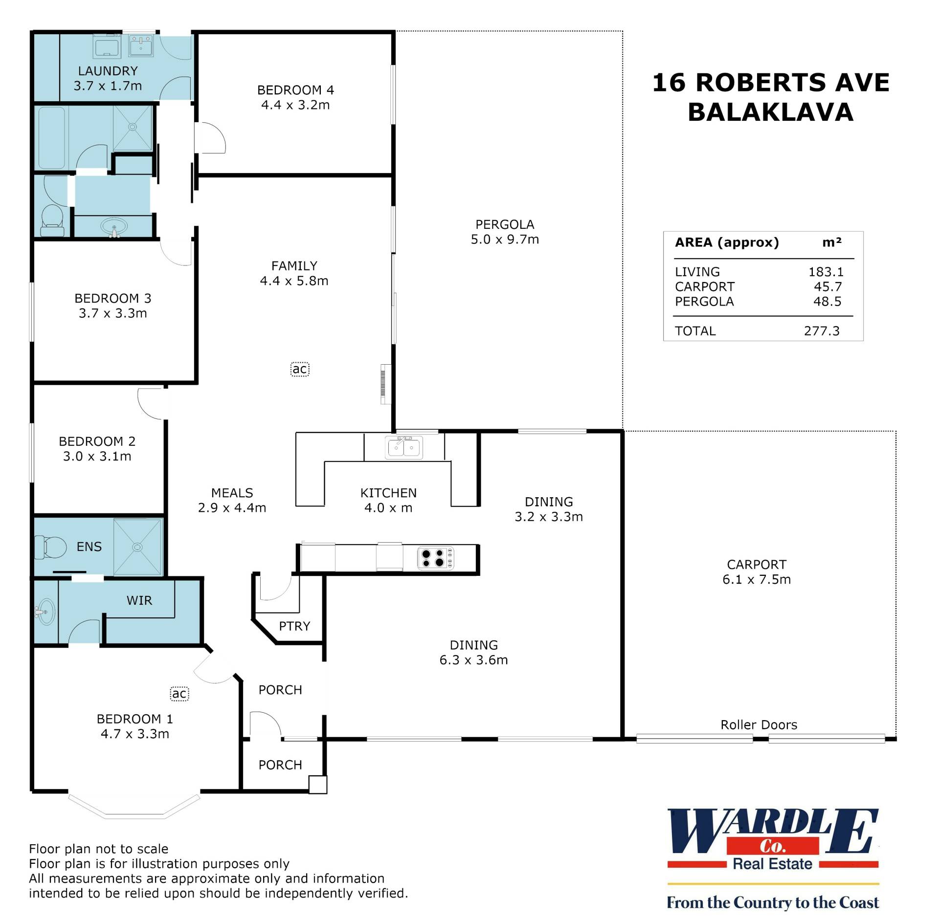 This nicely presented home is situated in one of the best streets in Balaklava.  It's a charming four-bedroom, brick veneer home that is packed with great features, offering a comfortable and spacious living experience.   The master bedroom boasts a bay window, walk-in robe and ensuite for privacy and convenience.  Three additional bedrooms are serviced by a 3-way bathroom plus there is a large laundry and storage available.  New carpet in master bedroom and lounge. The L-shaped lounge seamlessly connects to the open-planned kitchen and dining nook, ideal for family gatherings.  The kitchen offers a walk-in butler’s pantry, plenty of bench and cupboard space, 2 bowl sink and well-appointed appliances.