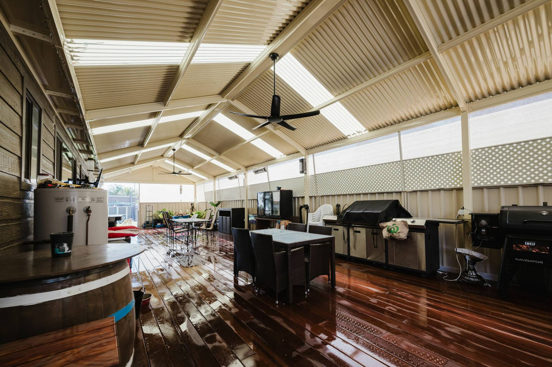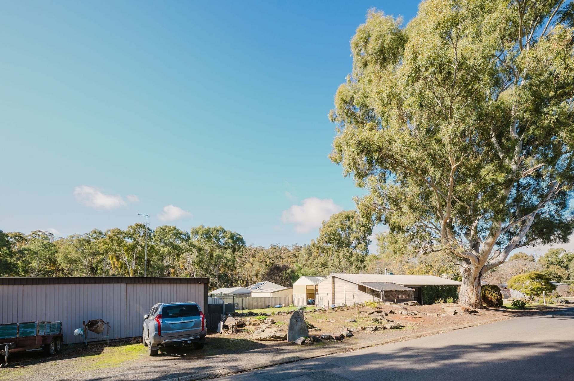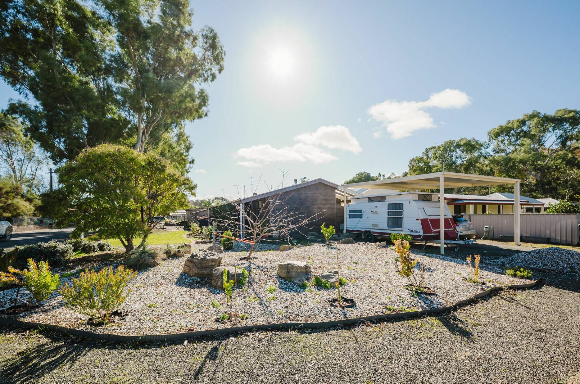 Private pergola for entertaining your guests with extensive decking.  Double carport/caravan shelter.  13Kw solar power.  Easy walk to the popular Reisling Trail.