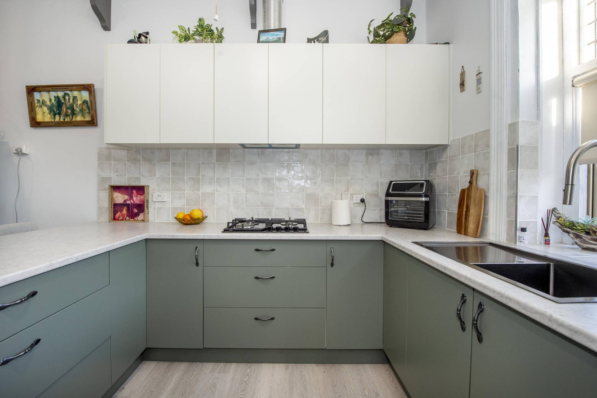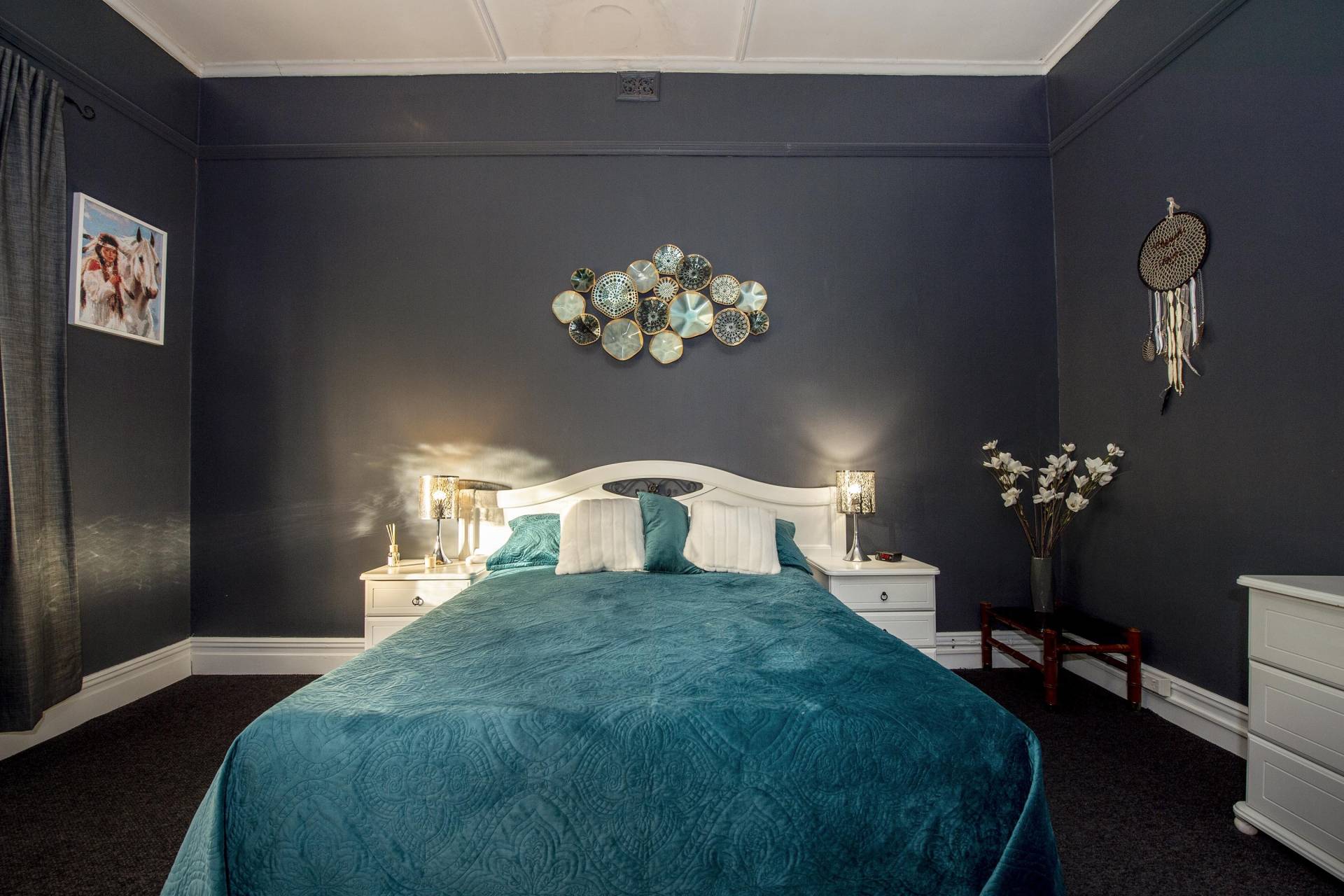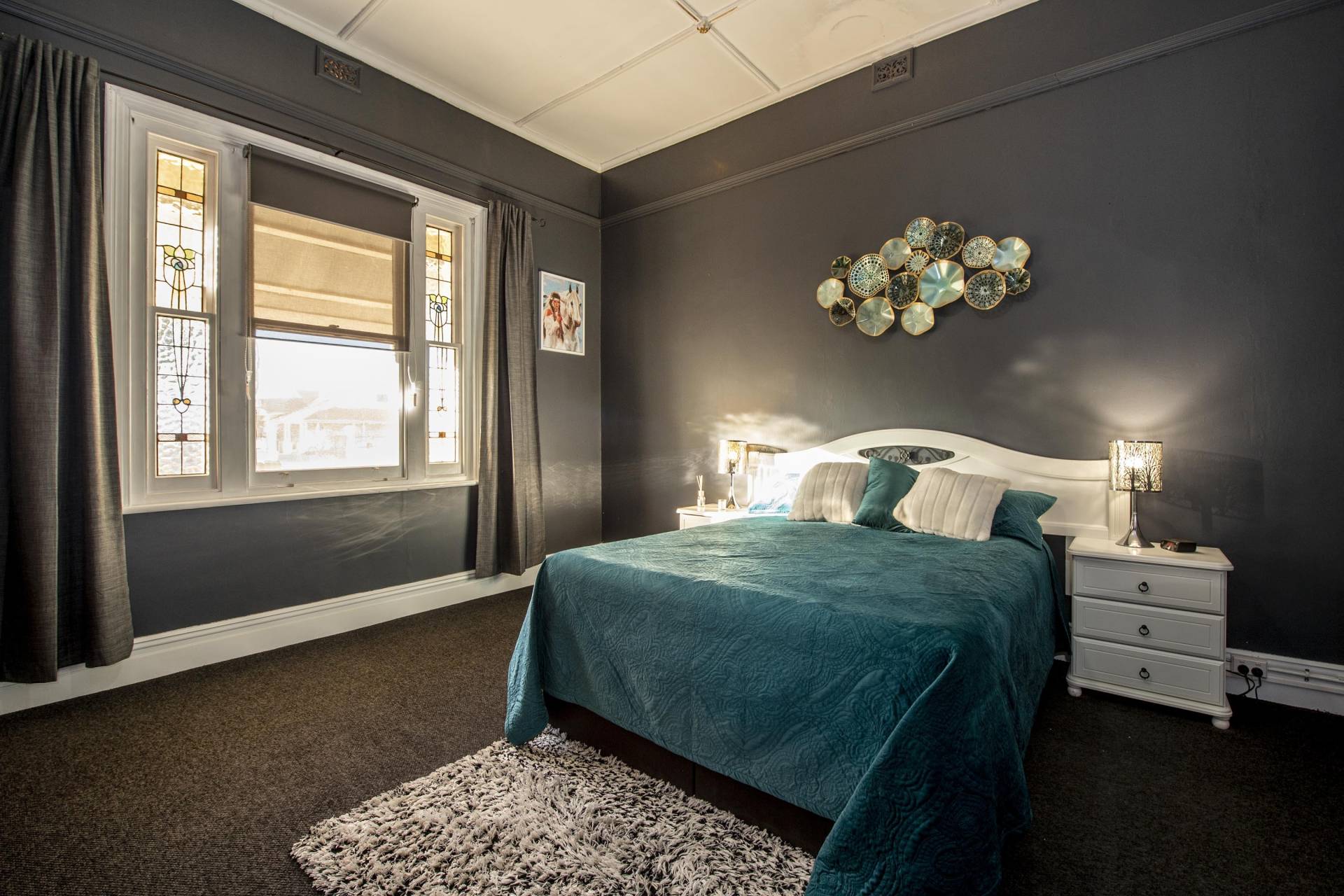 The kitchen has been tastefully upgraded with lovely decor and includes a working original wood stove, dishwasher, leadlight bay window and there's room for a casual meals area. There's plenty of storage with a cloak/dressing room adjacent the stunning bathroom that includes stainless shower alcove, vanity and convenience of a second toilet.