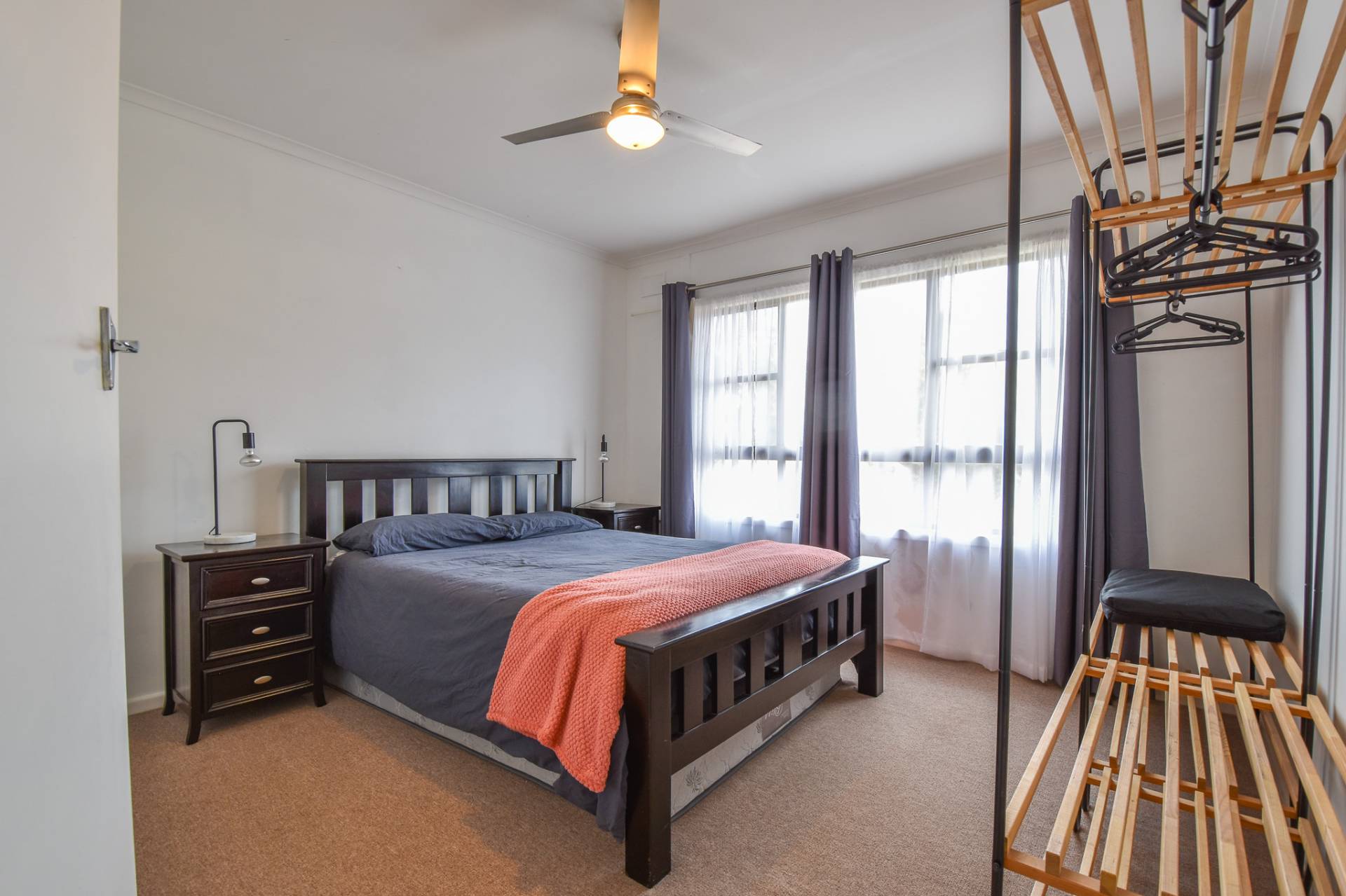 Outside, the front of the home is framed by well-maintained lawn and a serene garden that includes some native shrubs and a charming palm tree near the entry. The backyard offers a generous space and a shed tucked into the corner, and two large rainwater tanks providing 20,000 litres* of rainwater, ideal for sustainable living.