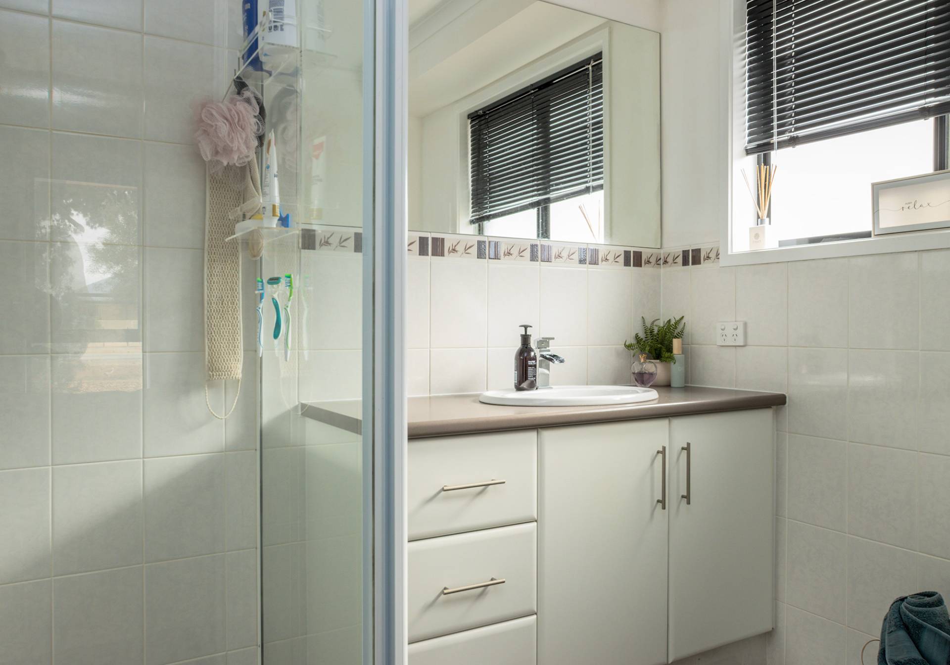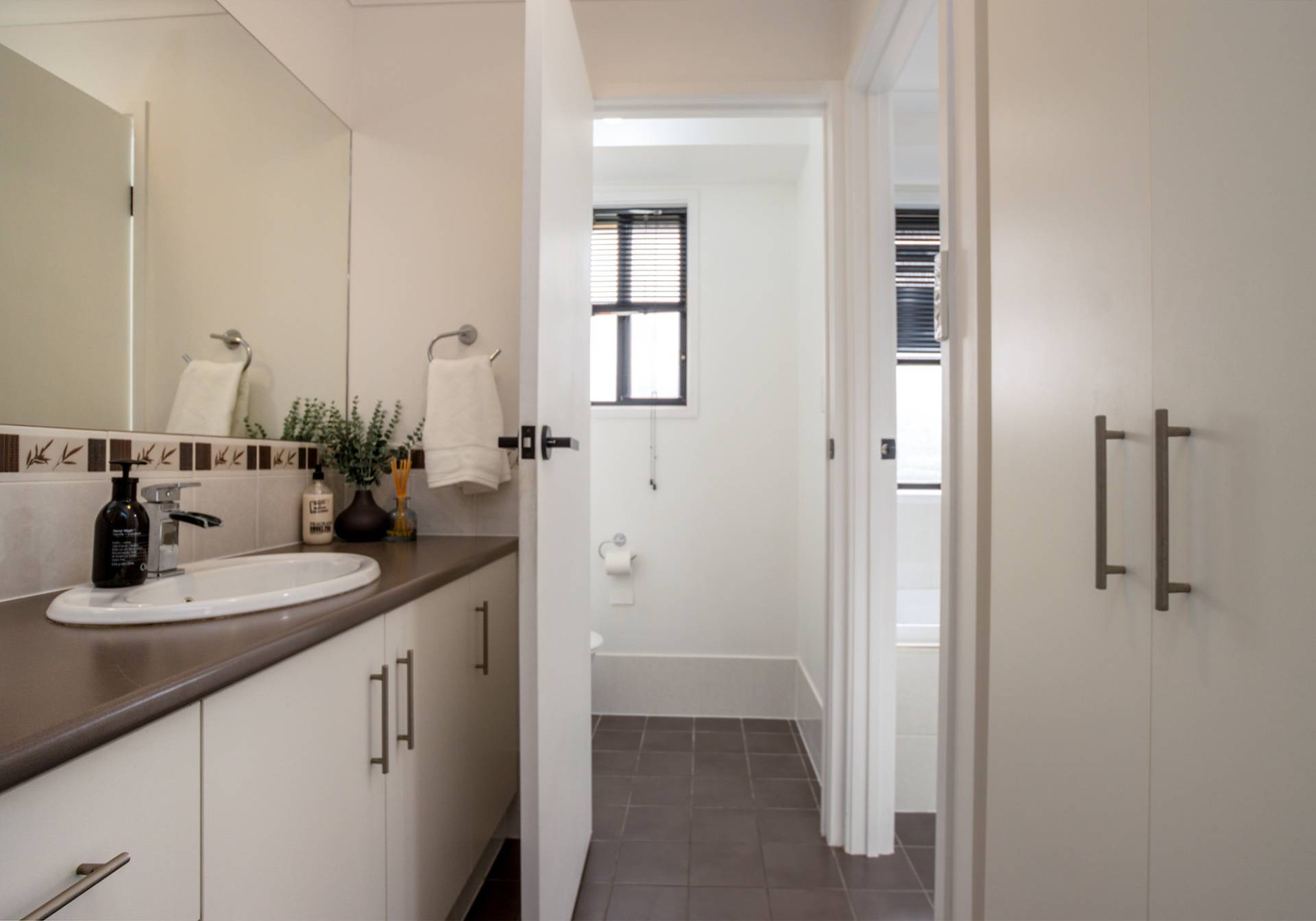 The main bathroom features a bath, shower, vanity, and separate toilet. Additional practicalities include a linen press, well appointed laundry and storeroom.