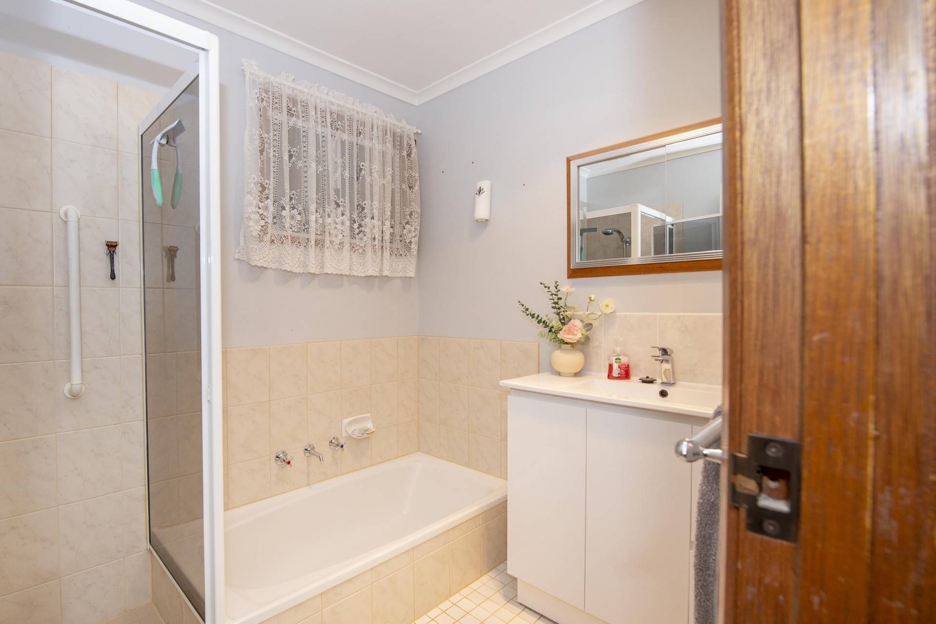• Tiled bathroom with separate shower and bath