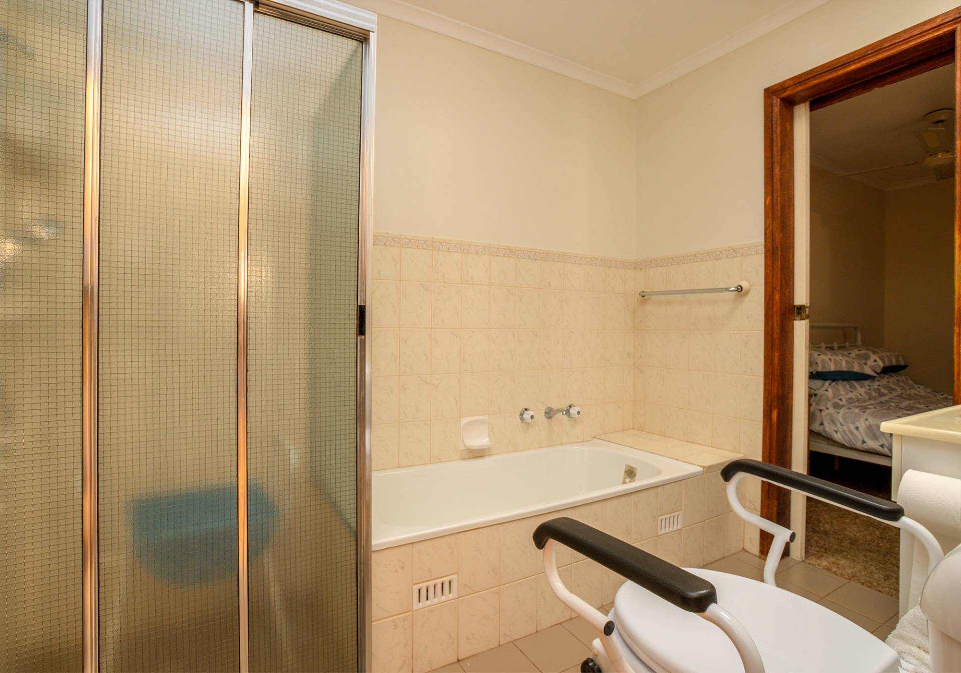 Featuring two bedrooms, the home also offers an open-plan kitchen and spacious dining/living area with another split system, and a neatly presented bathroom with bath, shower, and vanity, plus a separate toilet and laundry.