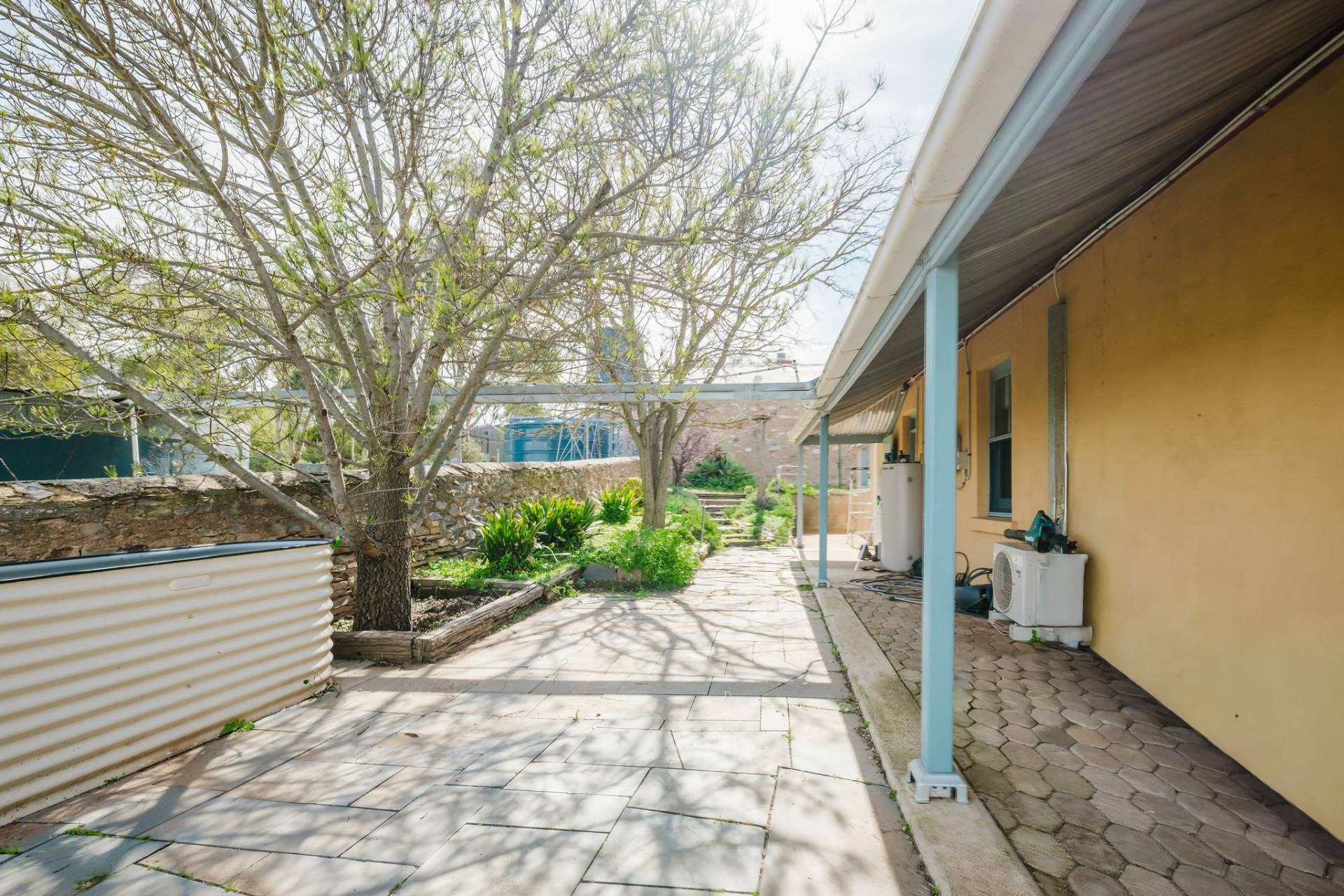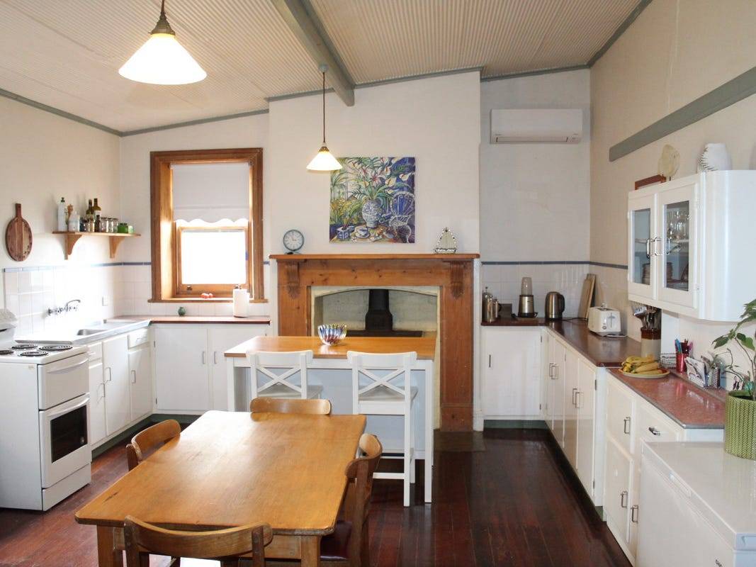 Substantial Bluestone Villa on 2.5 acres with magnificent views over Burra hills. Tastefully renovated with return eyelash verandah and slate paved front verandah. Central hallway with coloured glass door surround, Baltic Pine flooring and timber sash windows. Three double size bedrooms, open fireplaces in two and 3 split systems. Fourth bedroom and featured stone wall in entertaining room. Centrally located lounge has matchboard ceiling with unique skylight, built-in cupboards and open fireplace. Country style eat-in kitchen with Jarrah flooring and bench tops, electric and original wood ovens. Renovated bathroom and laundry.