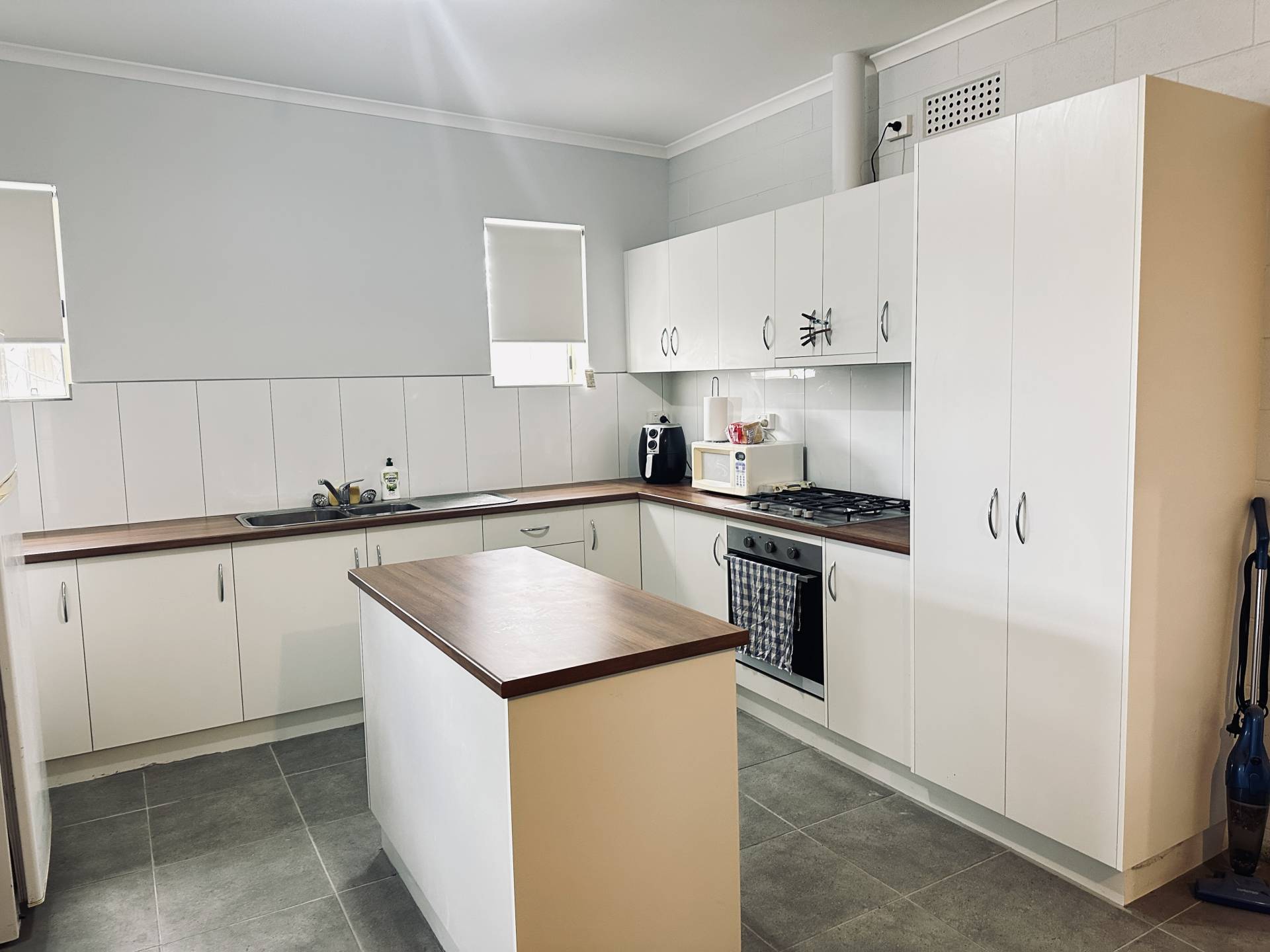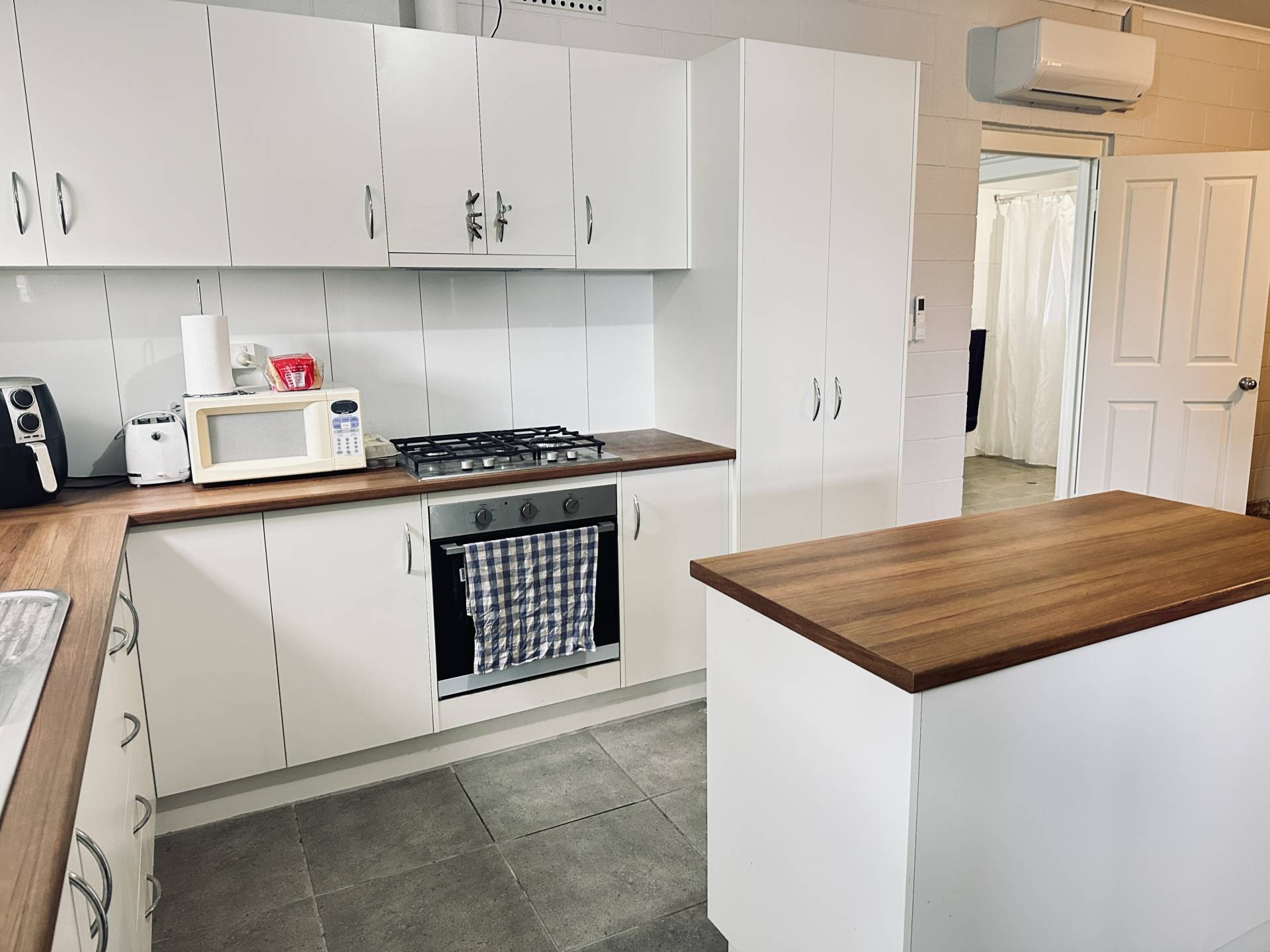 Spacious open plan modern white kitchen, well-appointed appliances, ample cupboard space, central island bench and timber topped benches.  Dining area with tiled flooring and reverse cycle split system.  Three double sized bedrooms with ceiling fans, carpet and built-ins in the master.  Front lounge, front and rear verandahs.  Modern renovated bathroom with shower, bath, vanity, separate toilet and laundry.  The home is rendered and power-efficient, with 7.48kW solar system, 13.3 kW battery storage and 3m* x 7m* lockable garage.
