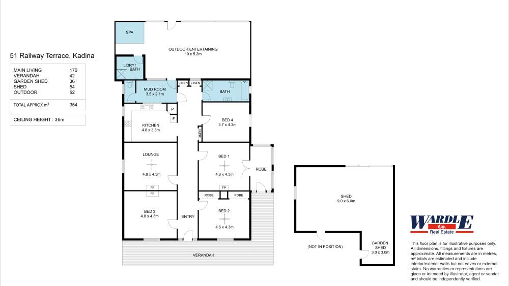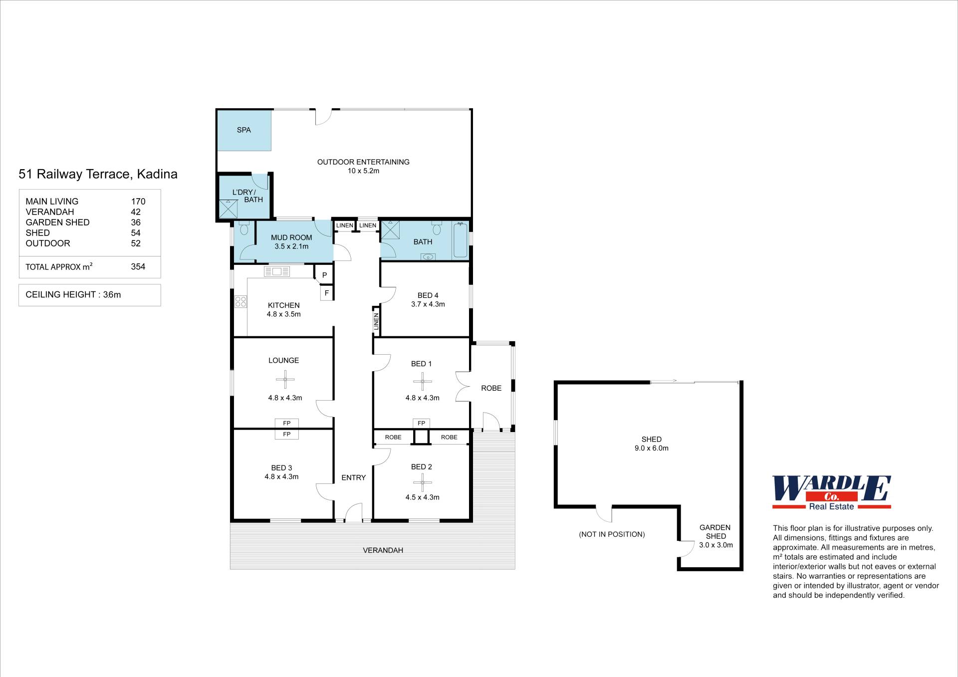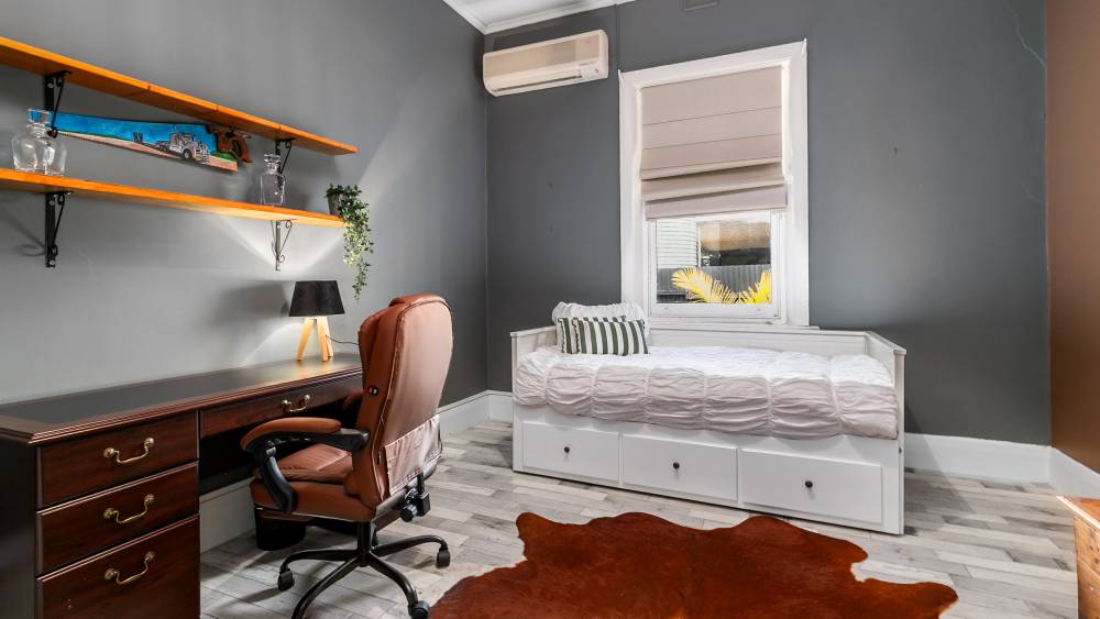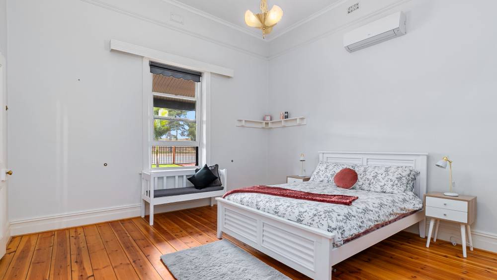 ·        Four large bedrooms, all with split system heating and cooling, three with ceiling fans. The master bedroom also includes           a sunroom with scope to create a luxurious walk-in robe and ensuite (STCC).