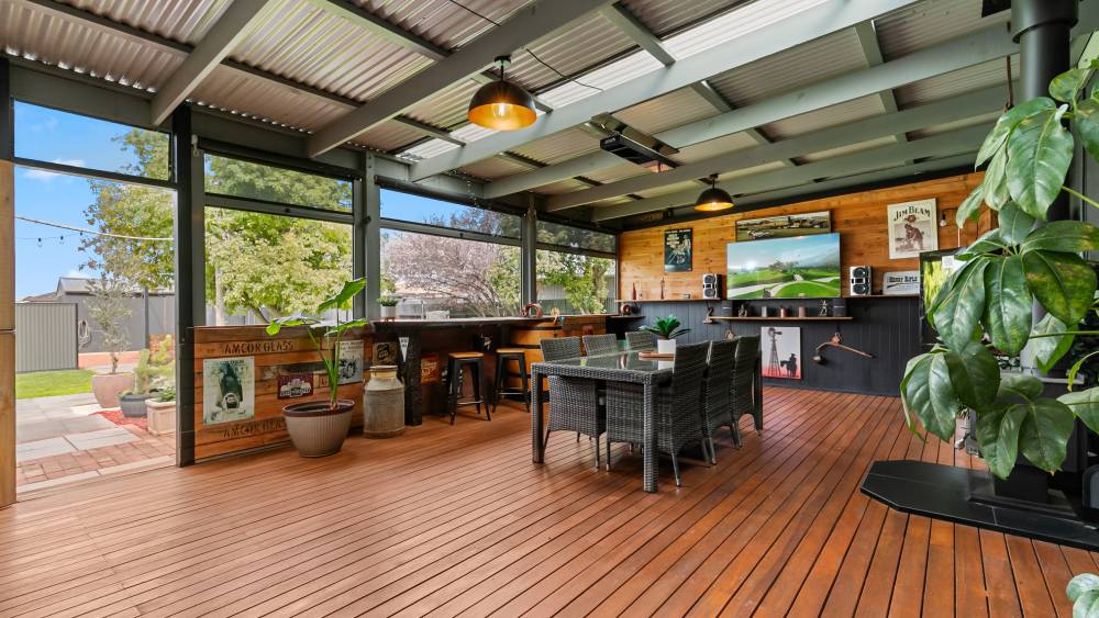 ·        An expansive enclosed decked entertaining area, fitted with pull down blinds, combustion heater, heat bar for year-round          enjoyment.