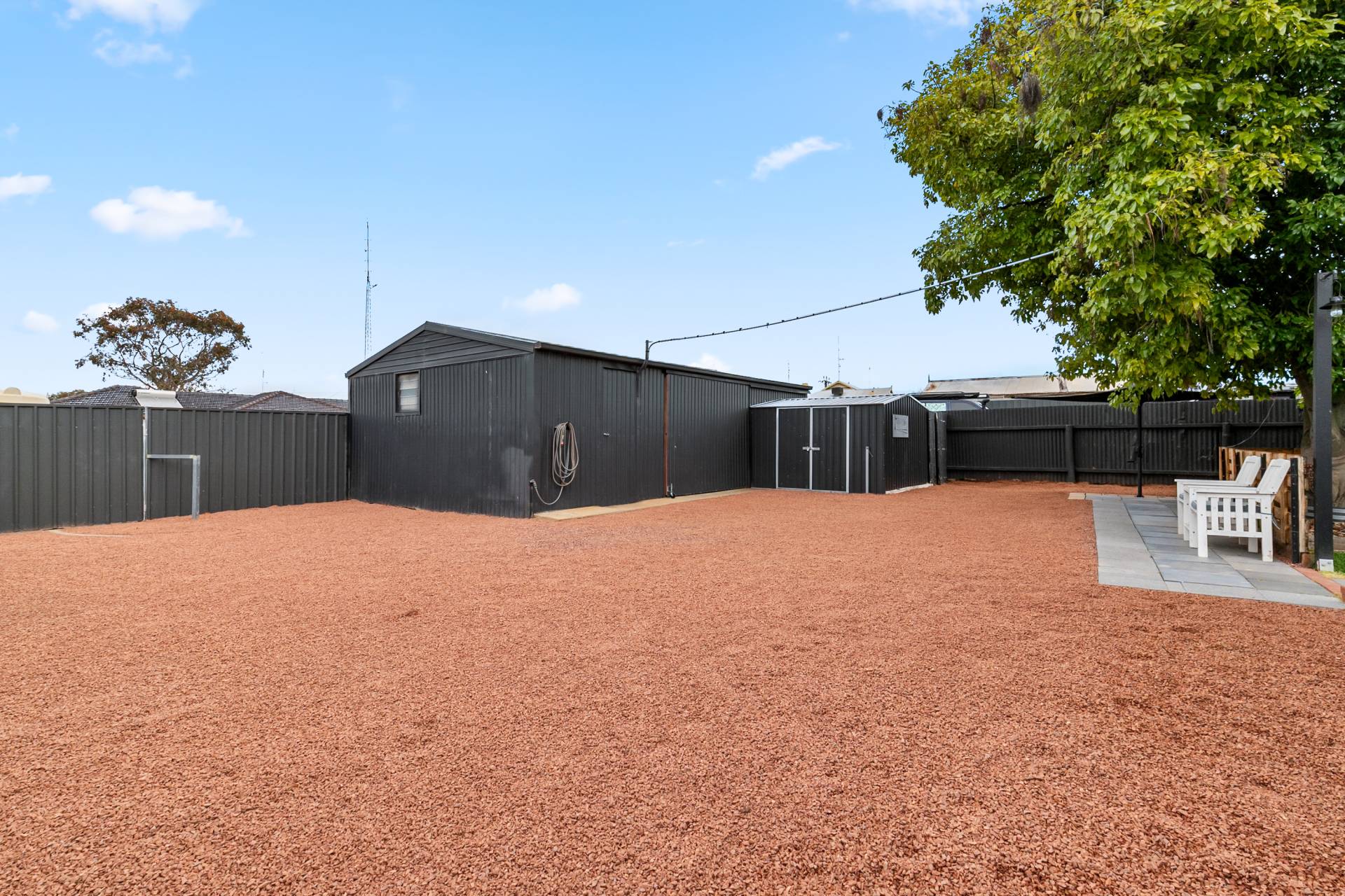 ·        Manicured lawns, a sheltered BBQ area, and a 9m x 6m powered shed with concrete floor, with the bonus of rear lane               access from Russell Street.