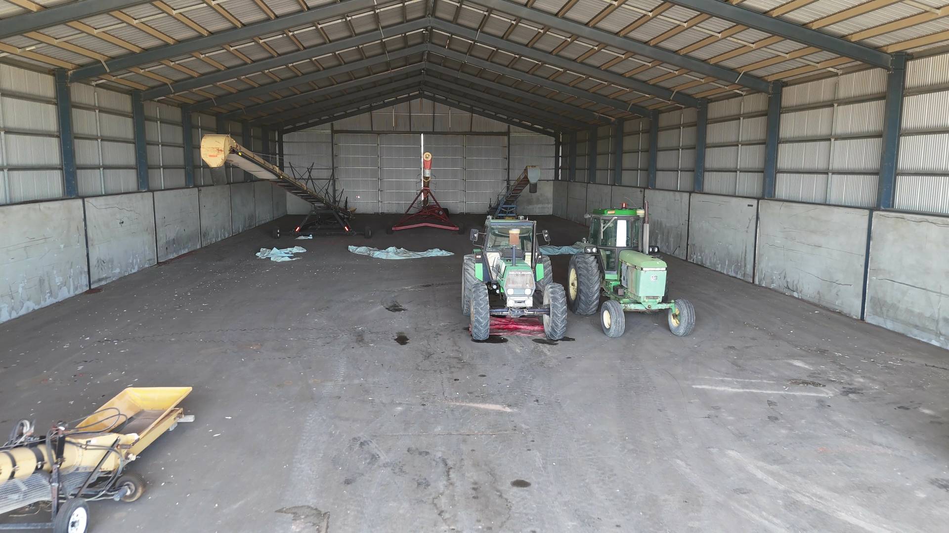 • Three 60 m x 25 m* hard floor grain storage sheds (two drive-through)