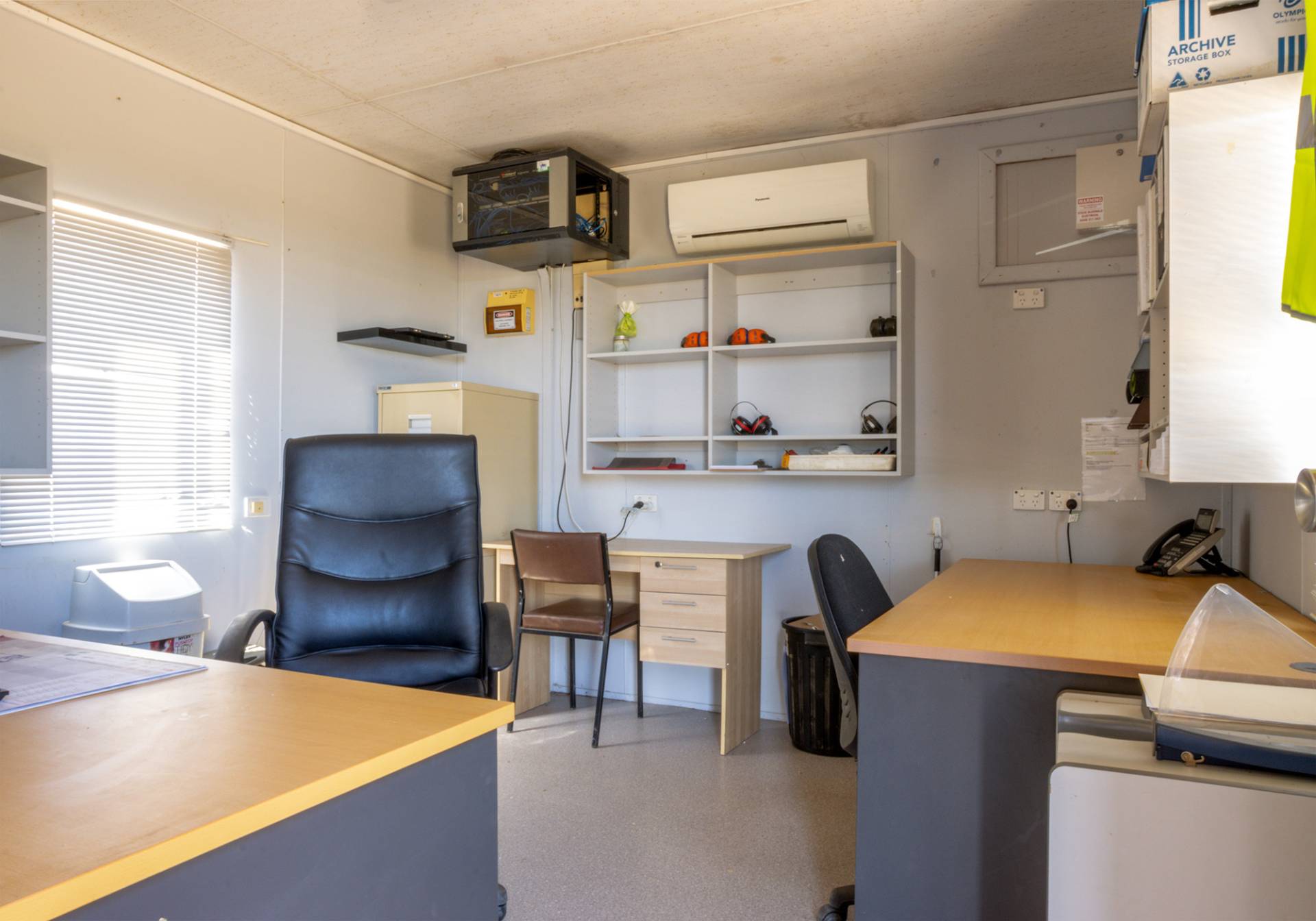 • Office building including reception, four offices, ablution facilities, lunchroom, and telecommunications room