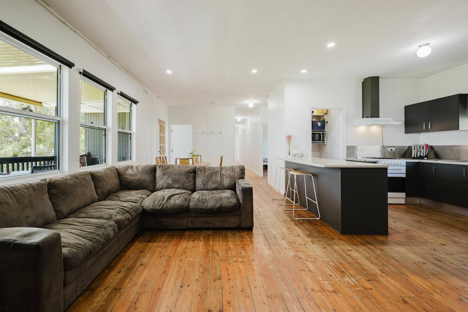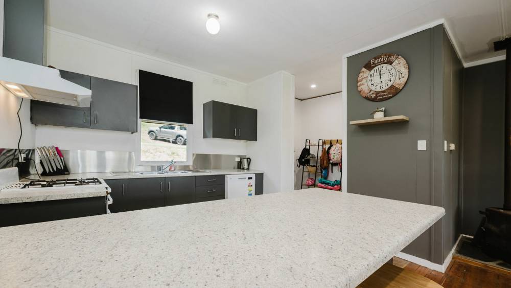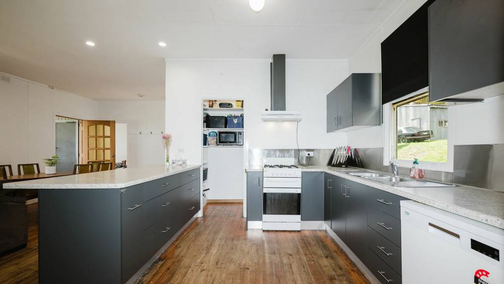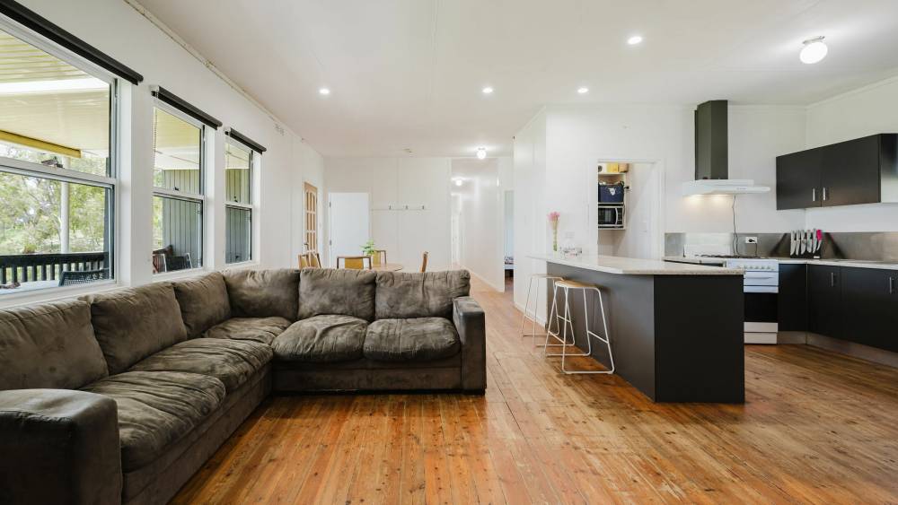 Five double-size bedrooms, with the master boasting large walk-in robe and ensuite. Family bathroom with bath, plus storage cupboards throughout. Open plan kitchen/dine/lounge with ample cabinetry, plus mudroom and renovated laundry. The home also offers high ceilings, timber floorboards combustion heater and air conditioning. Rear decking for entertaining and good shedding. Mixed arable land and shelter belts for livestock, an ideal property for rural family lifestyle.