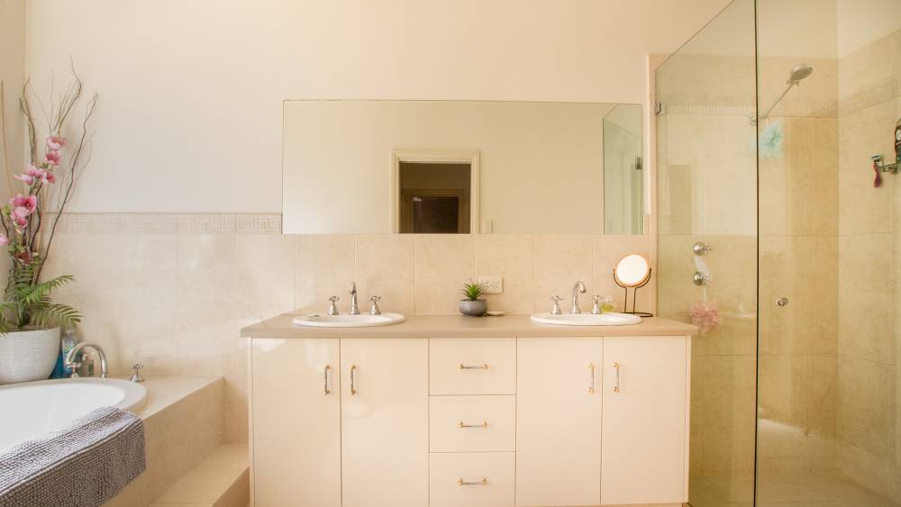 • Master bedroom with walk-in robe and ensuite featuring a spa bath