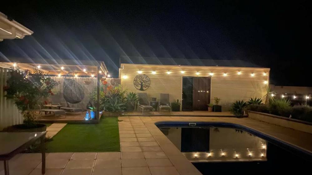• Large outdoor entertaining area with built-in kitchen and pizza oven