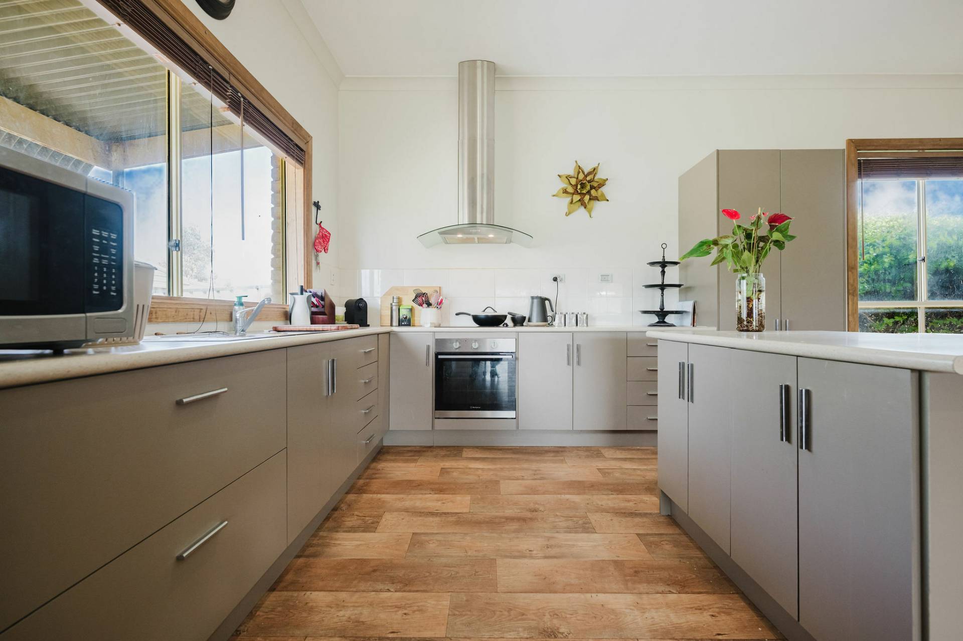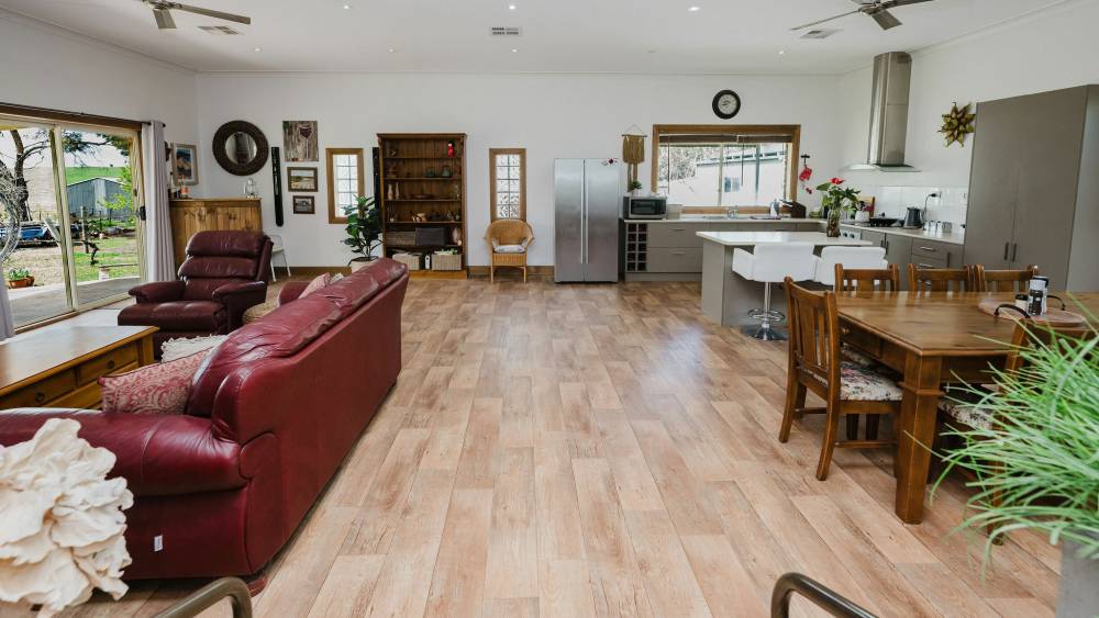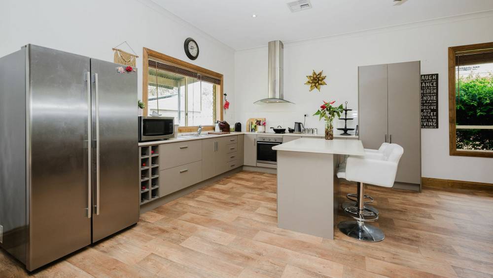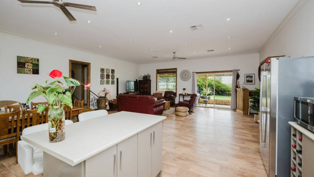 Step down into the showstopper open plan living with excellent cabinetry in the kitchen, including island bench and electrical appliances. The home is comforted by reverse cycle heating and cooling, and there is 3.8kW solar power.  North-facing verandah with wonderful views of the rural landscape, while you watch the livestock approach the boundary. Single carport under the main roof, two garden sheds and established gardens. Situated on a 1370* sqm block in a quiet country area, on the outskirts of Auburn township.