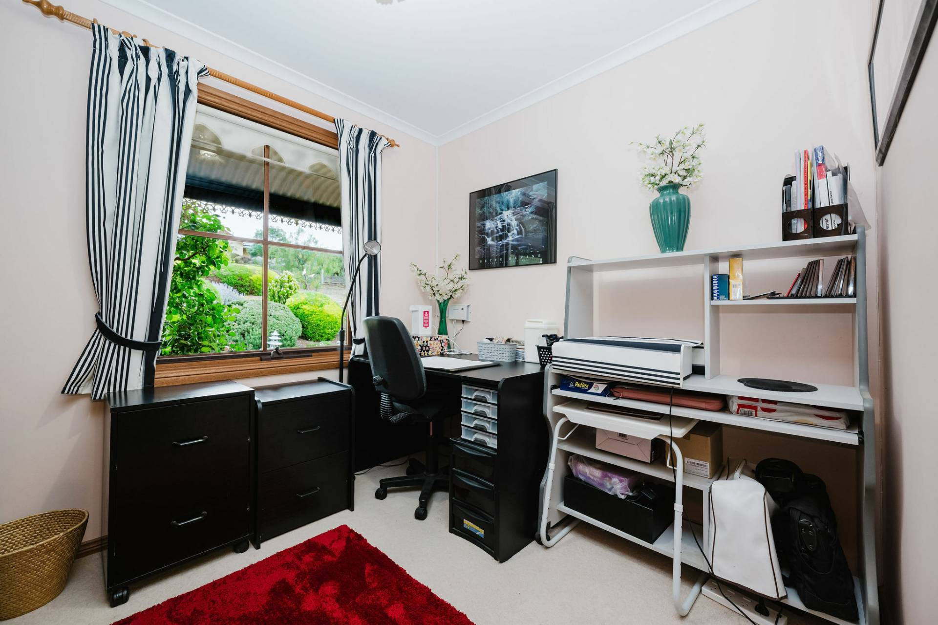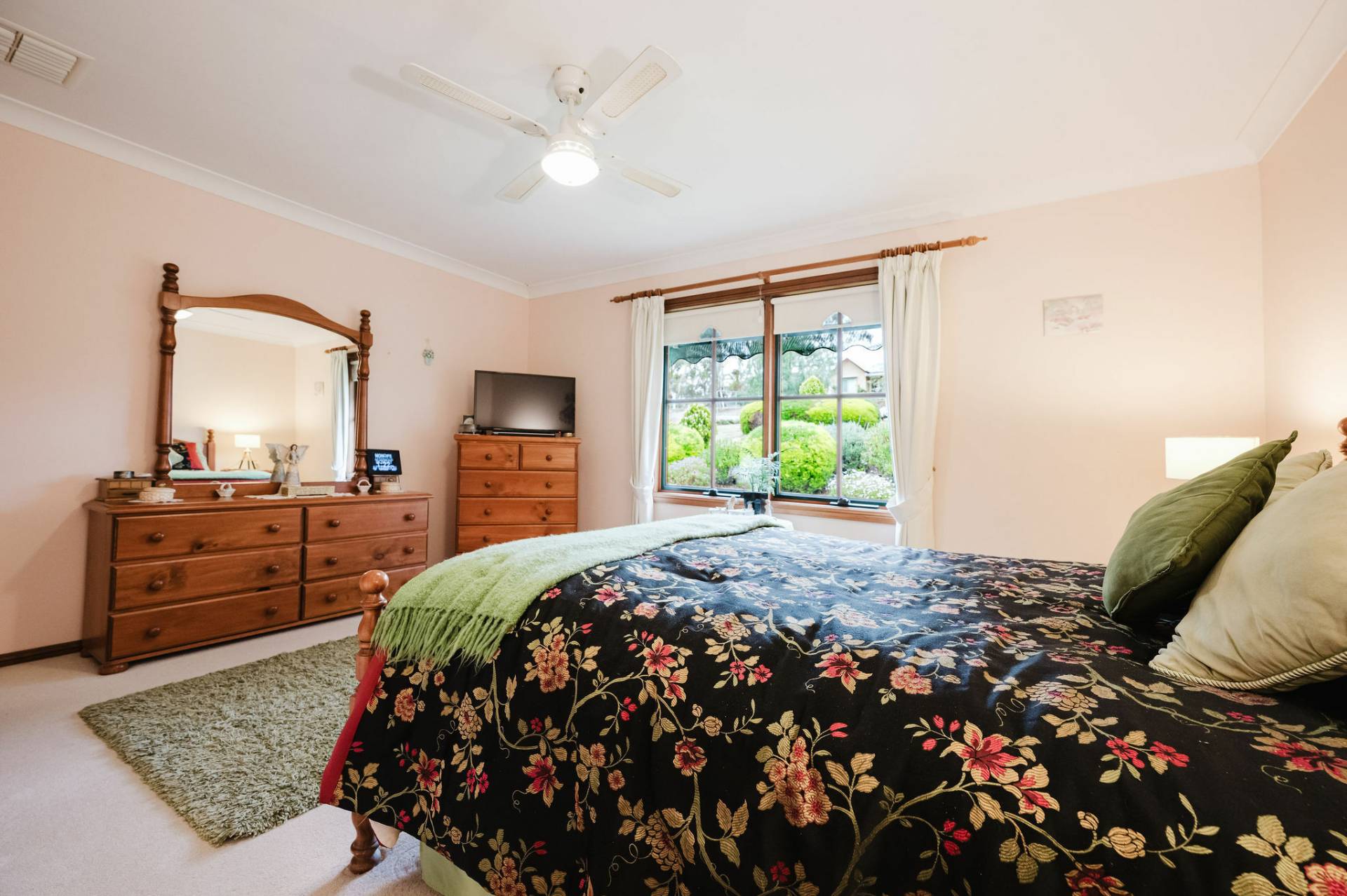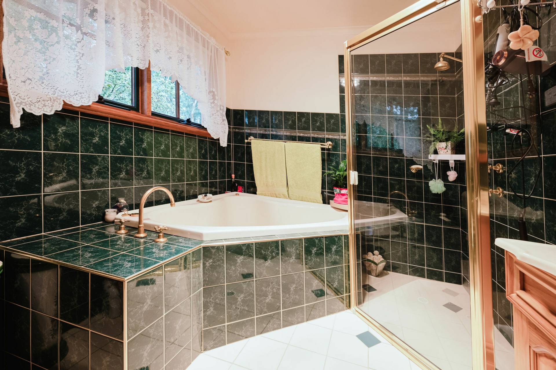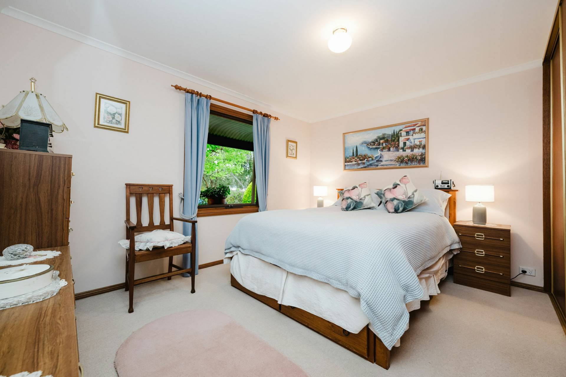 The master bedroom offers a walk-in robe, corner spa bath and shower in the ensuite. Family bathroom with shower over the bath, second bedroom with built-in robe and garden views. Spacious third bedroom with separate study or fourth children’s bedroom. Showpiece second living area with atrium glass window and featured brick open fireplace.