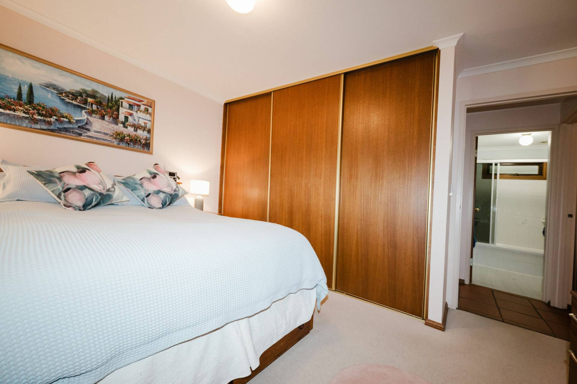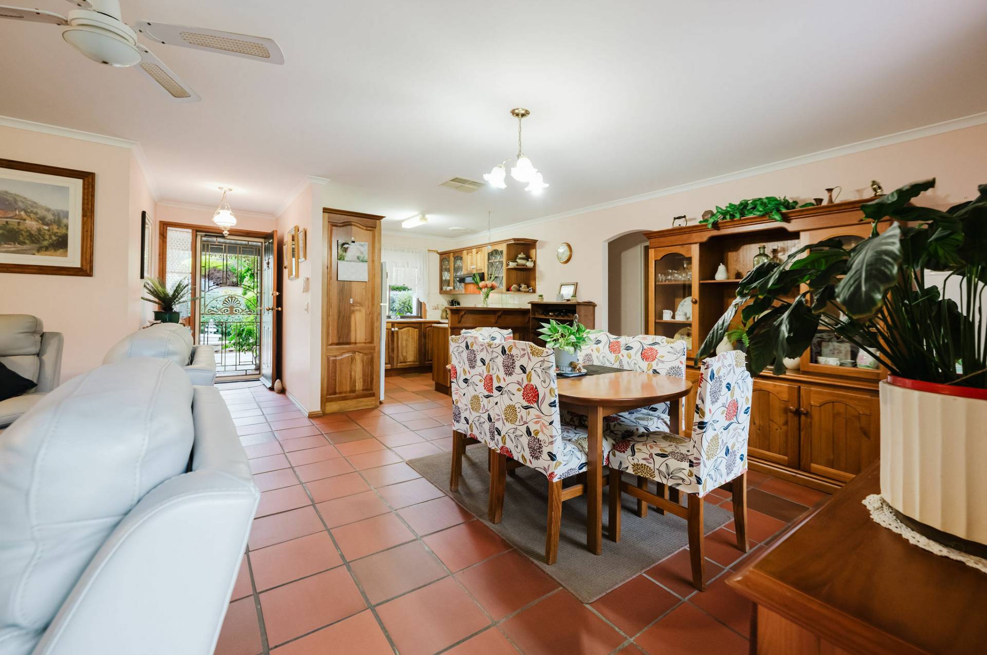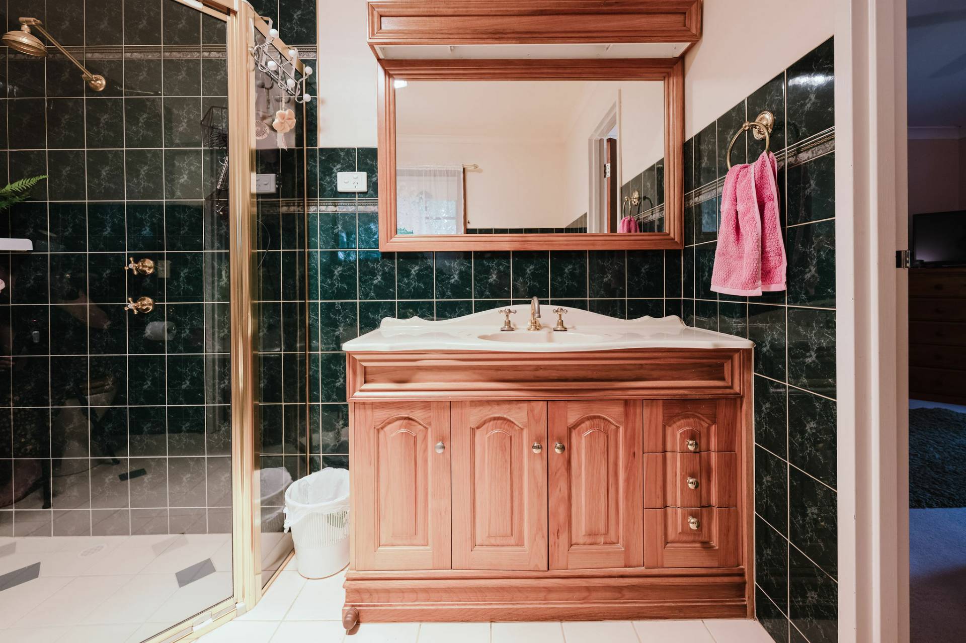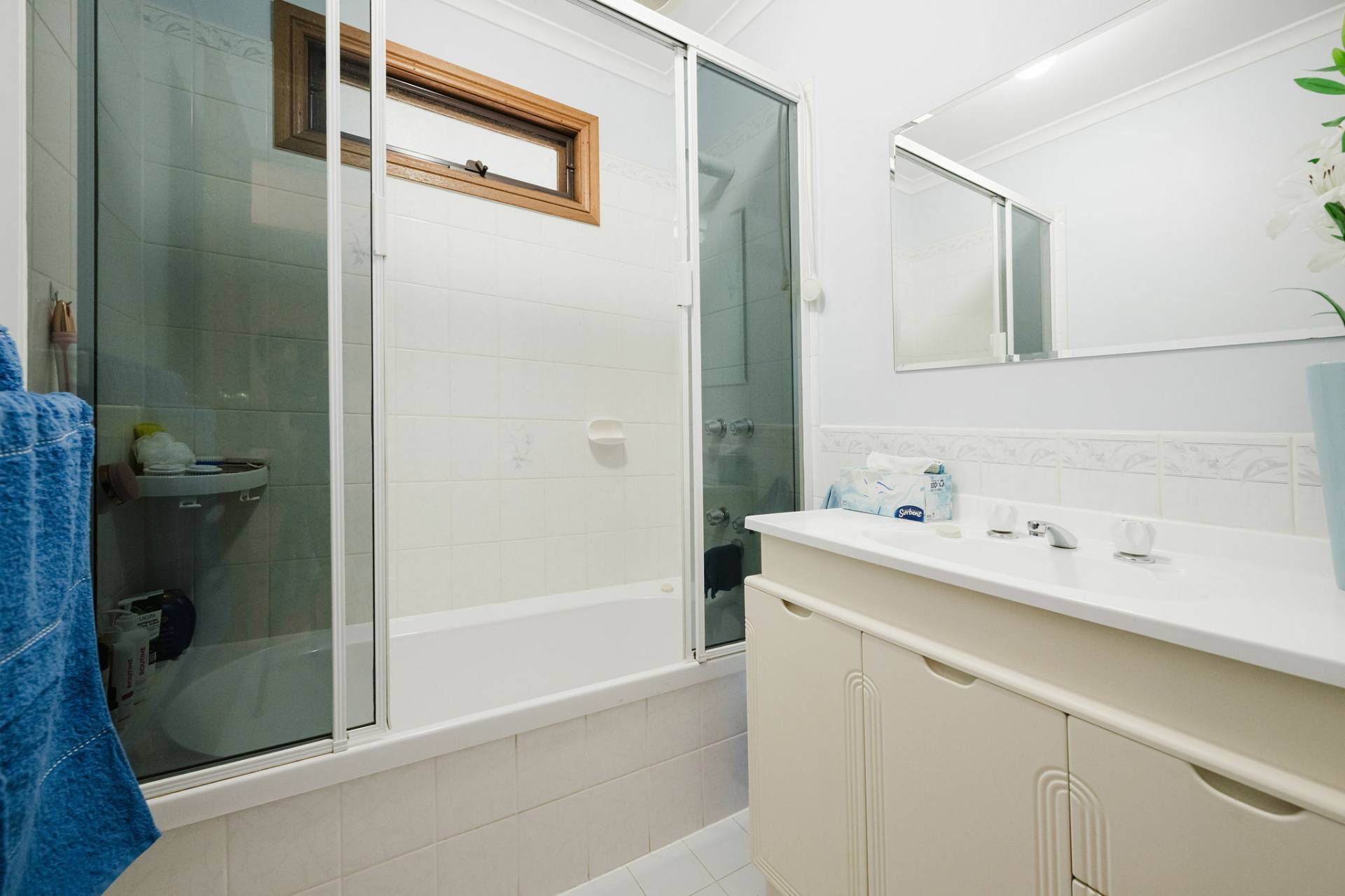 The master bedroom offers a walk-in robe, corner spa bath and shower in the ensuite. Family bathroom with shower over the bath, second bedroom with built-in robe and garden views. Spacious third bedroom with separate study or fourth children’s bedroom. Showpiece second living area with atrium glass window and featured brick open fireplace.