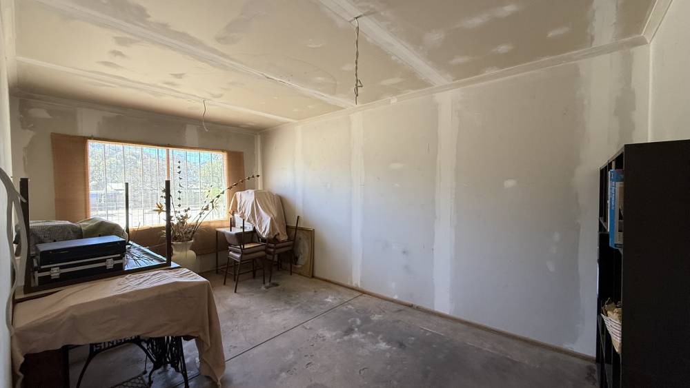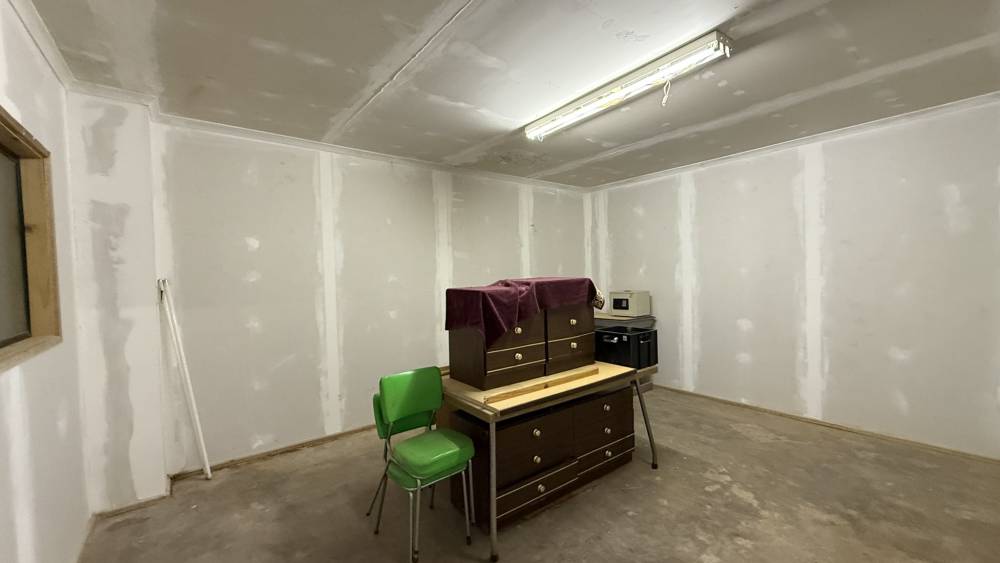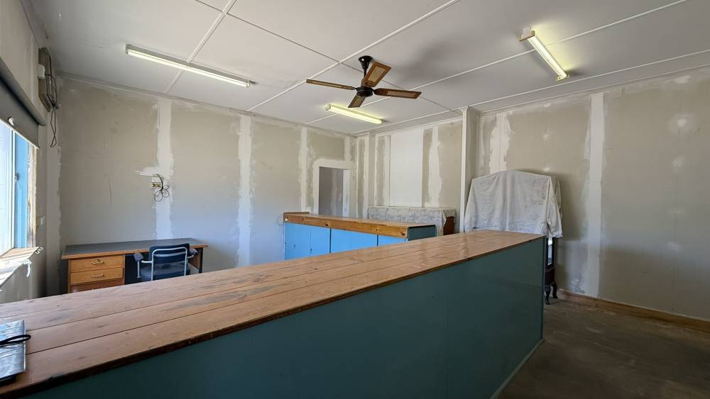 Set across two titles, the property features a solid concrete block office and reception building with two internal offices and excellent access to the yard. Behind, a massive 60’ x 35’ (approx. 18.3m x 10.7m) workshop with 11.5’ (approx. 3.5m) high doors provides ample space for vehicles, machinery, or large equipment, all supported by three-phase power.