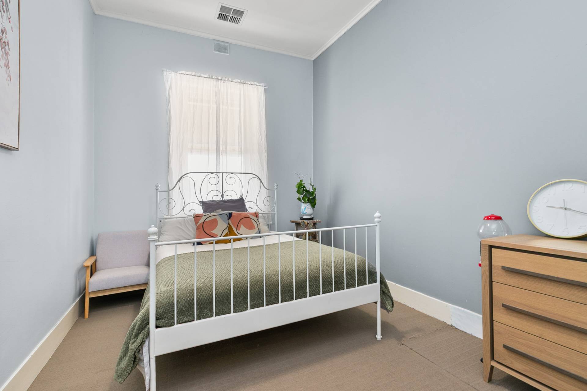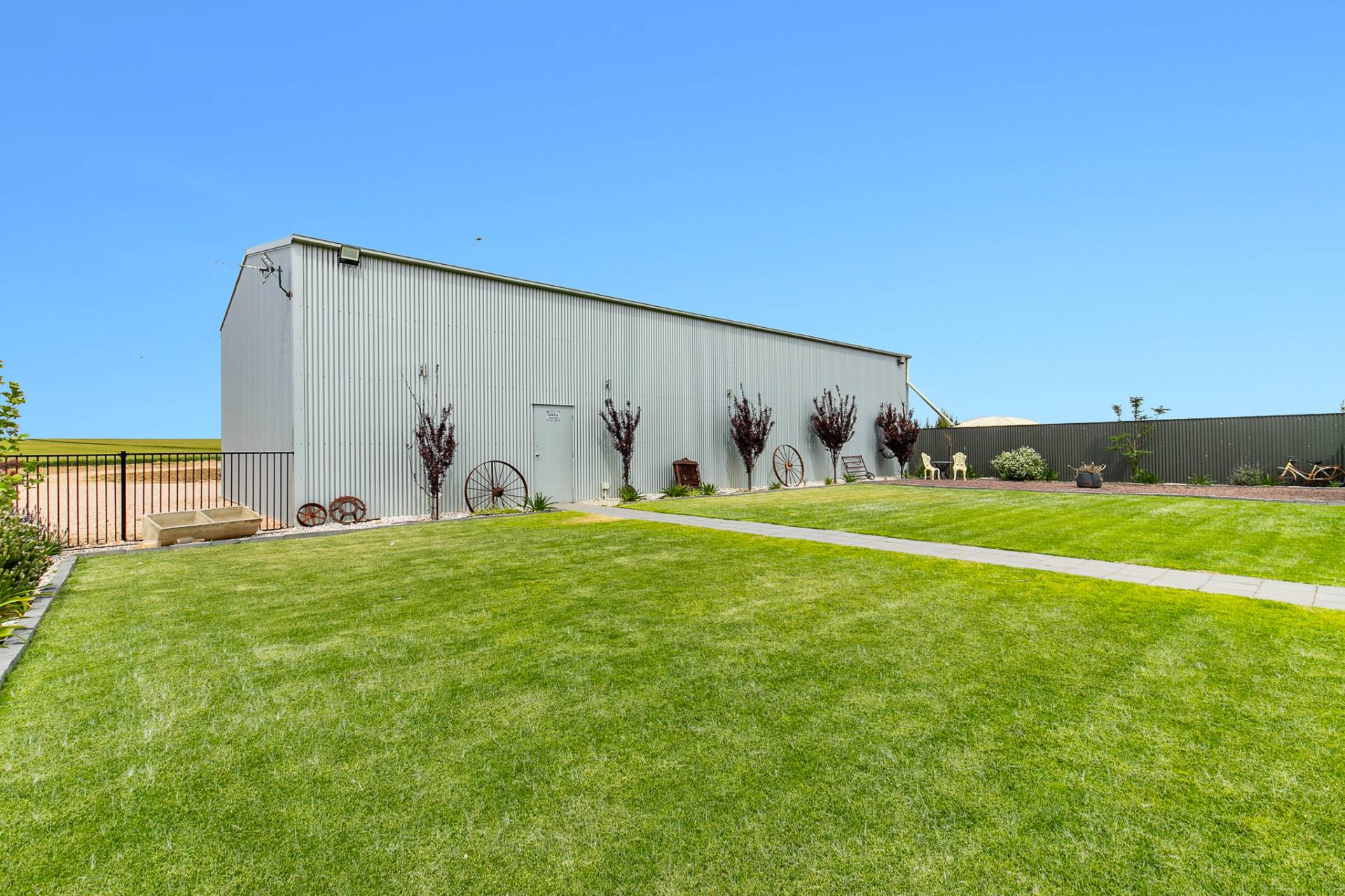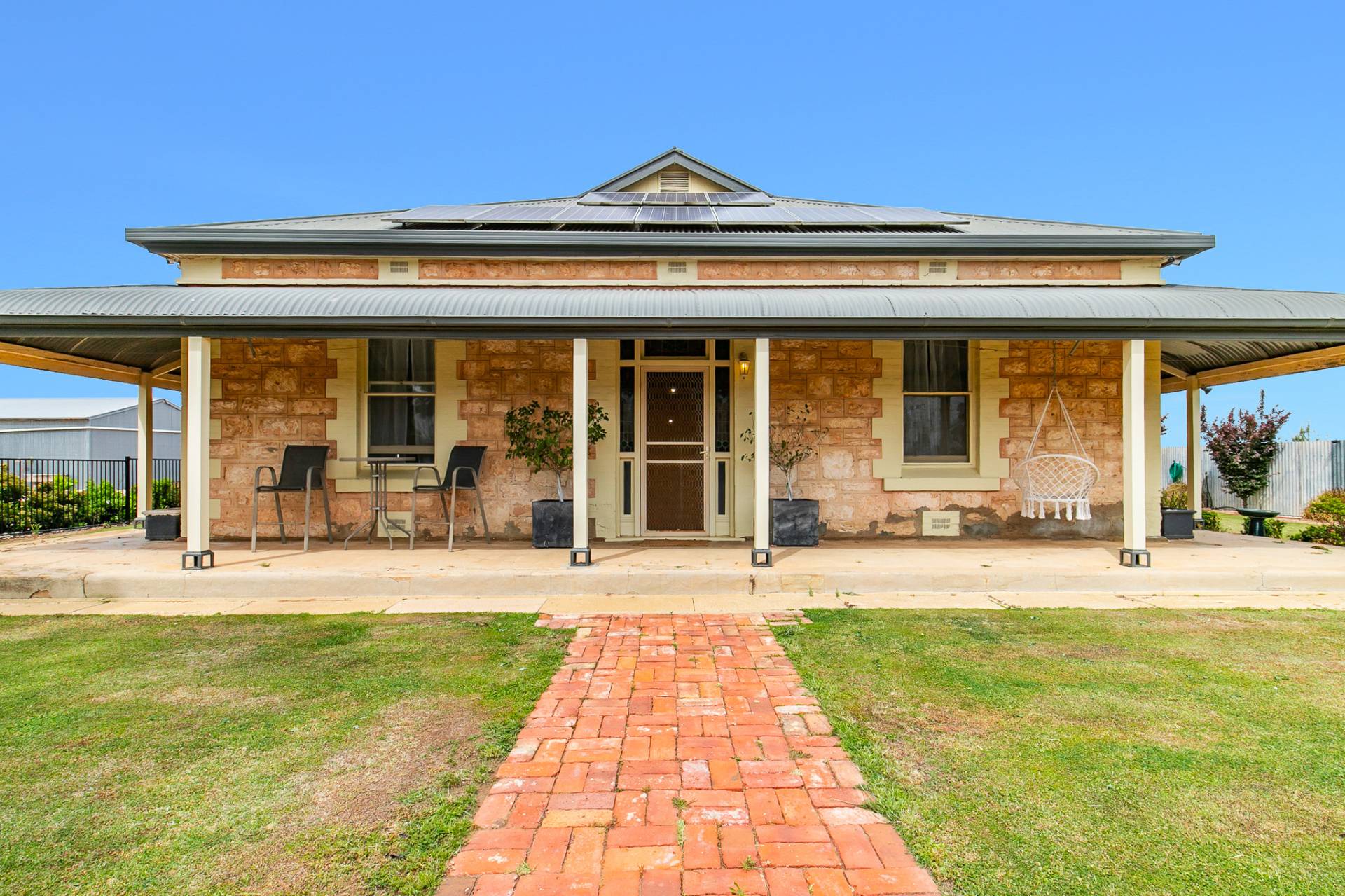 Outside, the charm continues. A concave verandah gracefully wraps around the home, connecting to two outdoor sitting areas the perfect spots to unwind as you take in the peaceful surroundings, watch the sun dip behind the horizon, or listen to the gentle rustle of crops swaying in the breeze.