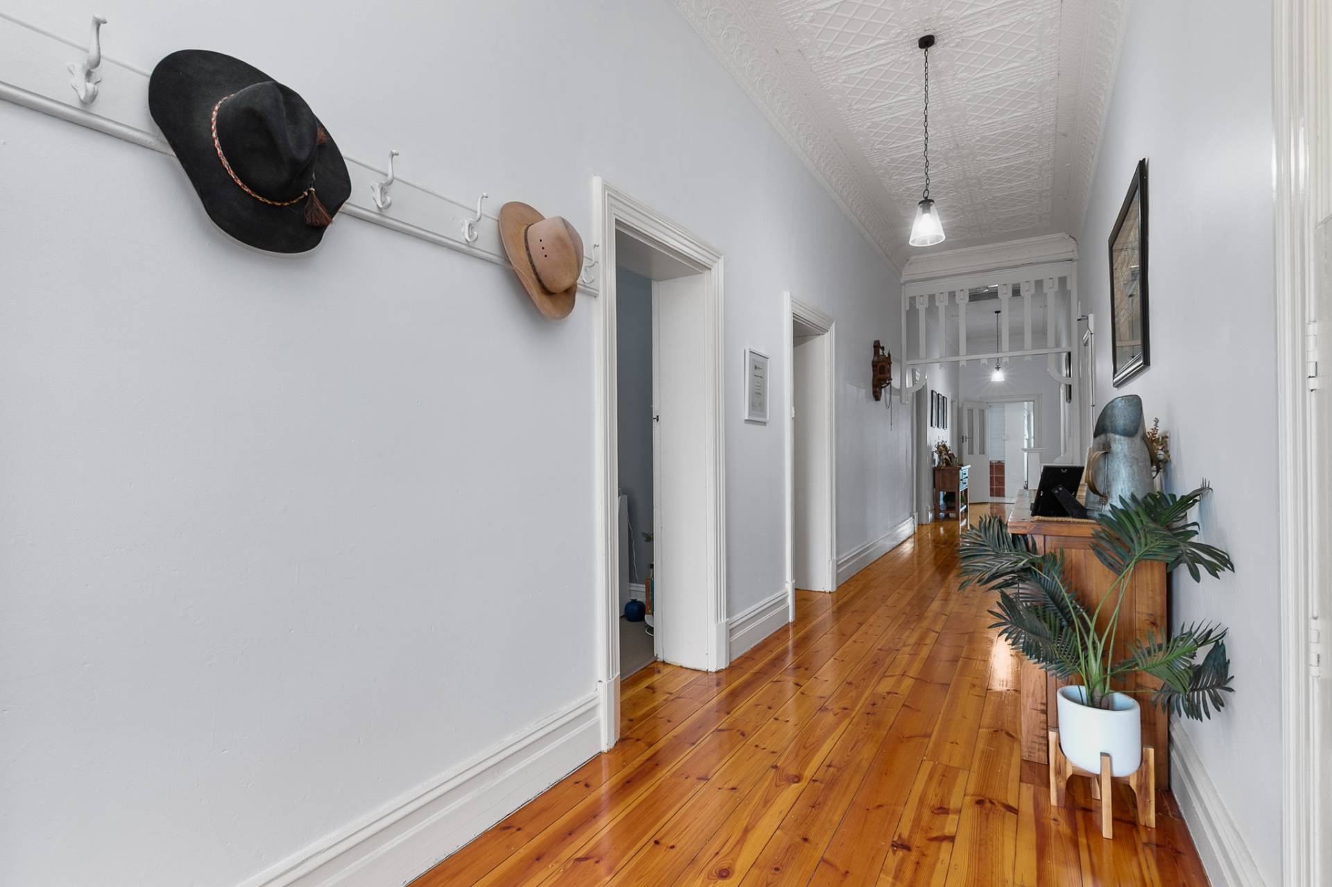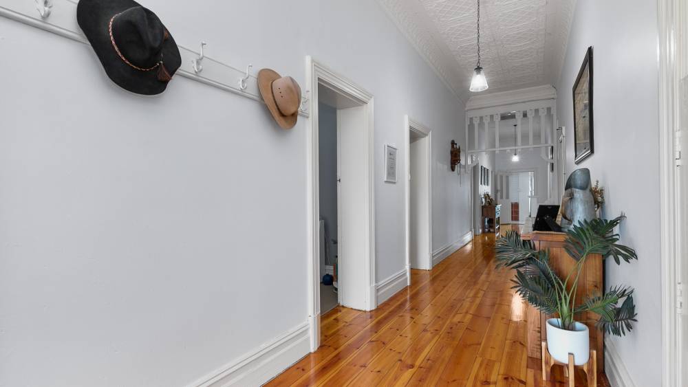 From the moment you step through the front door, youre greeted by a sense of warmth and history. A wide hallway lined with original polished floorboards, 12-foot ceilings and ornate detailing sets the tone for the timeless character that flows throughout.