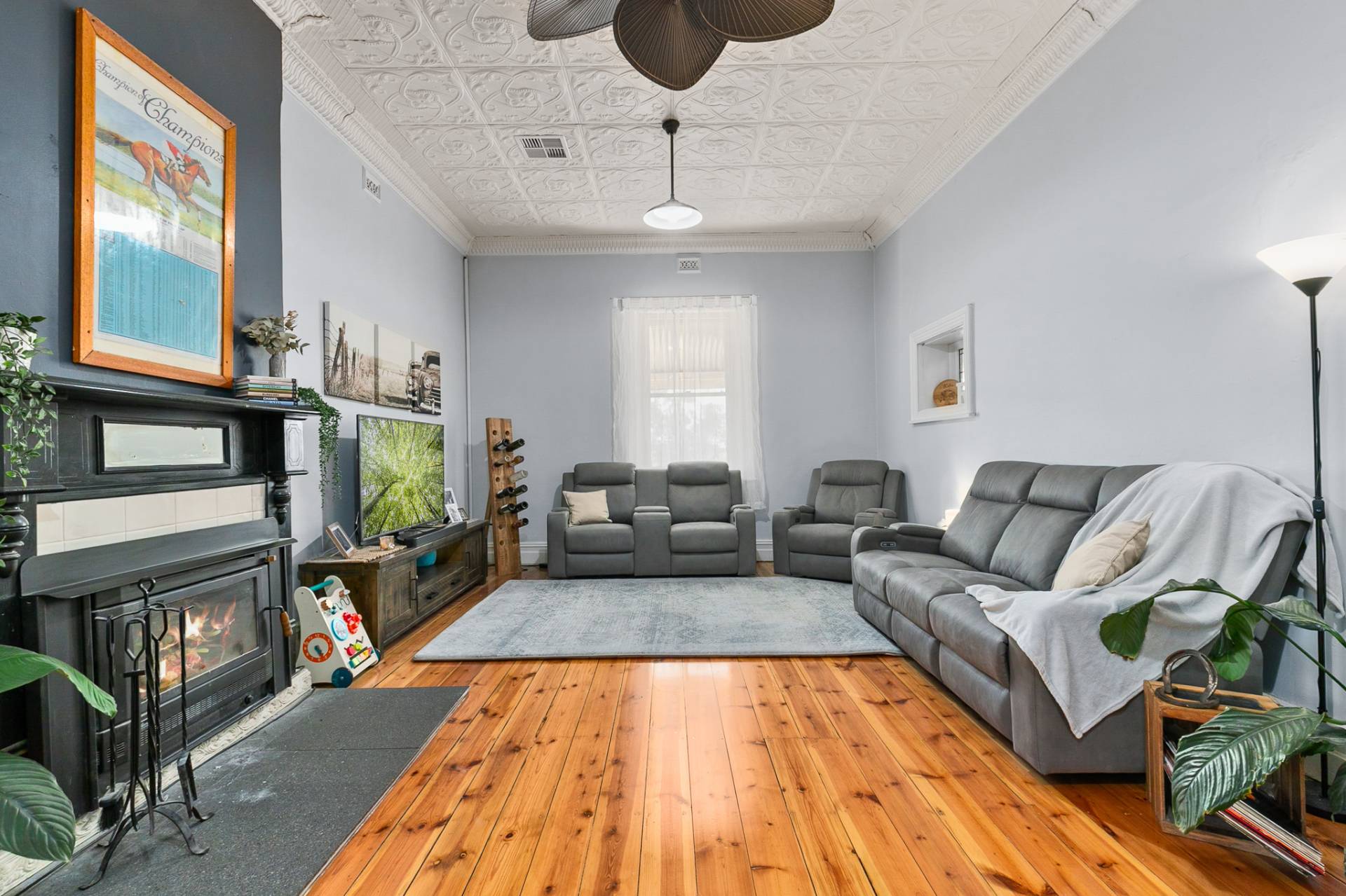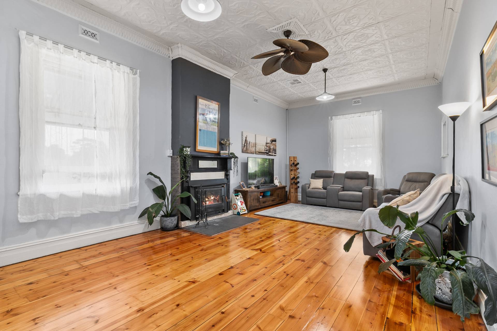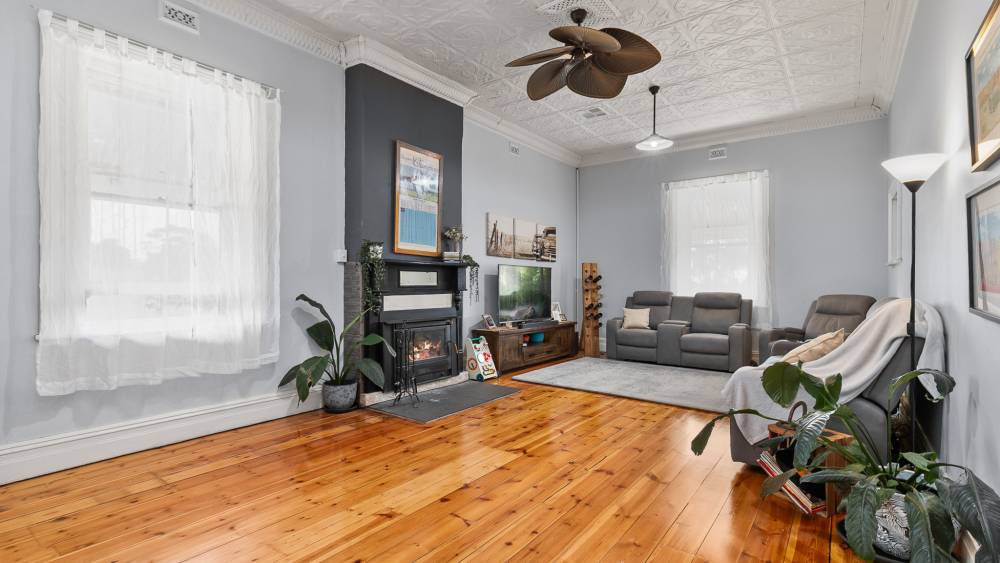 A recently installed, zoned ducted heating and cooling system ensures comfort through every season, complemented by the large living area featuring a combustion heater, vintage-style ceiling fan, and intricate ornate ceiling that ties the homes character together beautifully.