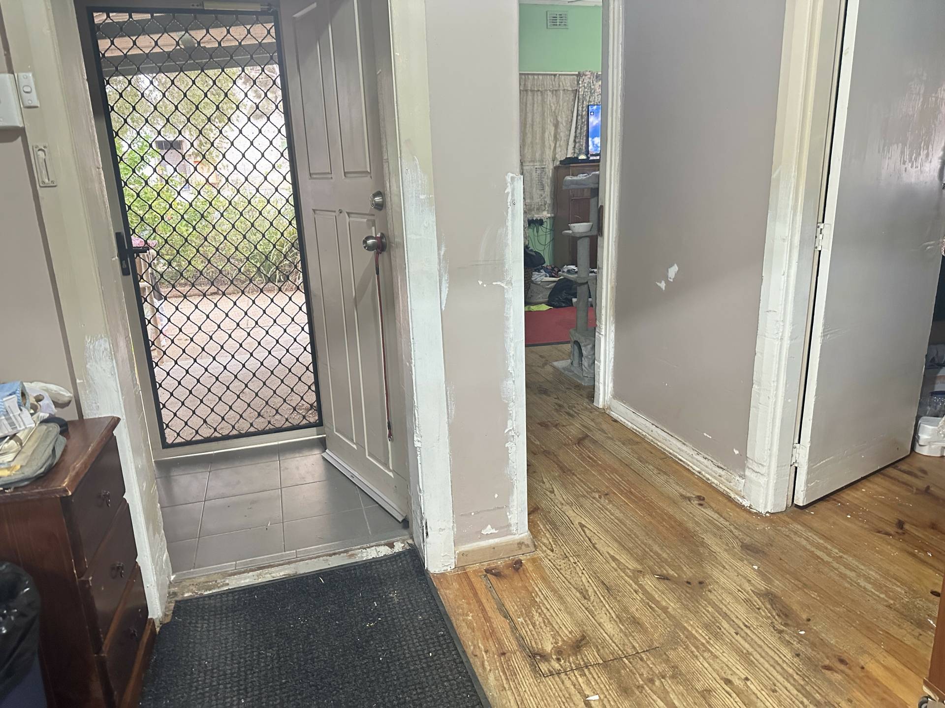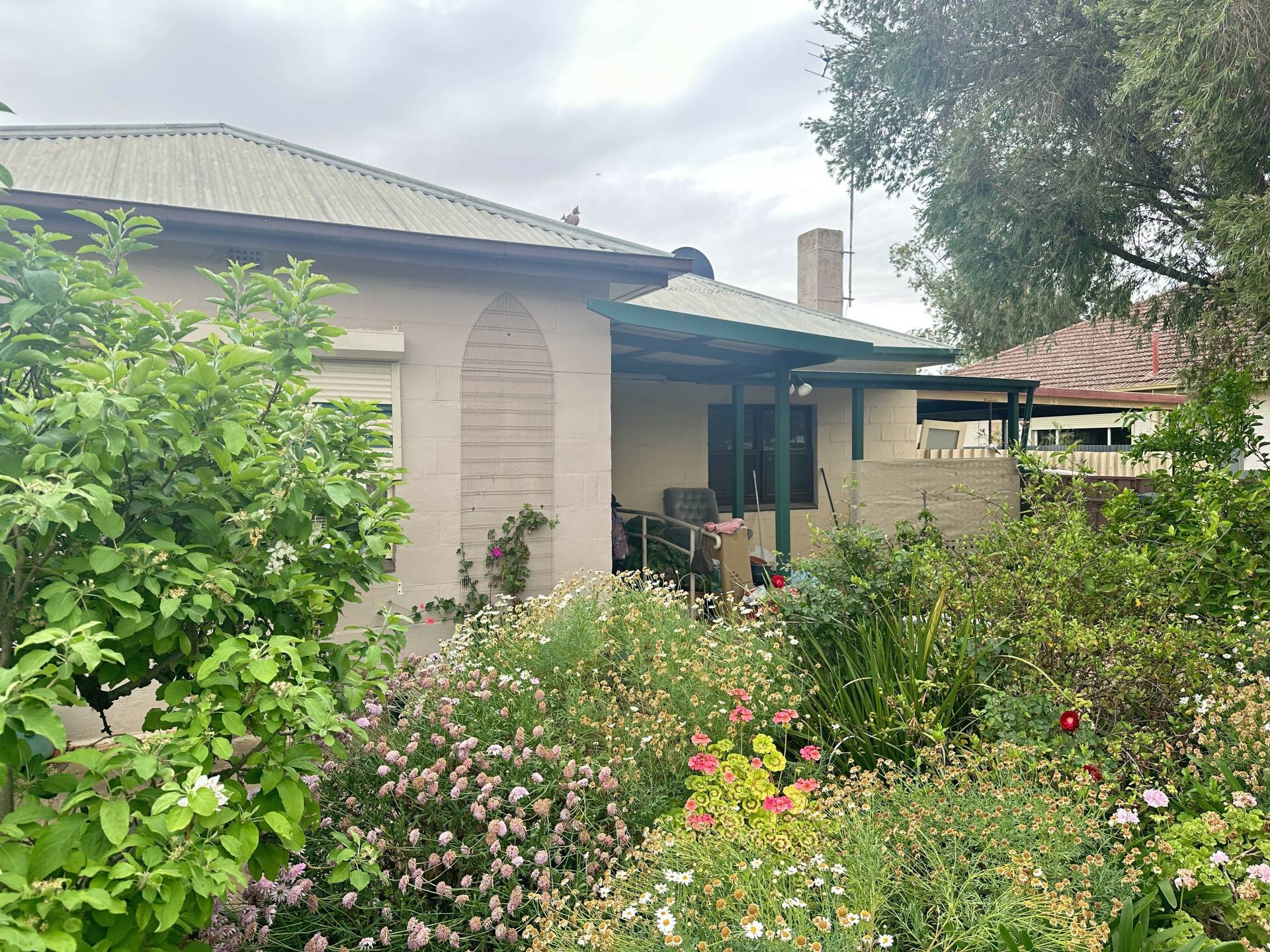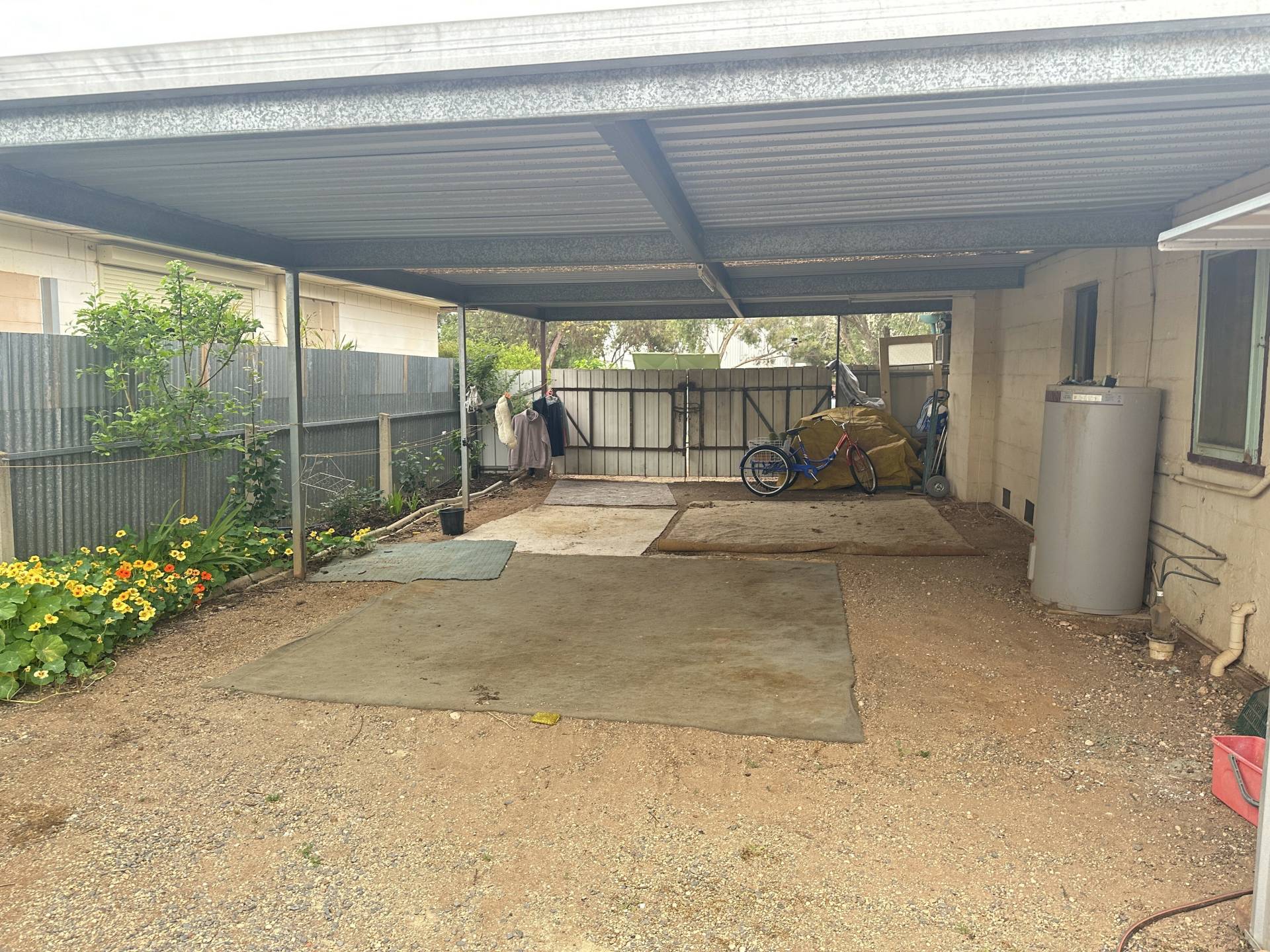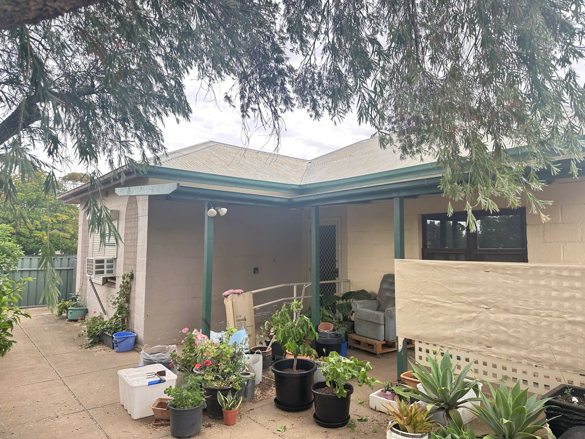 Great opportunity to put your own personal touch on this character home. Original timber floorboards, spacious rooms and gardener’s retreat. This home has 3 generous size bedrooms, wide hallway and front lounge room with ceiling fan and air conditioning. Galley-style kitchen / dine with overhead cupboards. Laundry, bathroom and separate toilet. Private, enclosed back porch and mud room. Double carport and single garage on 1000sqm* block with established fruit trees, raised vegetable beds and chook yard. This property won’t last long so enquire today.