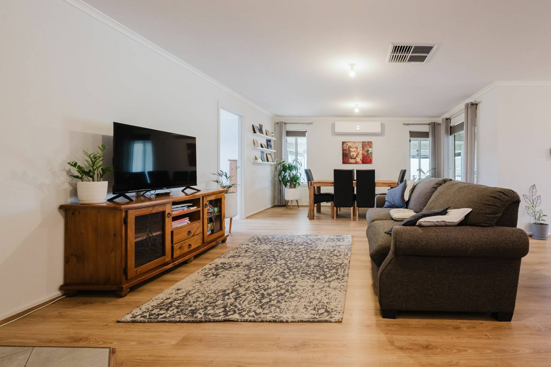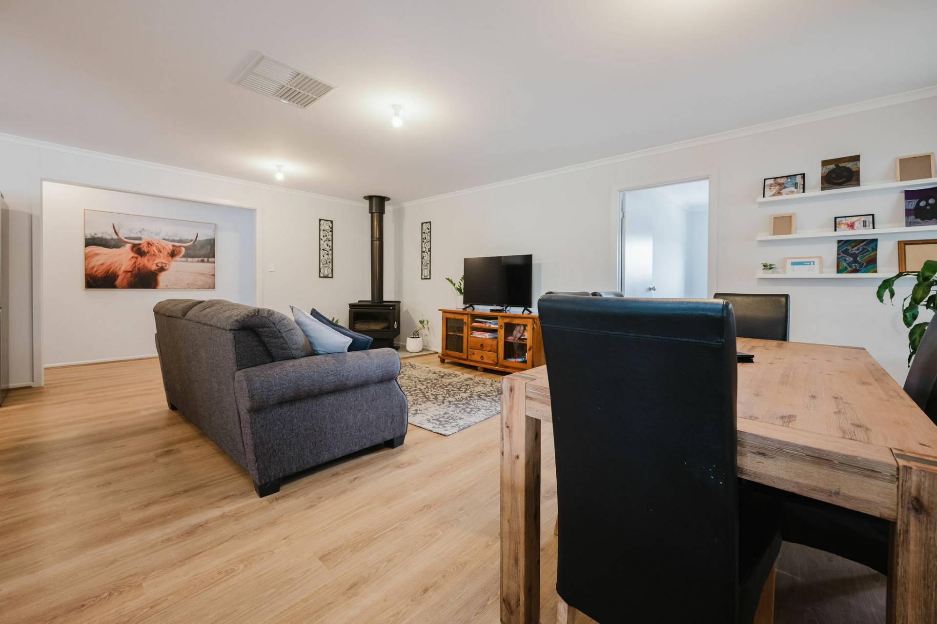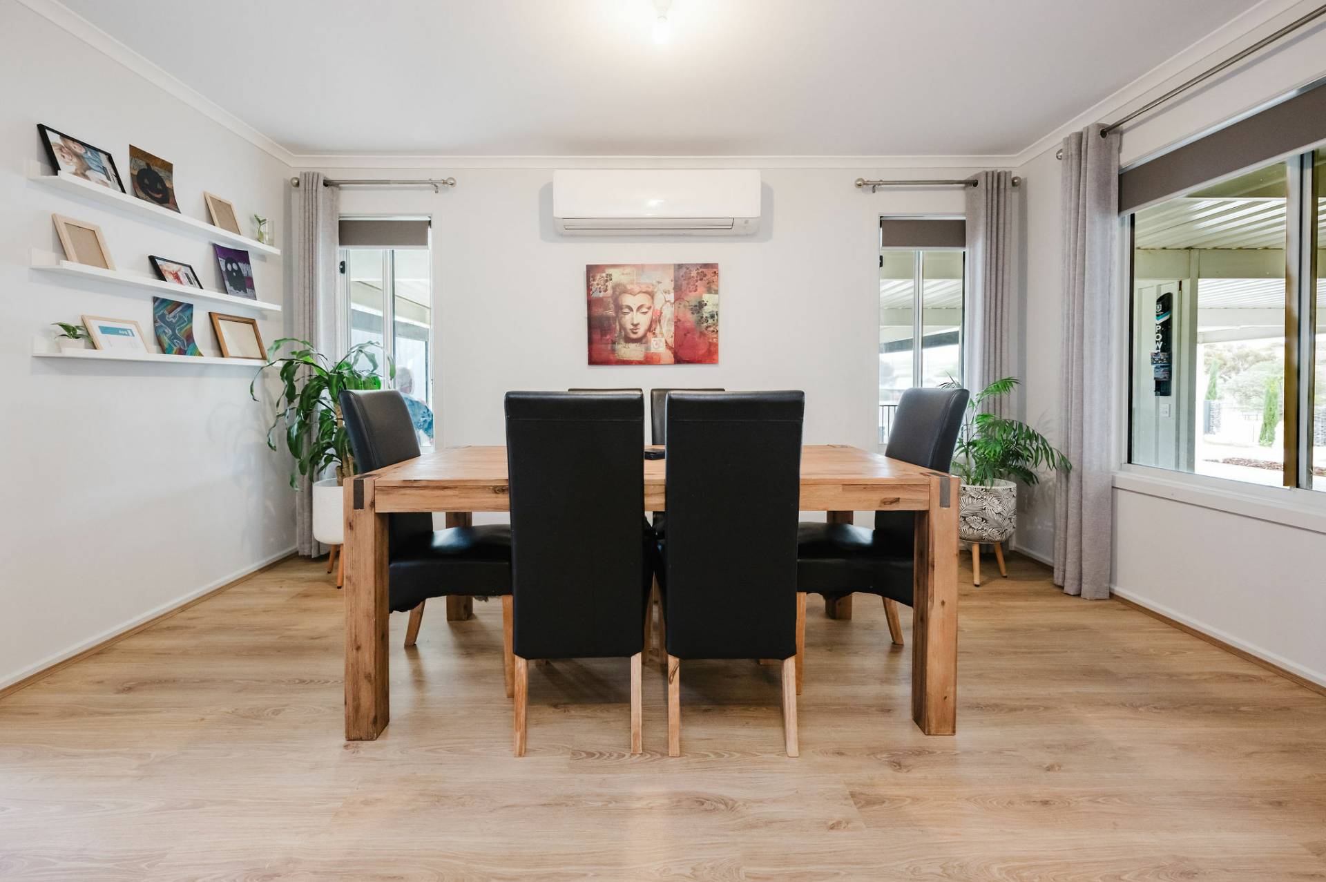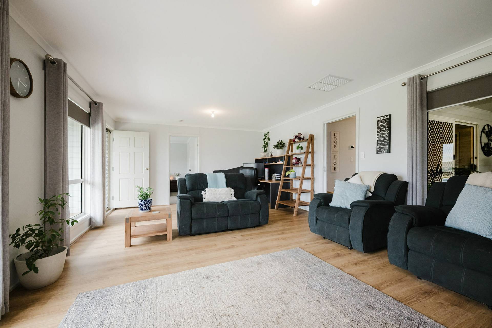 Set on approx. 3.5 acres* of land, this beautifully presented family home offers the perfect balance of space, comfort and rural lifestyle living. The home features 4 generous bedrooms, all with built-in robes and ceiling fans, plus additional study or home office. Stylish 3-way main bathroom plus ensuite, laundry with built-in storage. Spacious front lounge room with rural views, quality fixtures and fittings throughout. Modern kitchen featuring overhead cupboards, walk-in pantry, island bench and quality appliances. Open plan living area with ducted evaporative air conditioning, split system and combustion heater.