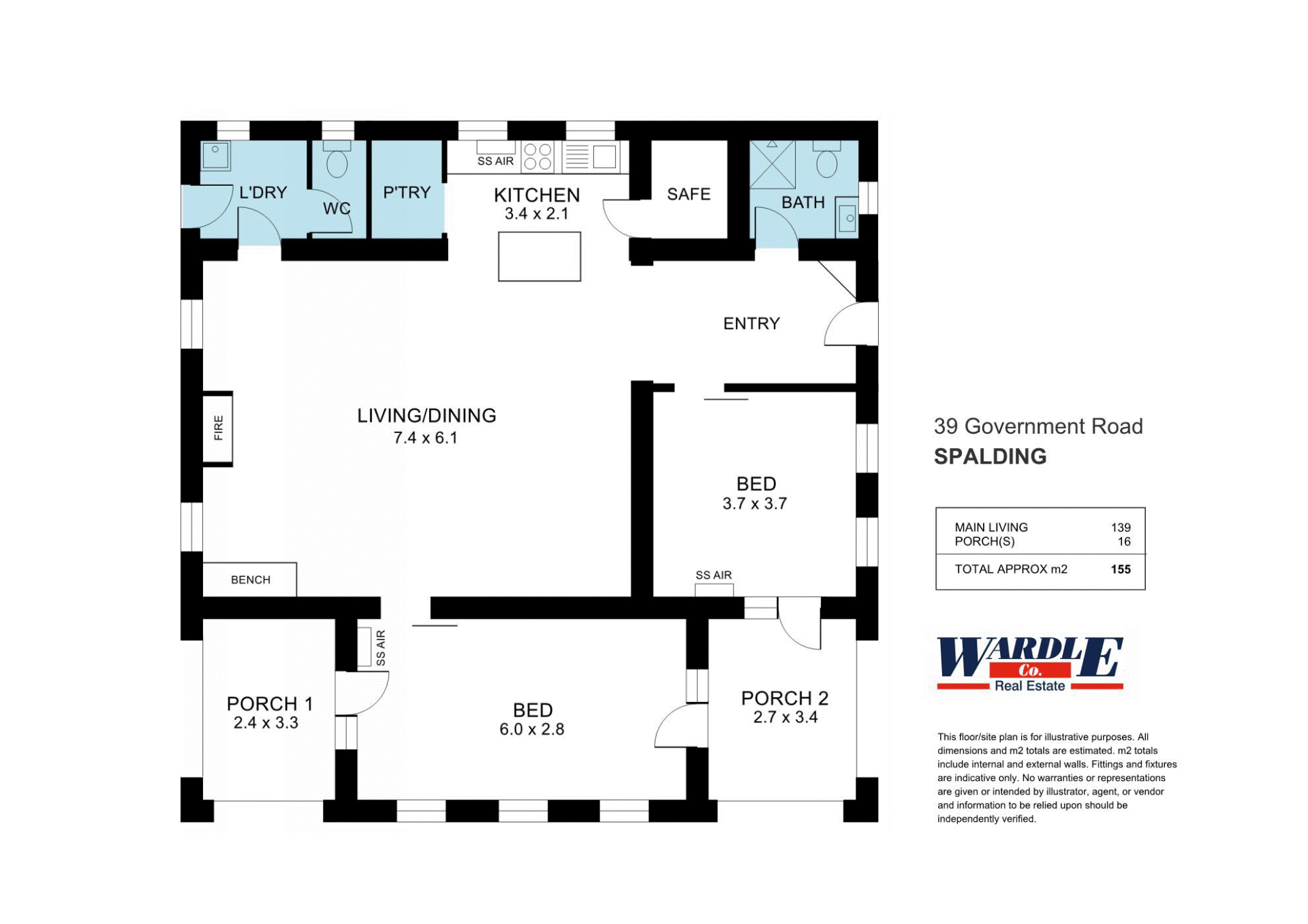 One bedroom measures 3.7m x 3.7m*, is carpeted and has its own reverse cycle split system.   The second bedroom, being 2.8m x 6m*, also provides split system and access to a private parents’ retreat with alfresco living.  New plumbing and electrical, large modern shower, two toilets and laundry.  The exterior features Enviro-cycle system, rainwater tanks, single carport, garden shed and low maintenance yard. Enjoy modern living with charming features in a peaceful mid north town.