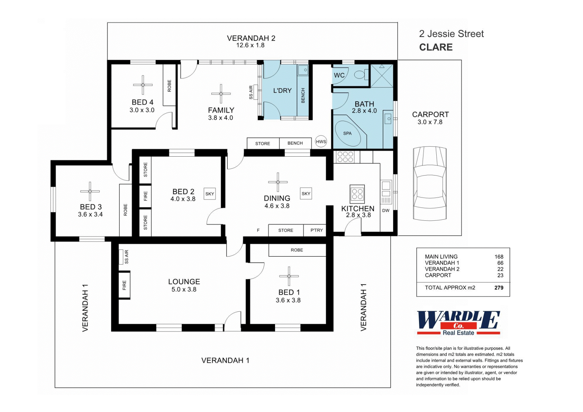 The front lounge offers split system air conditioning, a feature mantlepiece, and high skirtings, while the second living area provides plenty of natural light and flexible space for family living.