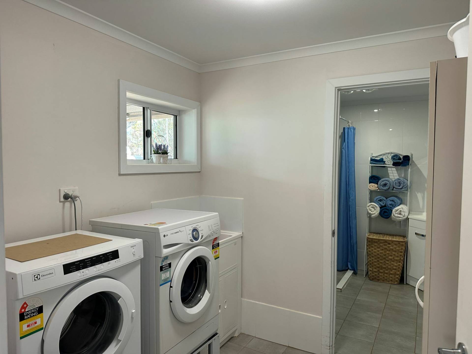 The home features three bedrooms, while bedrooms 1 and 2 include roller shutter blinds for added privacy and comfort and carpeted floors . The bathroom has been recently updated, featuring a modern shower, toilet, and single vanity.