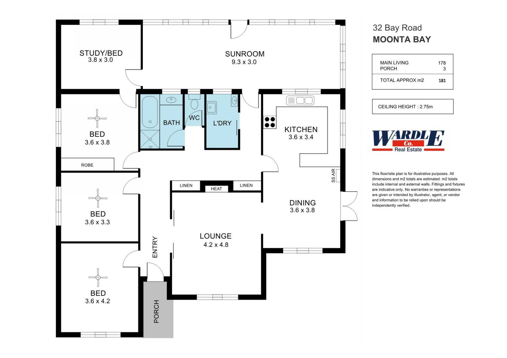 • 3 large bedrooms, all with ceiling fans (one with built-in robe)