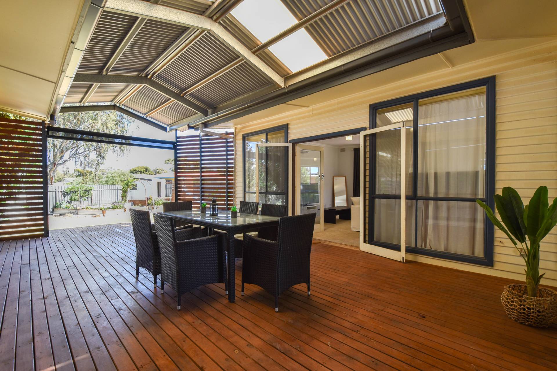 The outdoor areas are where this property truly shines. A central decked patio connects the living and bedroom wings of the home an ideal sheltered retreat that captures beautiful northern sun throughout winter. The northern deck overlooks the stunning garden and the standout wood-fired pizza oven, creating the perfect setting for relaxed afternoons and entertaining. The wrap-around decking enhances the home’s character and significantly boosts its street appeal.