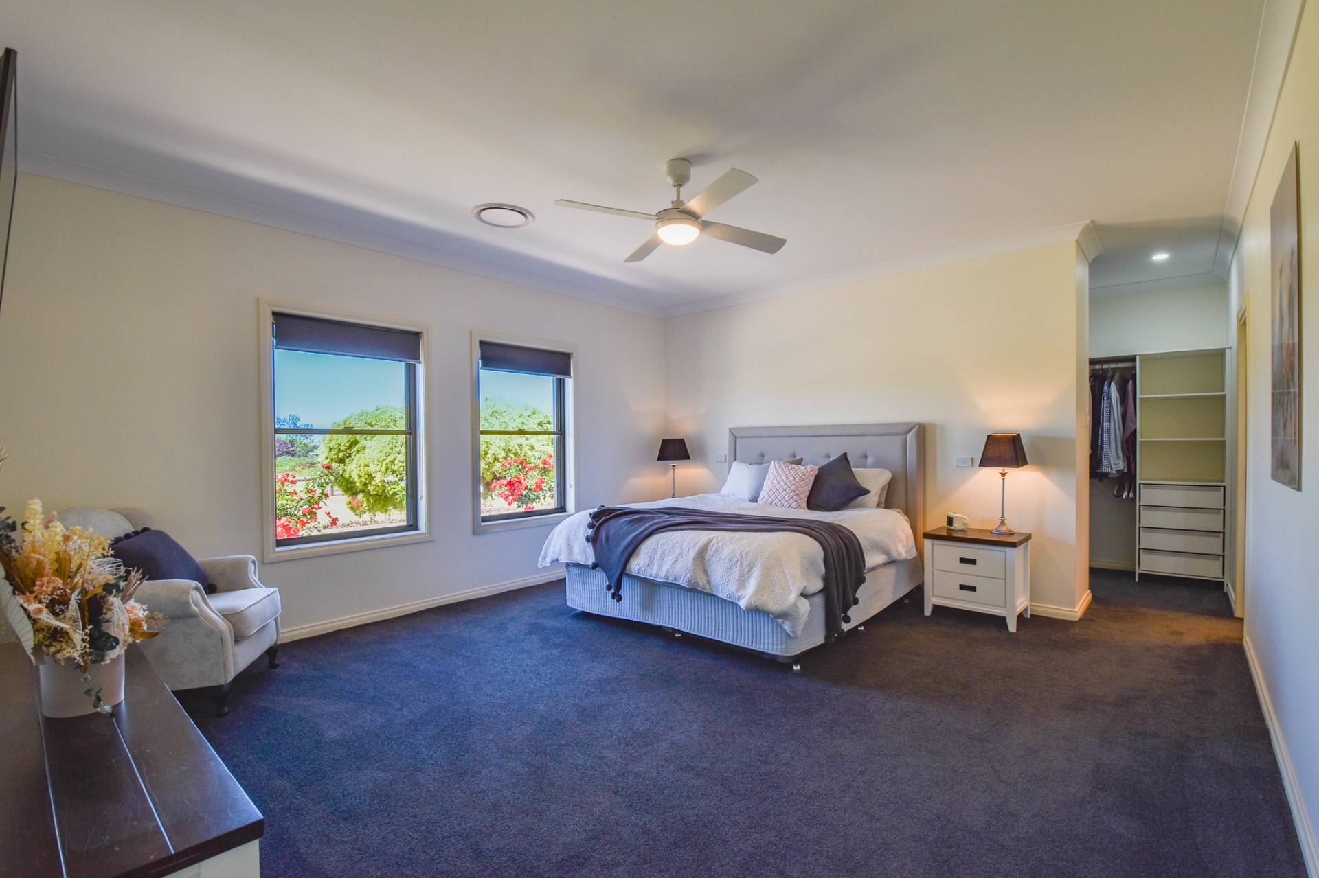 Sustainable living is catered for with a 32-panel (10kw*) solar system, large rainwater tank supplying the home, and mains water also connected.