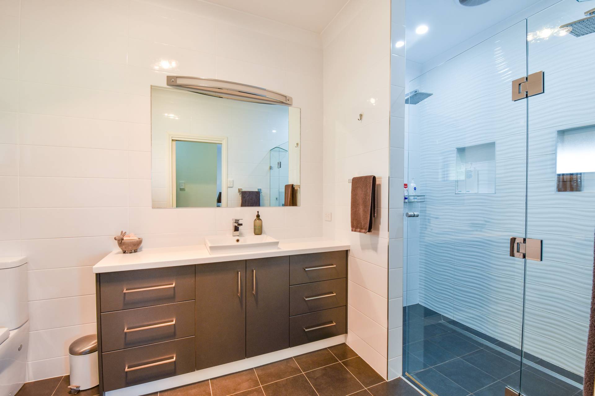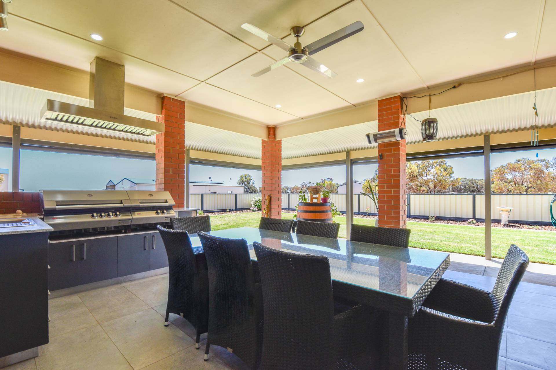 • Large alfresco, perfect for all-season entertaining, complete with zip-track blinds, built-in BBQ with exhaust, and wall-mounted TV