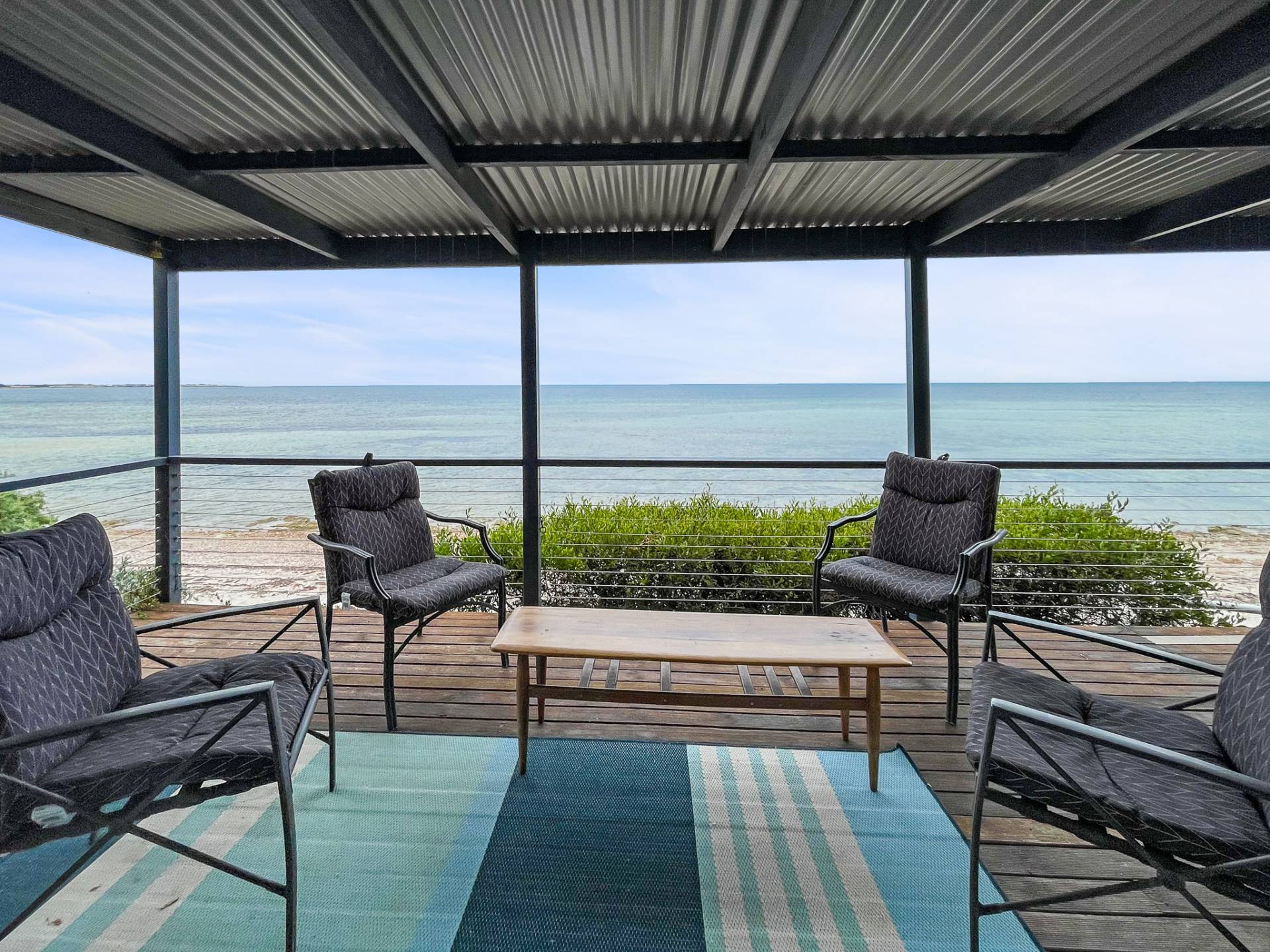 Nestled in a private location, neighbouring a reserve, this beach house has been designed to maximise the natural beauty of its surroundings, offering uninterrupted 180-degree views of the sparkling waters of Hardwicke Bay. The property offers 3 double-size bedrooms, two of which boast breathtaking sea views. A galley kitchen and large dining area create a relaxed, welcoming atmosphere, with timber flooring and comforted by reverse cycle split system. The central lounge room combines carpet and slate flooring. A convenient walk-through laundry leads to a separate bathroom and toilet.