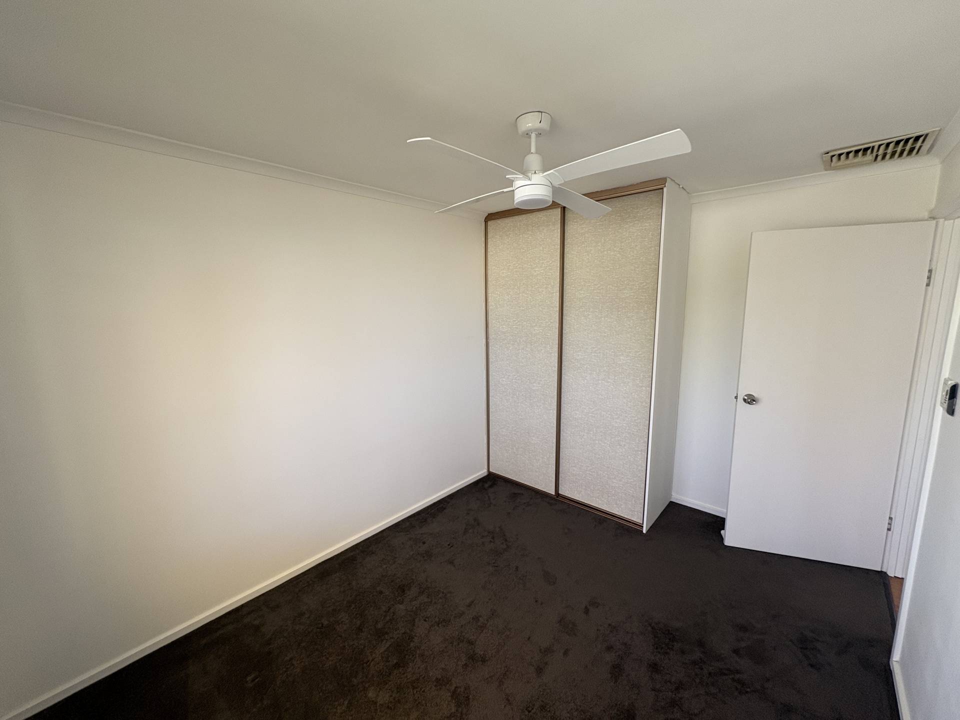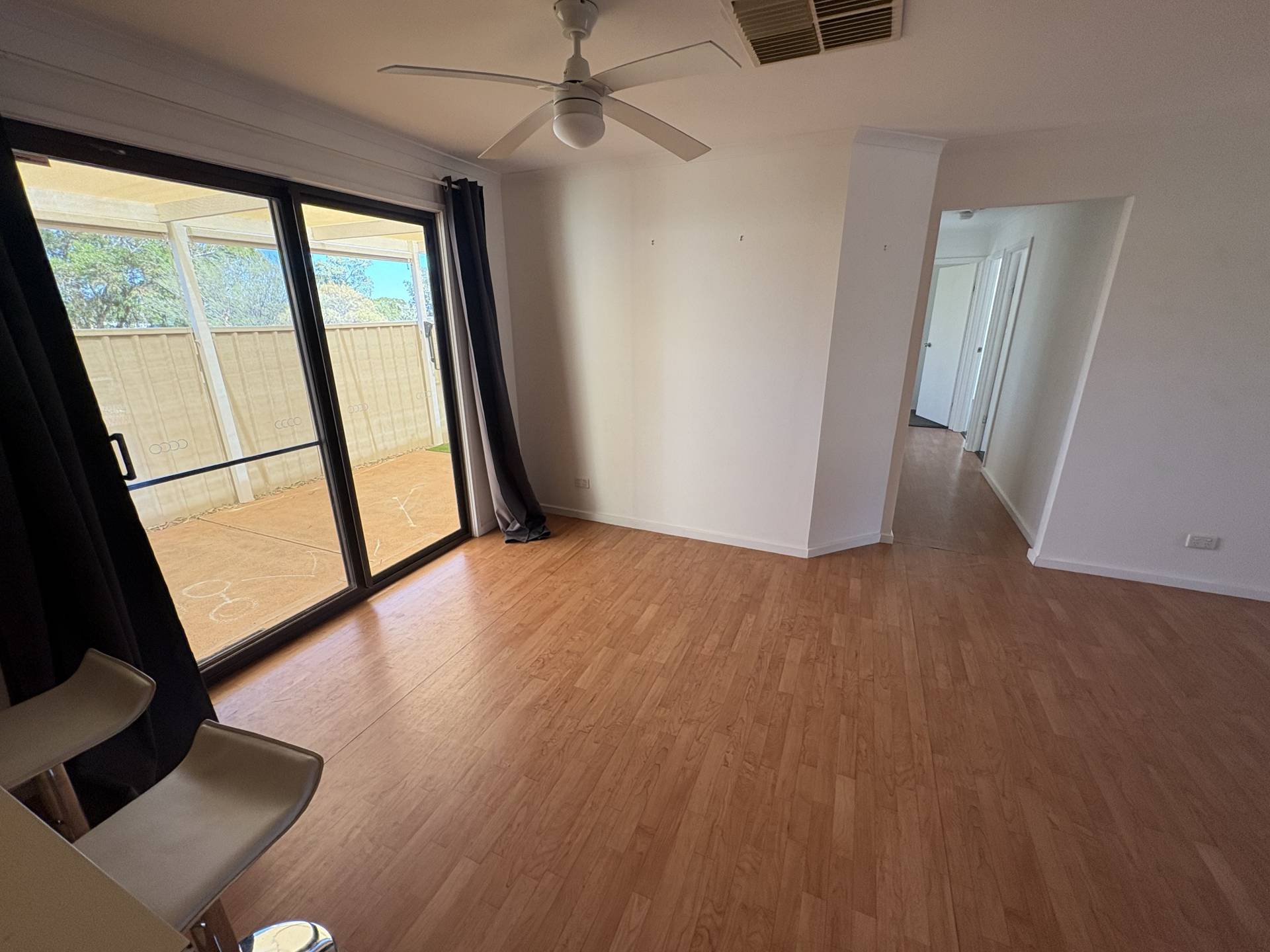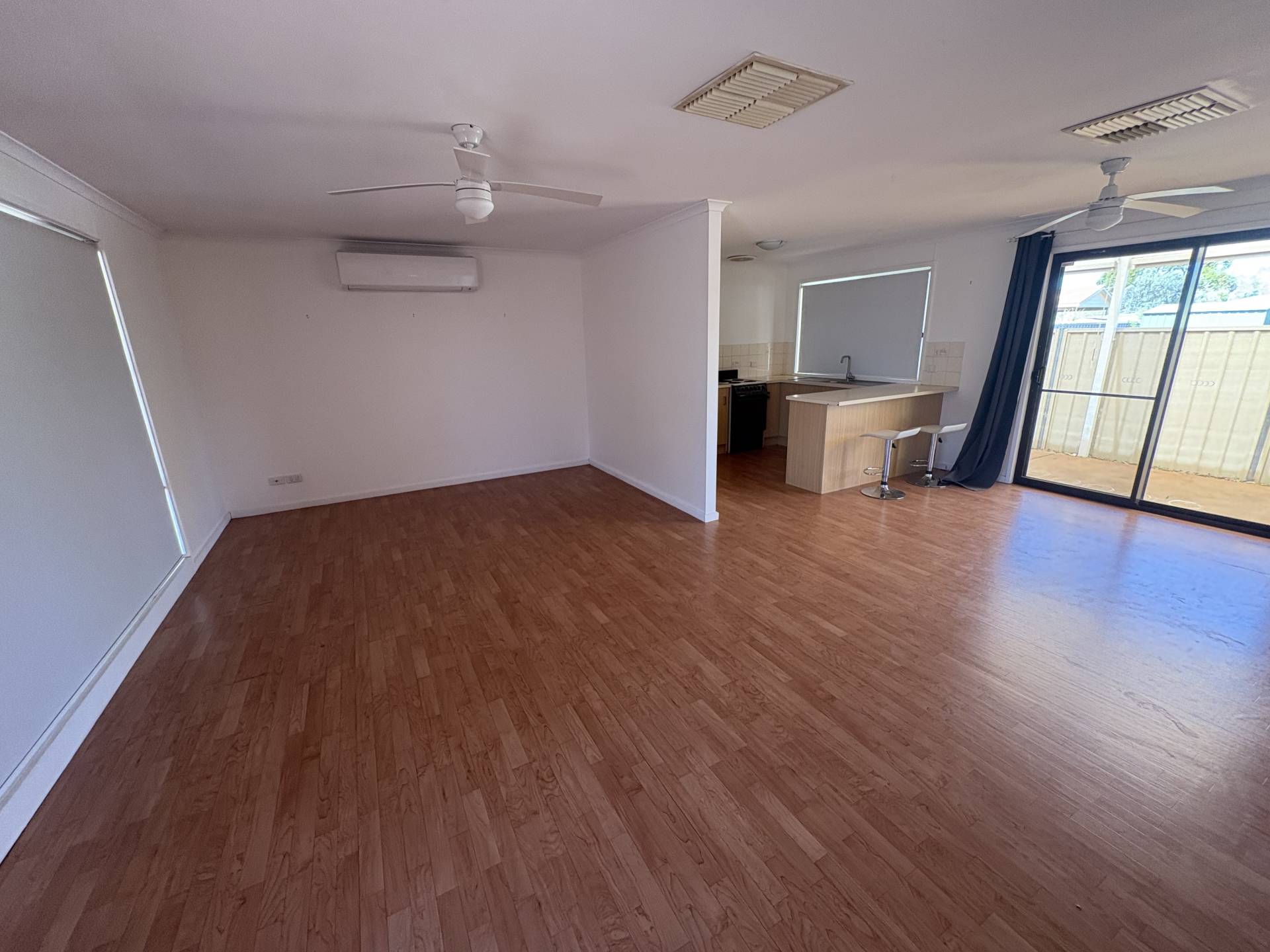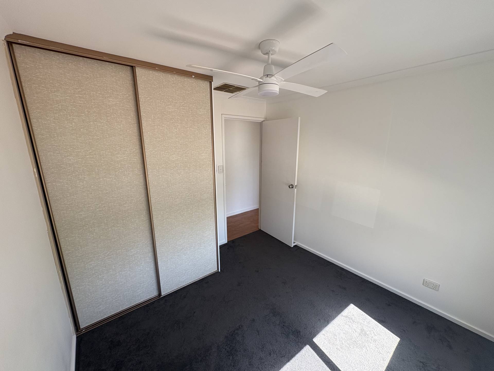 The practical layout features three bedrooms, all complete with built-in robes, ducted air conditioning, and roller shutters. The open-plan kitchen and dining/living area provides a comfortable and functional space for everyday living.
