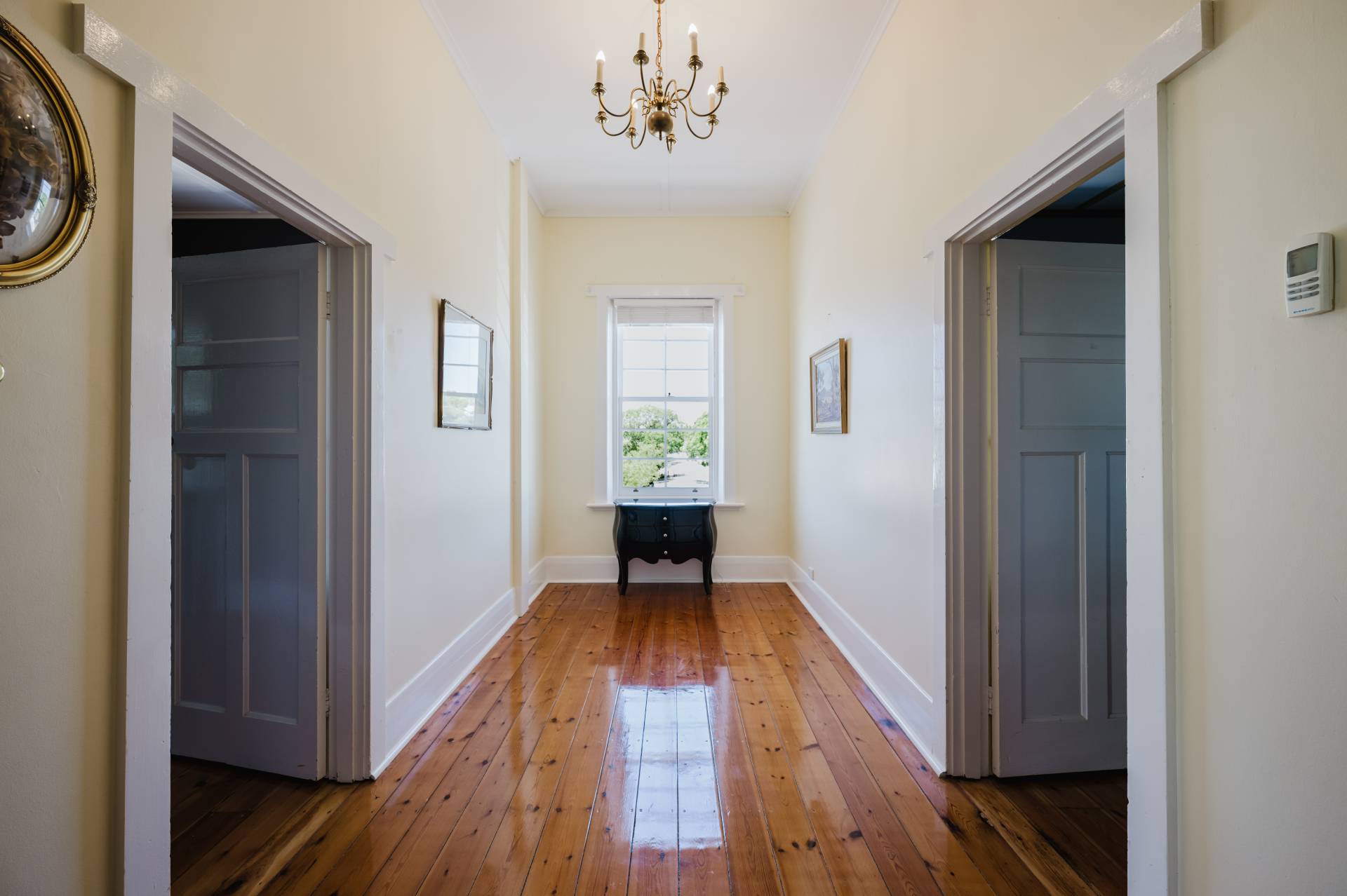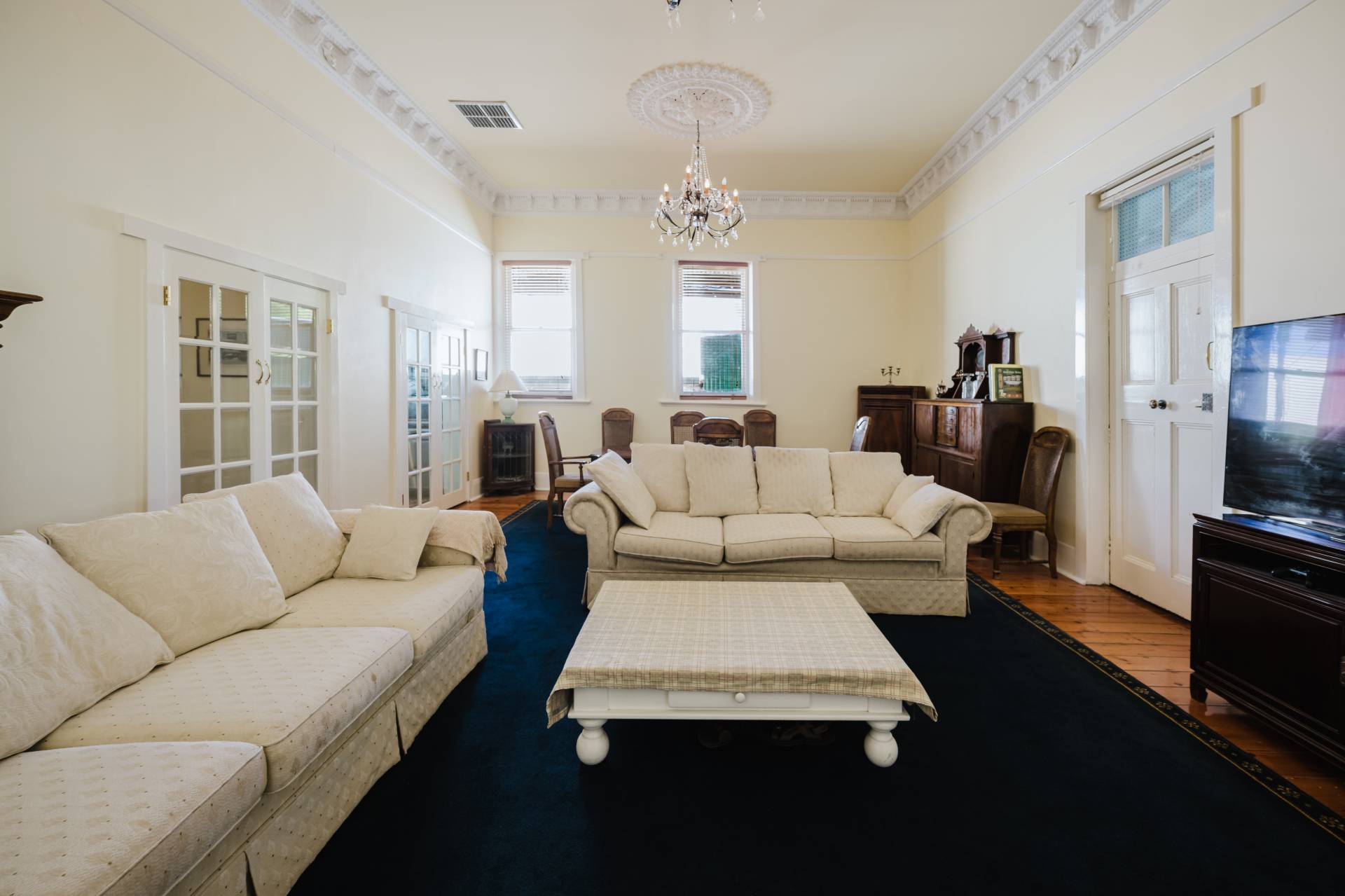Set on a substantial 714 sqm* allotment, this distinguished property offers eight generously proportioned bedrooms, two bathrooms and three toilets, making it as functional as it is impressive. From the moment you enter, the home evokes a sense of nostalgia and prestige, with lofty ceilings, classic picture rails, and exquisite rose ceiling chandeliers that reflect the prosperity of Burra’s copper-mining golden age. The interiors showcase timeless materials rarely replicated today such as Baltic pine flooring underfoot, elegant open fireplaces, beautiful jarrah built-in robes and brass fittings and period detailing throughout. The modern kitchen has been thoughtfully integrated, offering contemporary convenience while respecting the home’s historic character. A dedicated laundry adds further practicality for large families or guest accommodation.
