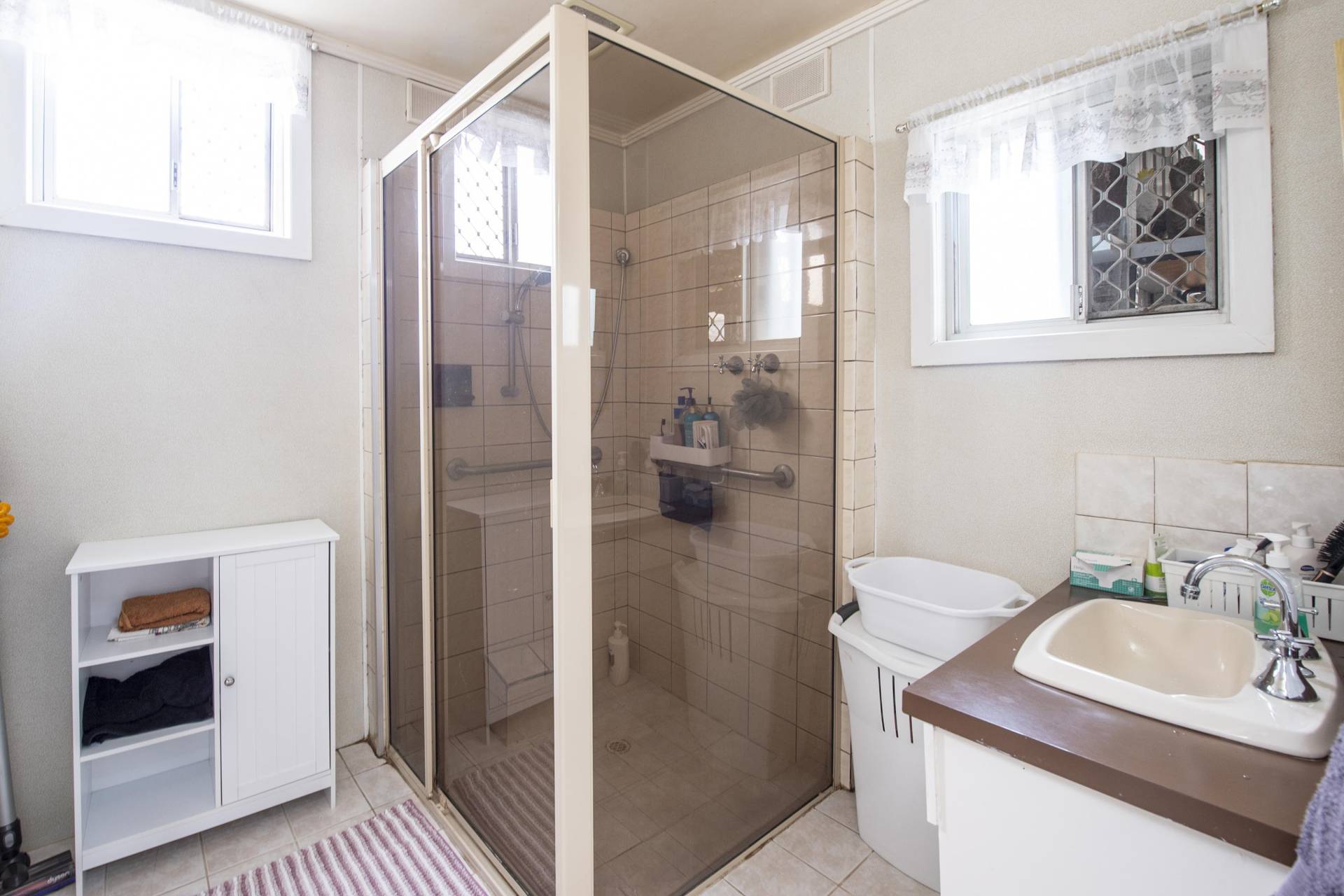 • Tiled bathroom with separate toilet via the walk-through laundry