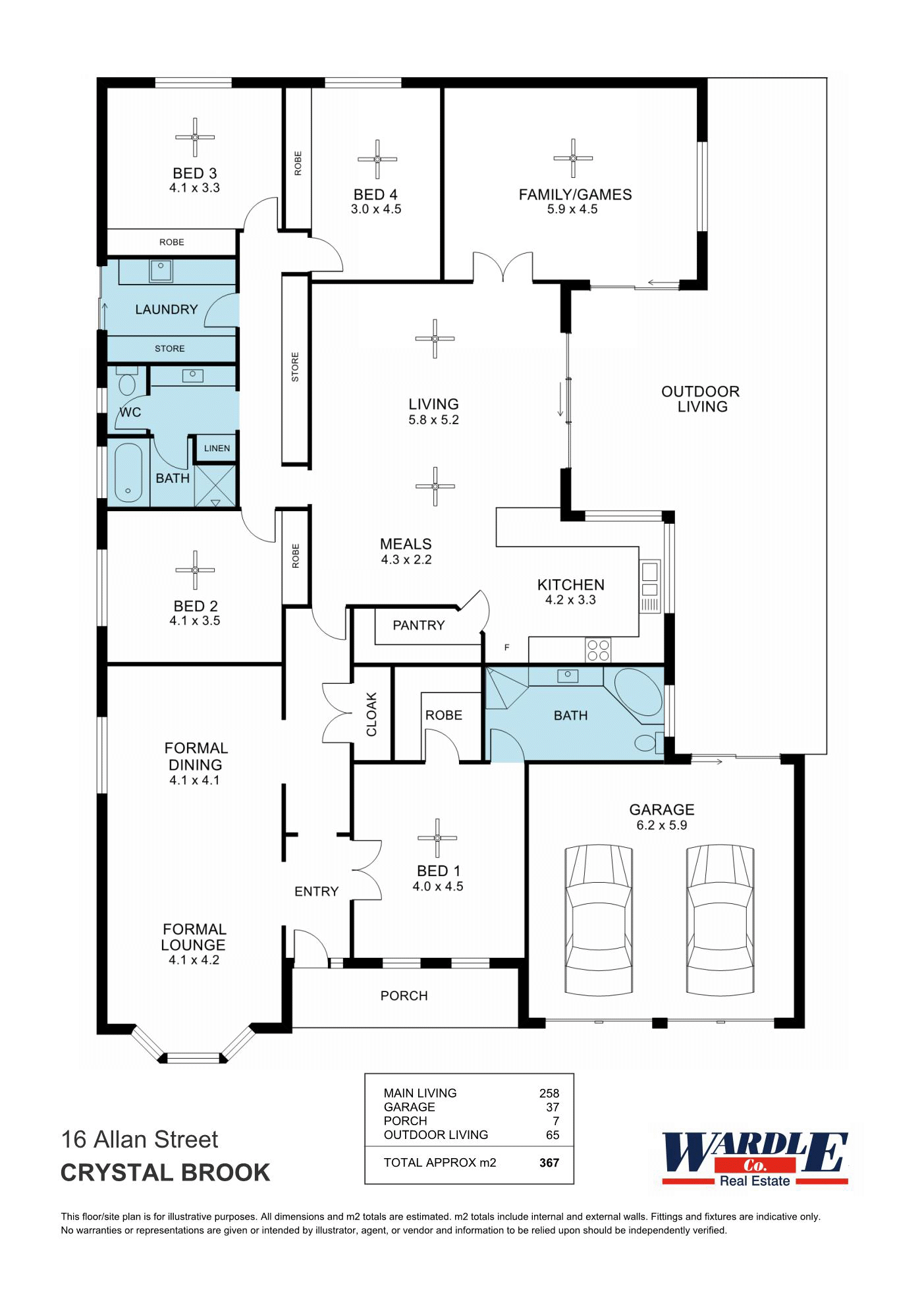 • Well-planned storage throughout, including built-in hallway cupboards, a bathroom linen cupboard, extensive laundry storage, and wardrobes in all bedrooms