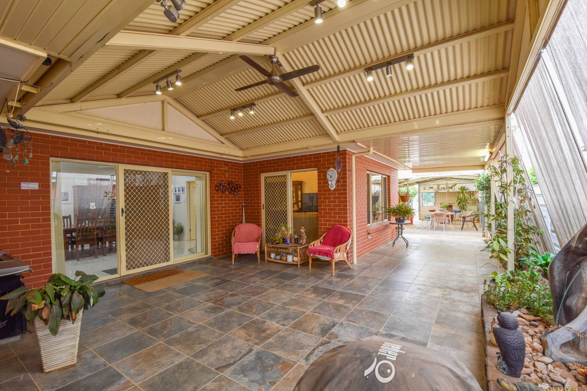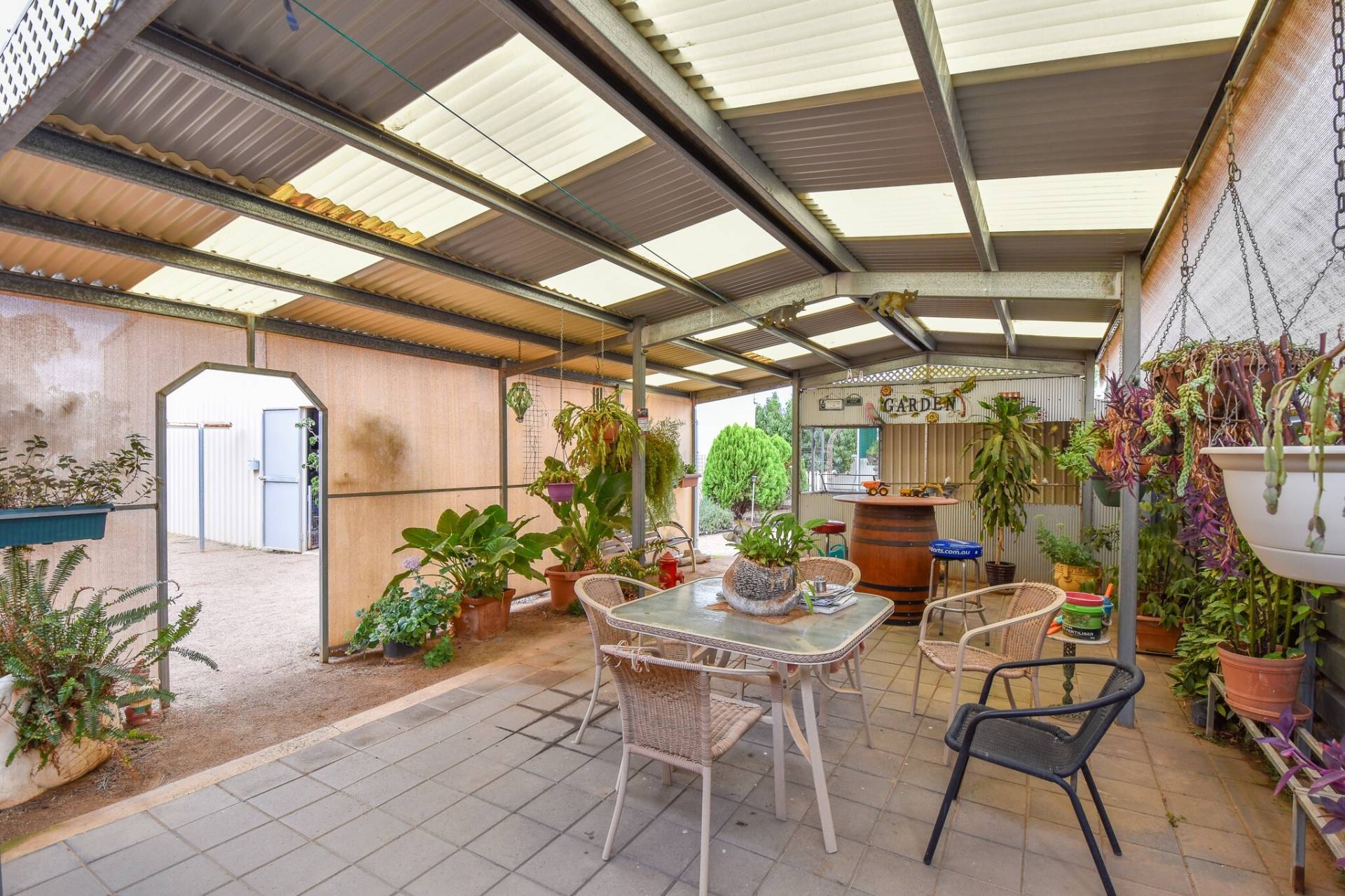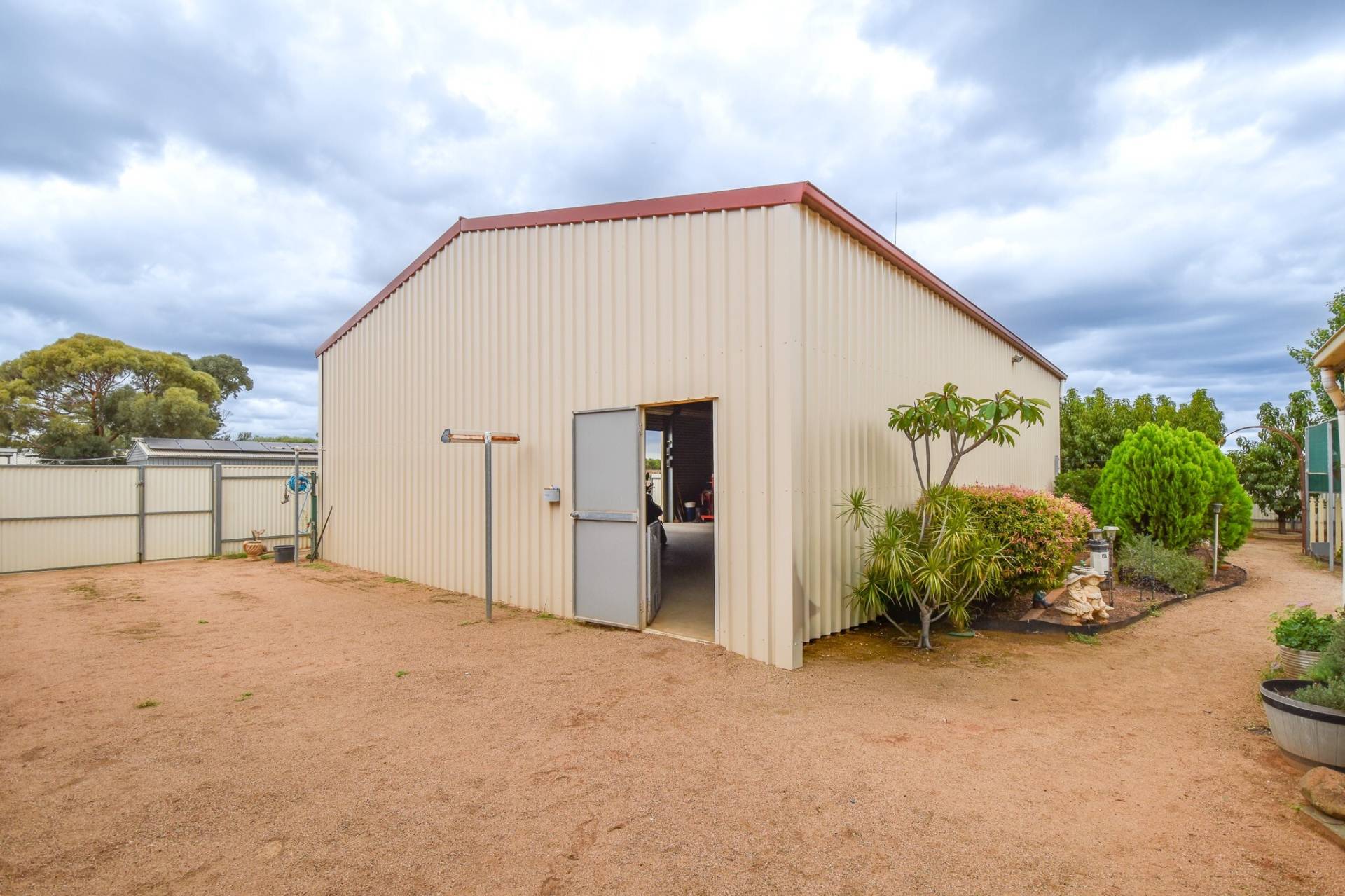 Outside, a large tiled entertaining area provides a versatile space for year-round use. The 12.1m x 9m* shed, complete with concrete flooring, roller door access, and power, is ideal for storage, trades, or hobbies. The yard also includes established fruit trees including peach, apricot and nectarine, a garden shed, shade house, and secure fencing.