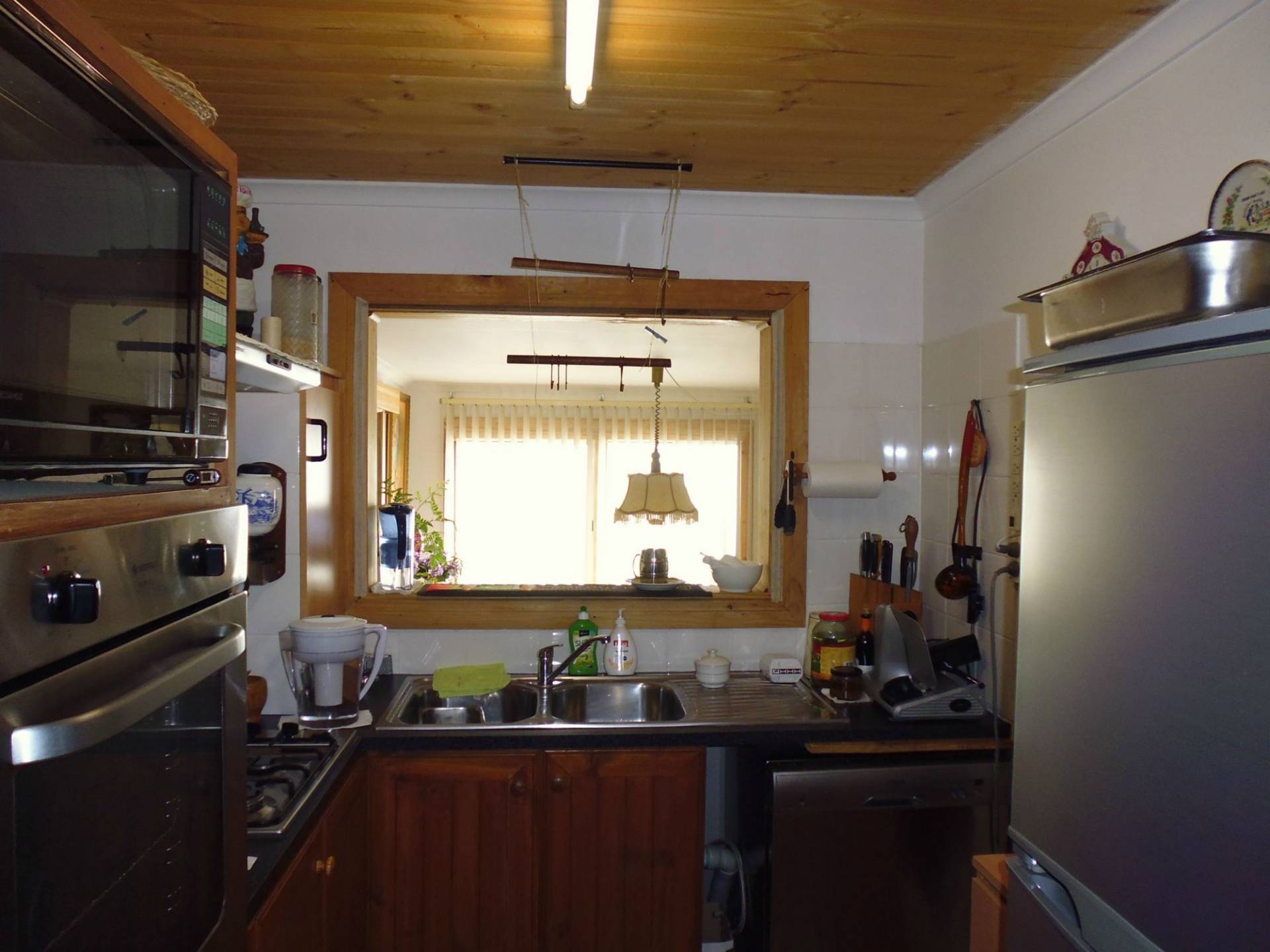 Three bedrooms, main with floating floor, lounge area and bar retreat, galley kitchen with elec oven, gas cooking, dishwasher and servery to the dine area, renovated bathroom with second toilet.