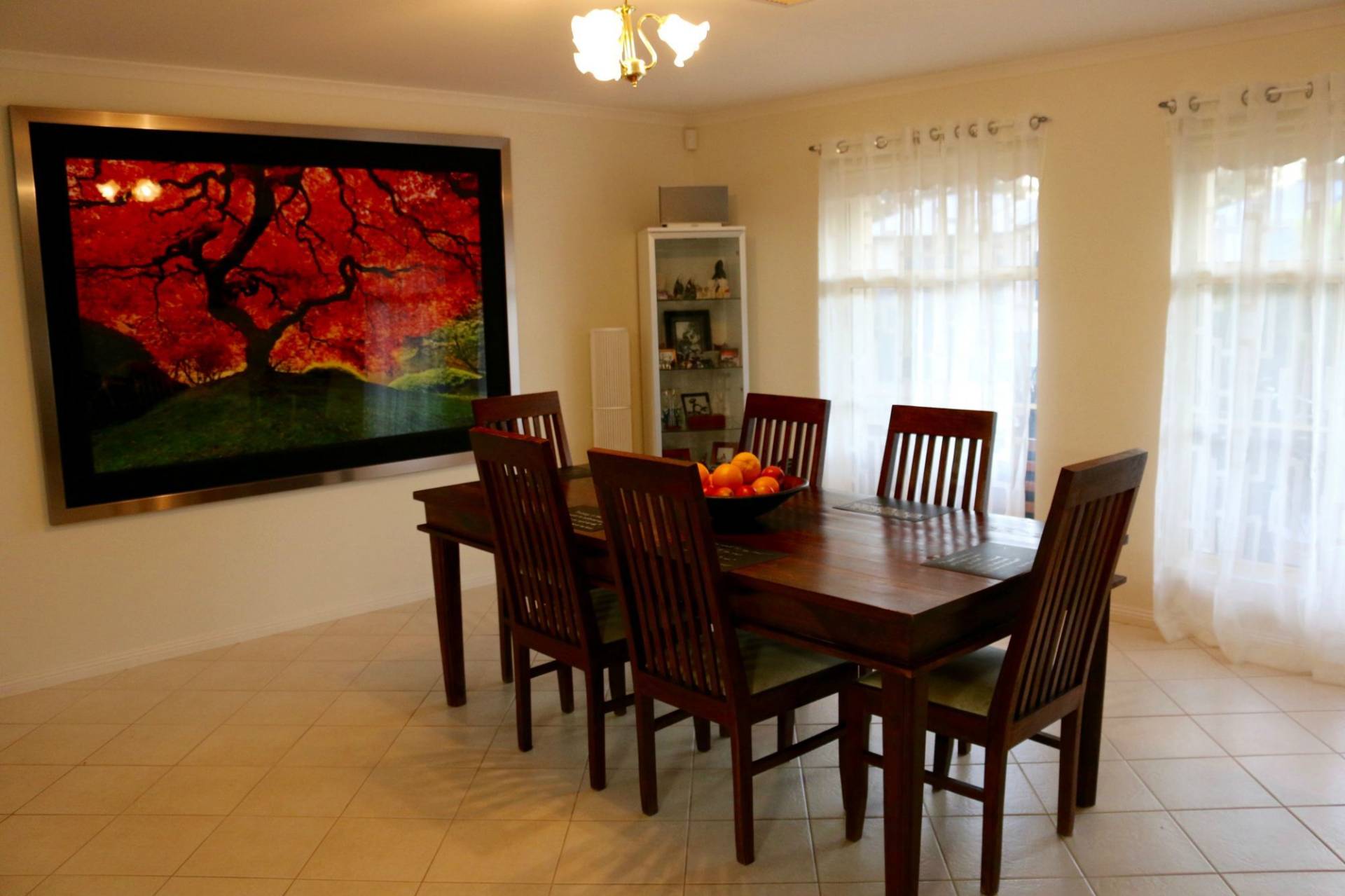 The home of generous proportions offers 5 bedrooms with the main having ensuite and WIR and built-in robes to 2 other bedrooms. There’s a separate study nook with adjacent storage room, spacious open plan living including kitchen with new appliances and tiled flooring throughout for east of maintenance. Modern 3-way bathroom, servicing the kids bedrooms, laundry with built-in cupboard and large family room with French doors allowing access to the outdoors. The home is kept comfortable all year round by ducted reverse cycle air-conditioning throughout.