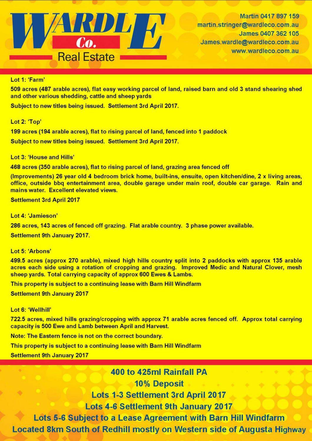 Lots 1-3 Settlement 3rd April 2017