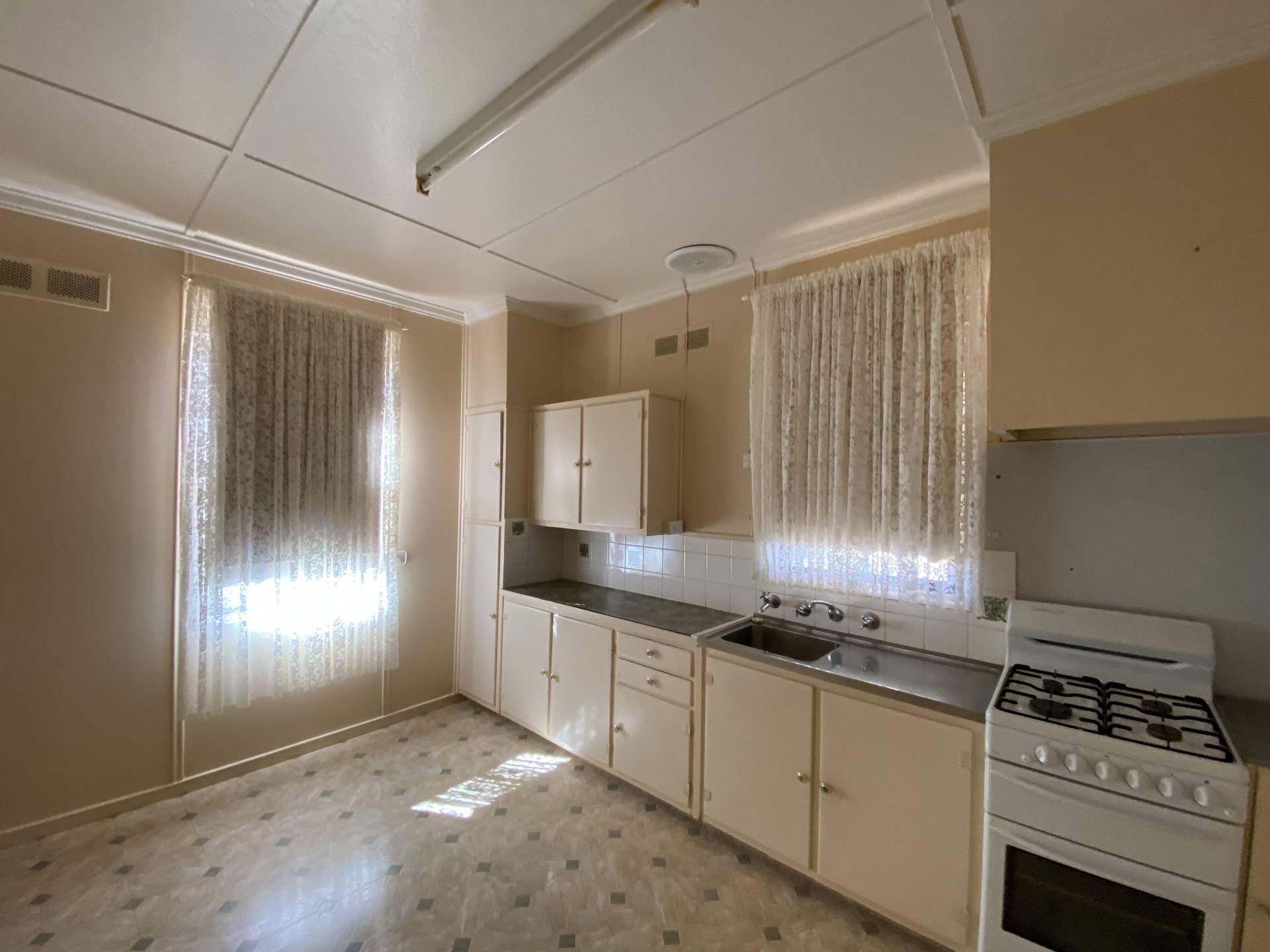 - Kitchen vinyl floor, freestanding gas oven and cooktop