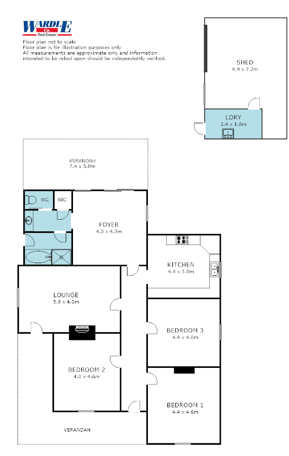 - Shed approx. 5 x 7m with Laundry inside stainless steel wash trough and tiled floor
