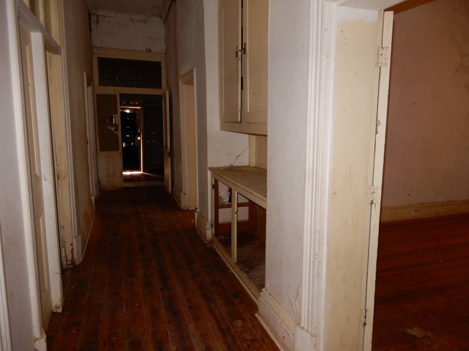 The main entrance leads to the business section of the building with an office and original built-in volt.